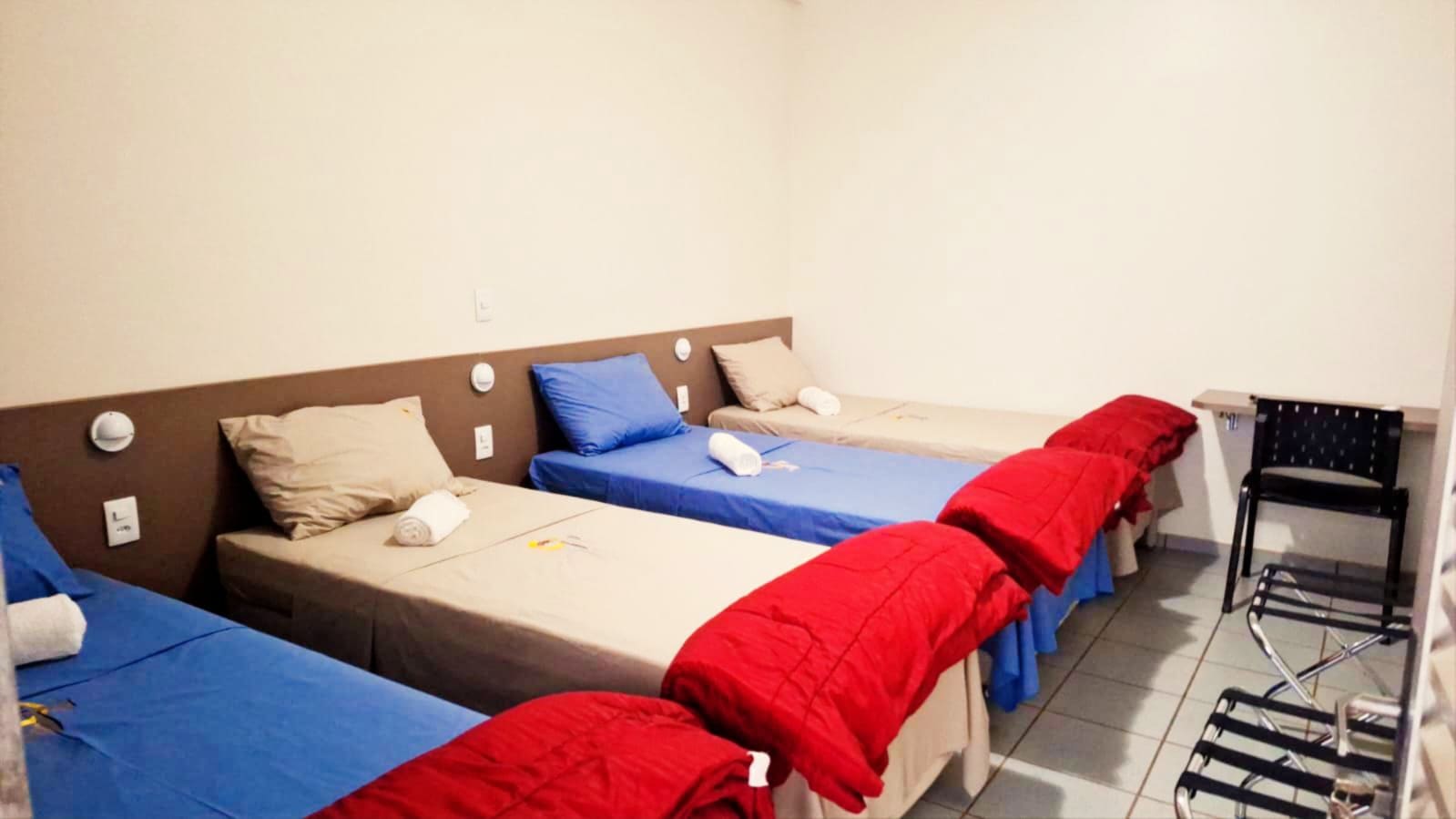 Para a hospedagem dispomos de apartamentos com capacidade para até 82 pessoas. Todos os quartos possuem banheiros internos, quatro leitos no padrão box, maleiro, escrivaninha e cadeiras. Prestamos serviço de roupa de cama e banho, incluso na locação do espaço. Tudo para o seu conforto e comodidade.