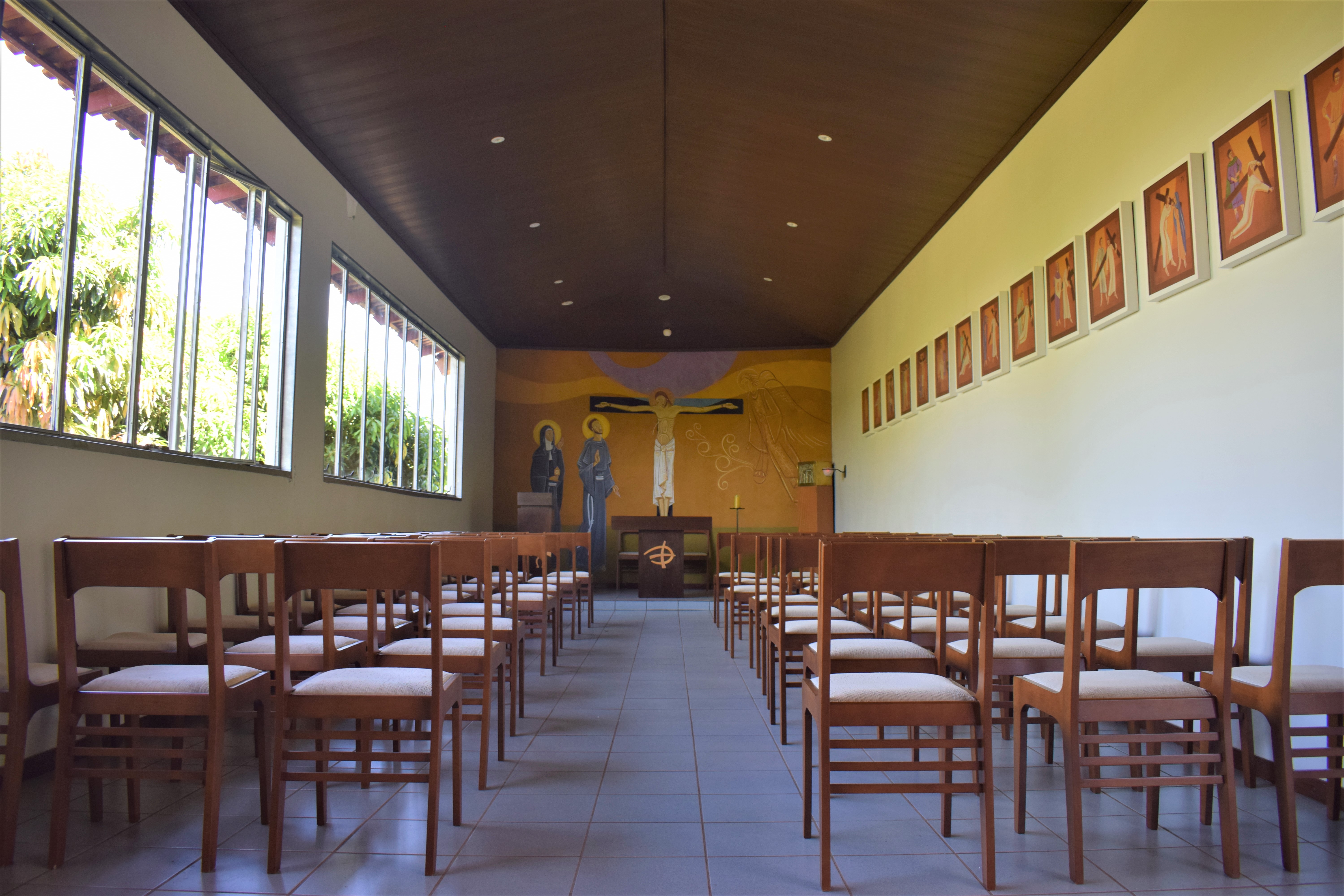 Dispomos para os grupos da Igreja Católica de uma capela dedicada a São Boaventura com 50 lugares. Os vasos litúrgicos e livros para a celebração da Santa Missa devem ser providenciados por cada grupo.