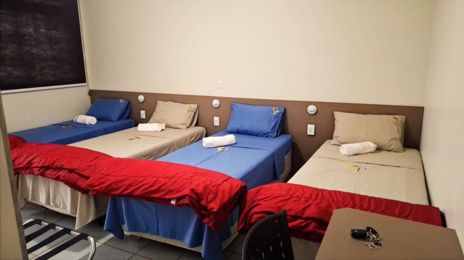 Para a hospedagem dispomos de apartamentos com capacidade para até 82 pessoas. Todos os quartos possuem banheiros internos, quatro leitos no padrão box, maleiro, escrivaninha e cadeiras. Prestamos serviço de roupa de cama e banho, incluso na locação do espaço. Tudo para o seu conforto e comodidade.