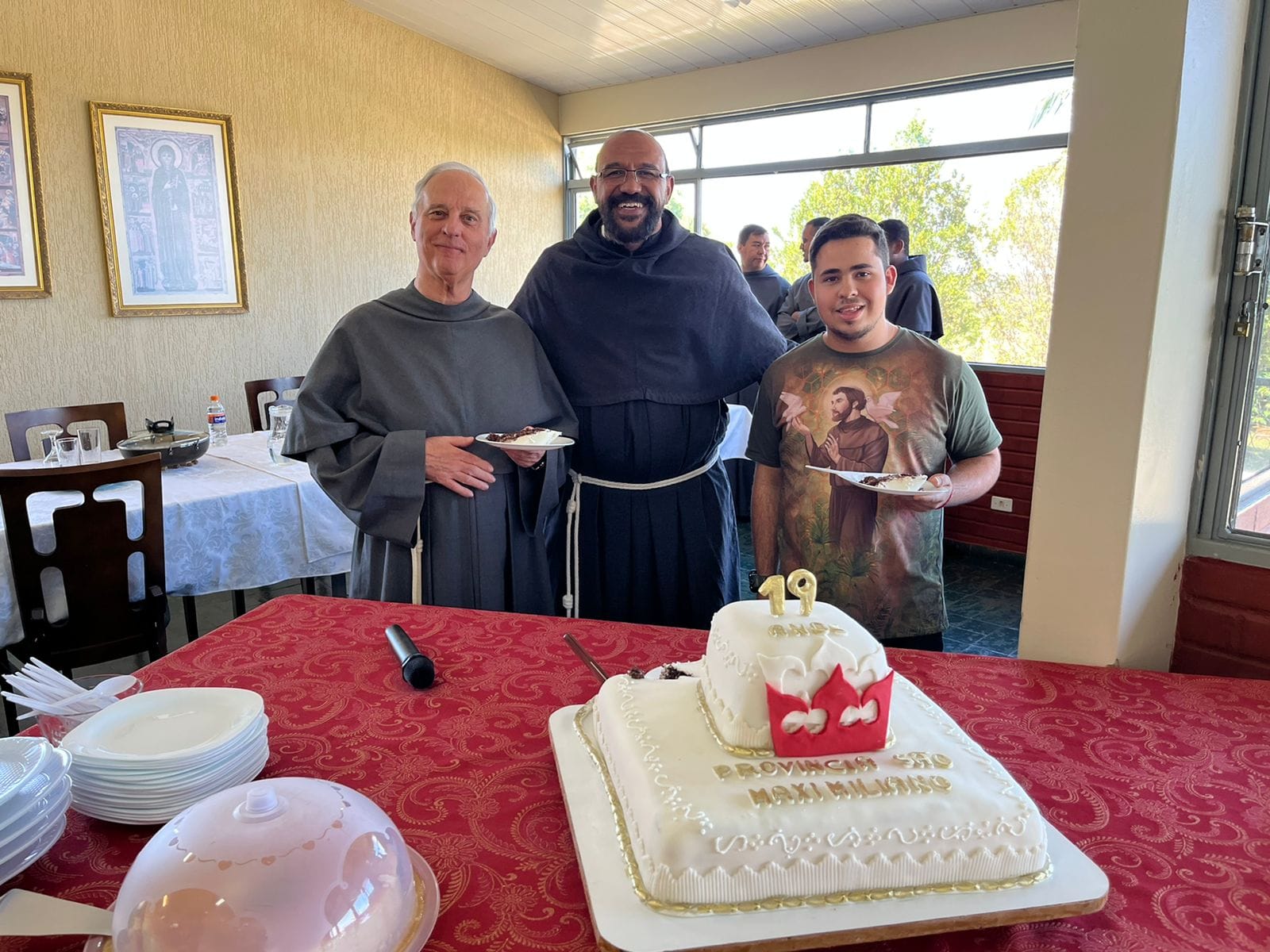 Feliz Aniversário! Desejo a cada confrade que por seu testemunho, por sua consagração religiosa e consagração a Imaculada, pelo seu ministério sacerdotal, sua vivência religiosa no carisma franciscano, seu trabalho conventual e dedicação a vida comunitária, seu testemunho de fé, sua vida apostólica, sua missão realizada, constroe diariamente a história da nossa Província. Que o Senhor continue a vos abençoar e santificar a fim de que venhamos a ser uma Província grande e santa, conforme o desígnio da Imaculada! Feliz aniversário, Província São Maximiliano Maria Kolbe!