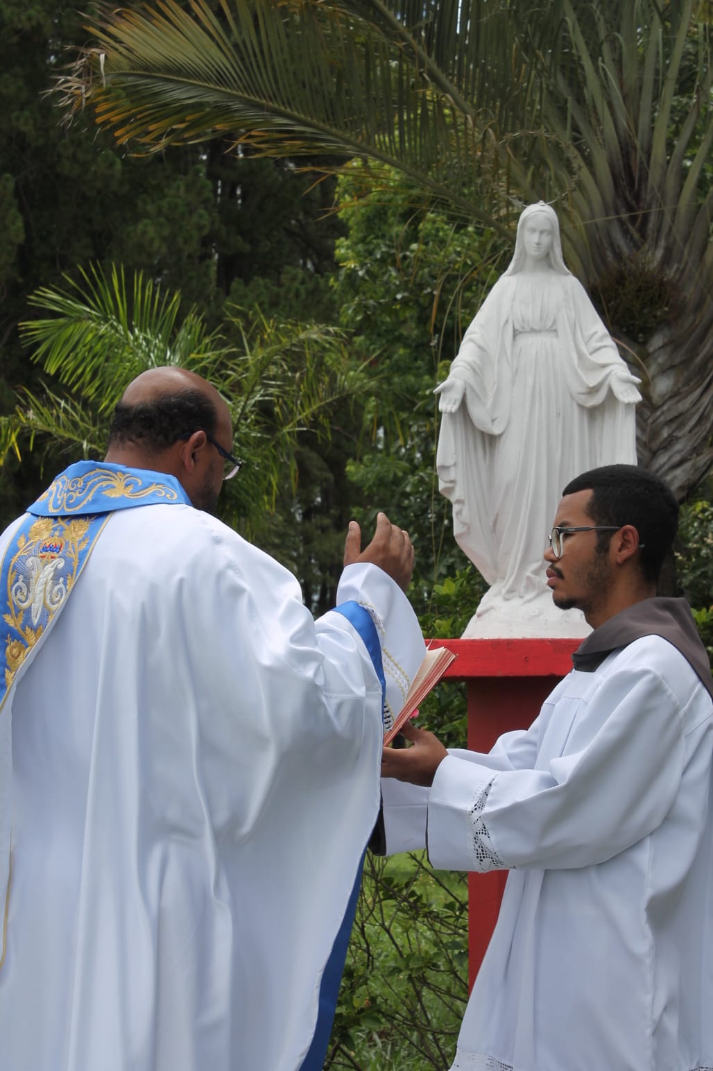 Ontem, 08 de dezembro, a Província celebrou os 45 anos da benção da imagem no Jardim da Imaculada. Fazendo memória ao passado em frente a imagem na entrada do Jardim da Imaculada, os frades se reuniram, após ouvir algumas palavras do Fr. Miescislaw sobre os anseios do passado na colocação daquela imagem há 45 anos, seu significado e esperança. O Ministro Provincial, Frei Gilberto de Jesus (OFM.Conv), abençoou e incensou a imagem fazendo memória ao passado de nossa jurisdição.