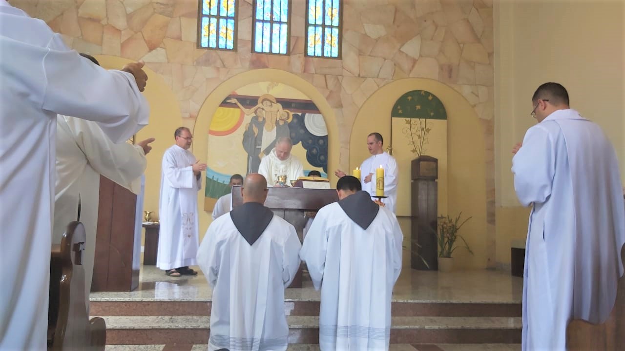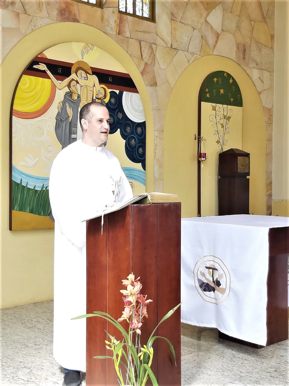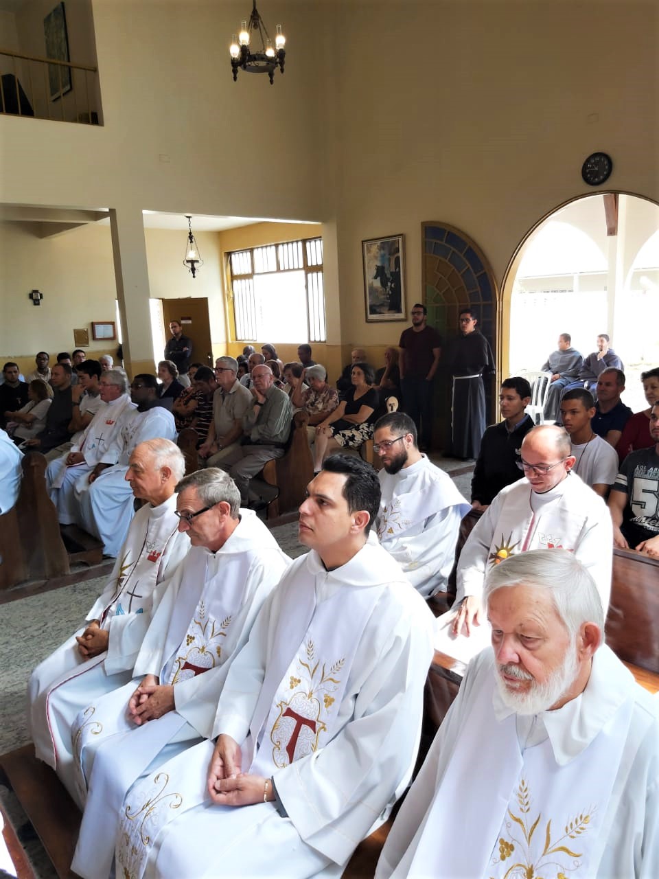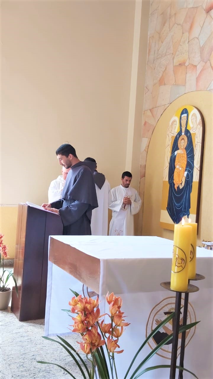 A Santa Missa de ação de graças foi celebrada na Capela da Casa de Formação de Pós-Noviciado “São Francisco de Assis”, em Brasília. O aniversariante presidiu a Eucaristia que foi concelebrada pelo Ministro Provincial, Frei Marcelo Veronez (OFMConv.), pelo Frei Rafael Normando (OFMConv.), e o diácono Frei Marcus Orlando (OFMConv.).