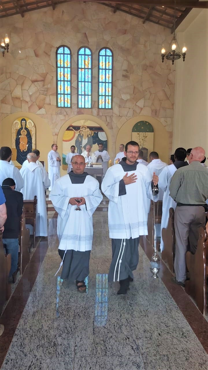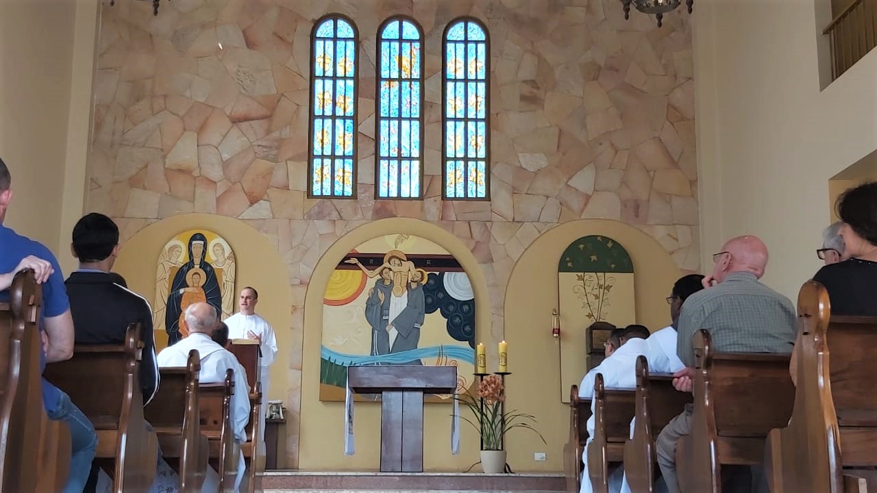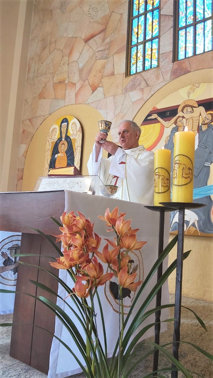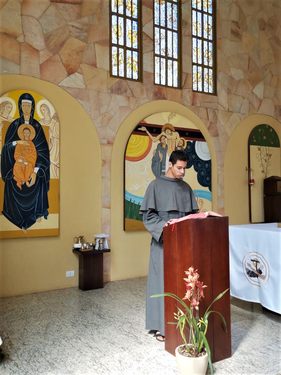 A Santa Missa de ação de graças foi celebrada na Capela da Casa de Formação de Pós-Noviciado “São Francisco de Assis”, em Brasília. O aniversariante presidiu a Eucaristia que foi concelebrada pelo Ministro Provincial, Frei Marcelo Veronez (OFMConv.), pelo Frei Rafael Normando (OFMConv.), e o diácono Frei Marcus Orlando (OFMConv.).