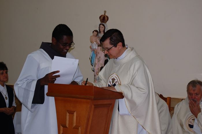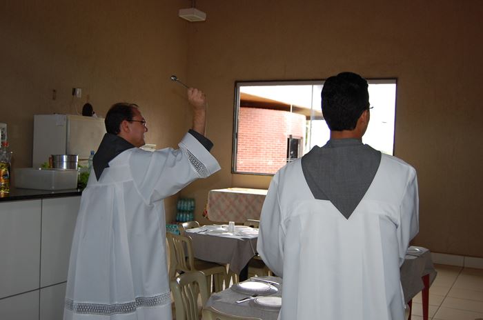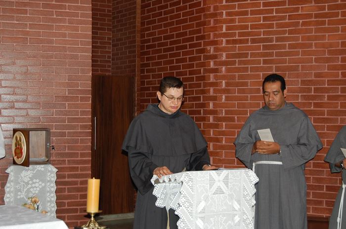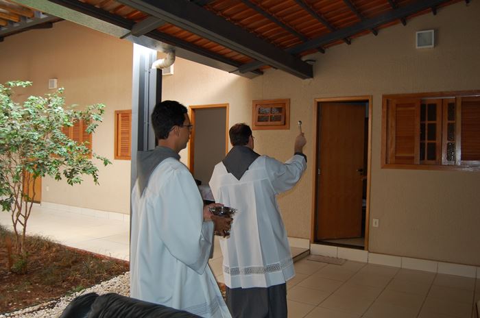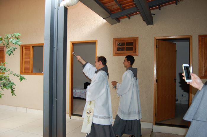 O dia começou com a chegada dos frades e a bênção da nova casa filial dada pelo ministro provincial, Frei Marcelo Veronez, que disse aos que estavam presentes: "Esta casa foi preparada para ser uma casa de convivência sacerdotal, chamada Mater Misericordiae. Porém, o projeto não foi concluído. E, nesse dia, ela se institui, com autorização do bispo diocesano, uma casa filial franciscana, de tal forma que, futuramente, poderá ser constituído convento dos Sagrados Estigmas de São Francisco. Que possamos pedir a bênção de Deus por esse lugar, por essa nossa presença, por esse caminho de evangelização, que se abre a serviço paroquial e tantos outros que o Senhor nos prover da Sua vontade".