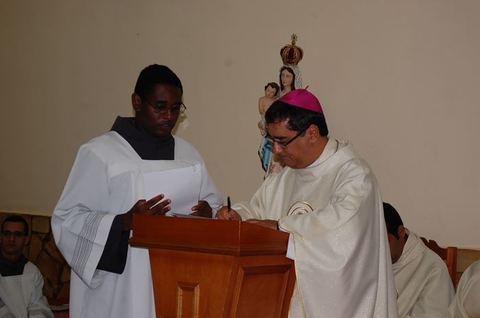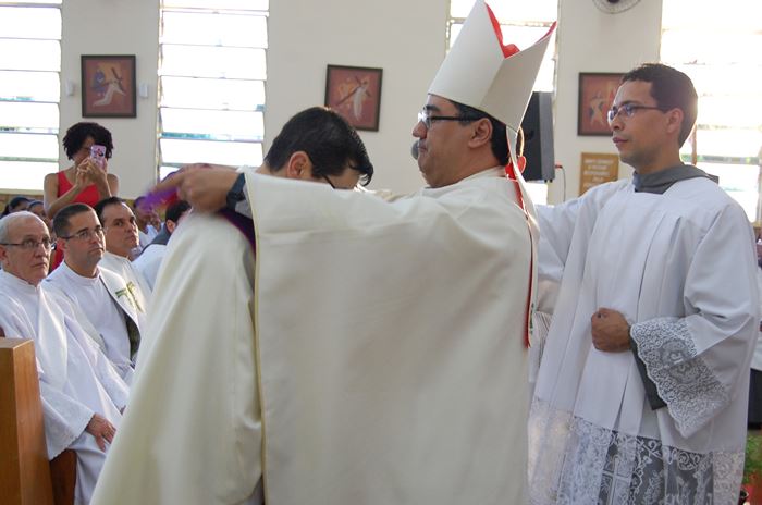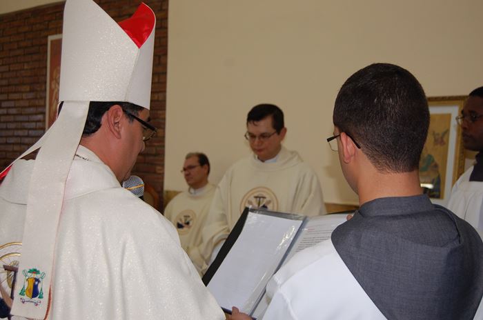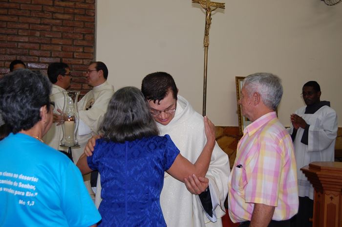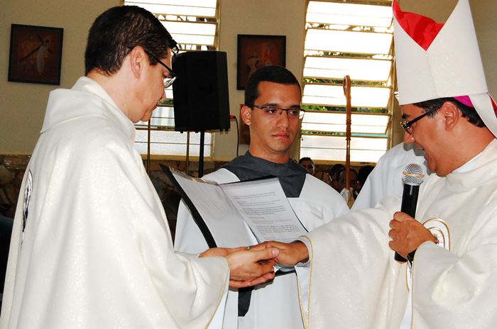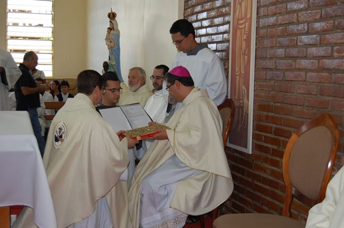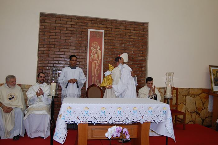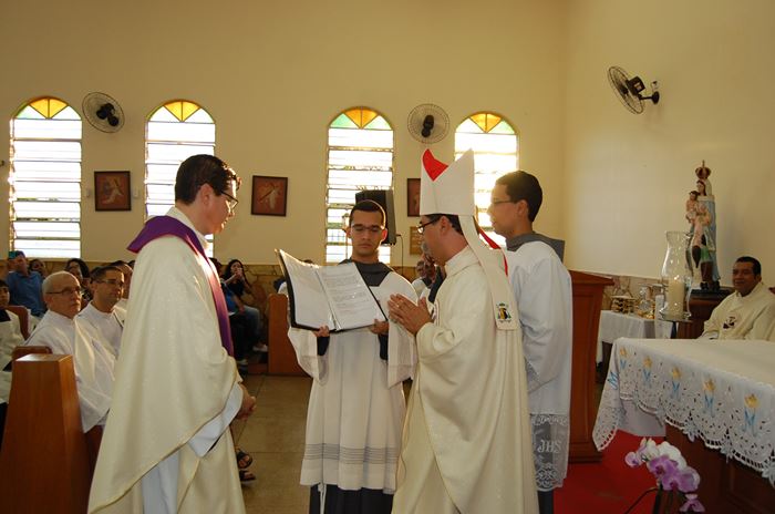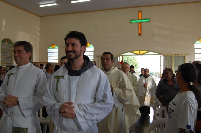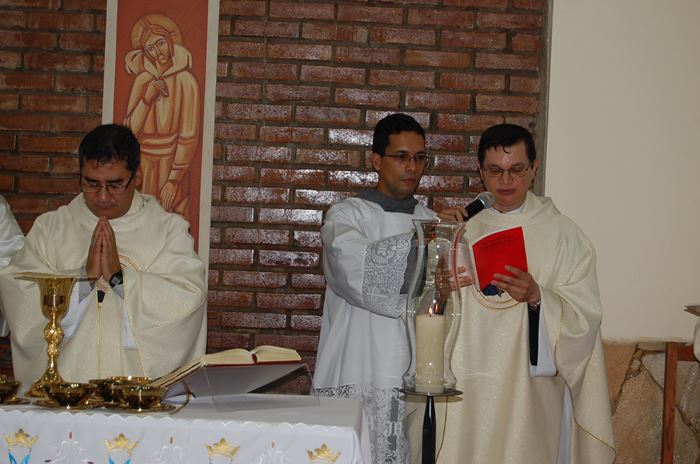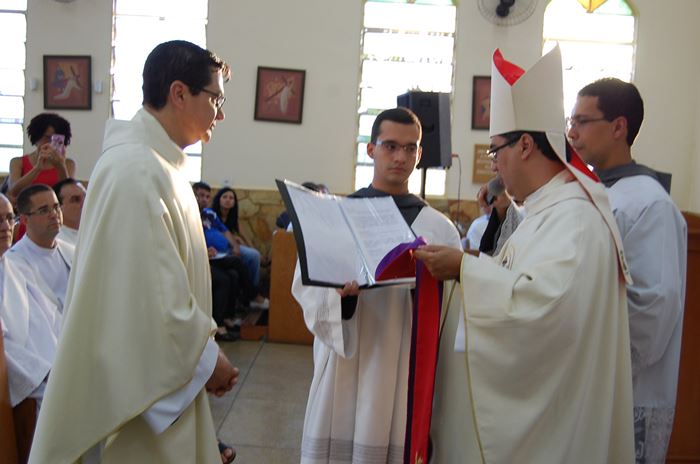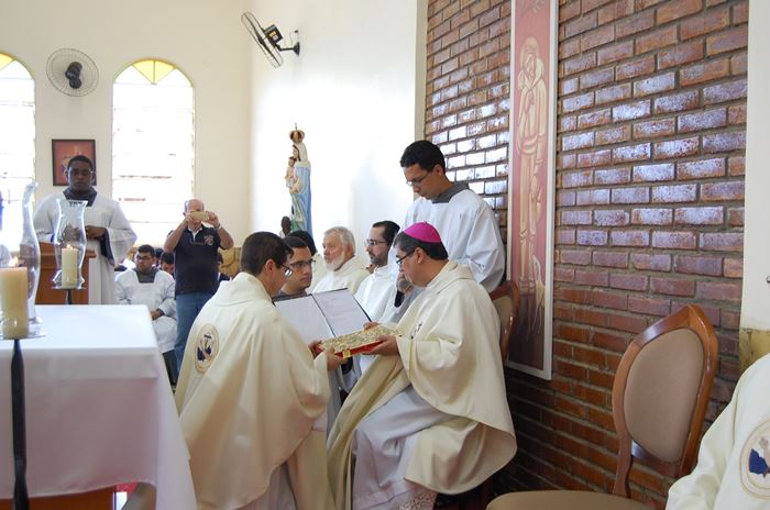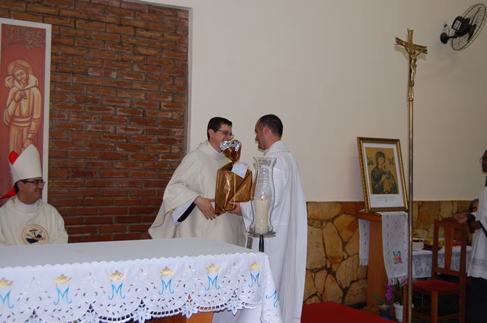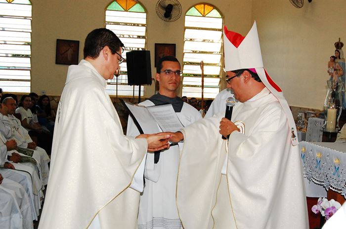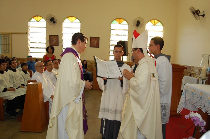 Durante a celebração, o Frei Roberto renovou as suas promessas sacerdotais e o bispo lhe entregou as chaves da igreja, o sacrário, o batistério e o confessionário.