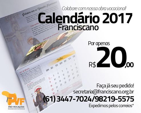 Adquira já seu calendário franciscano 2017 e colabore com a obra das vocações franciscanas neste ano novo.