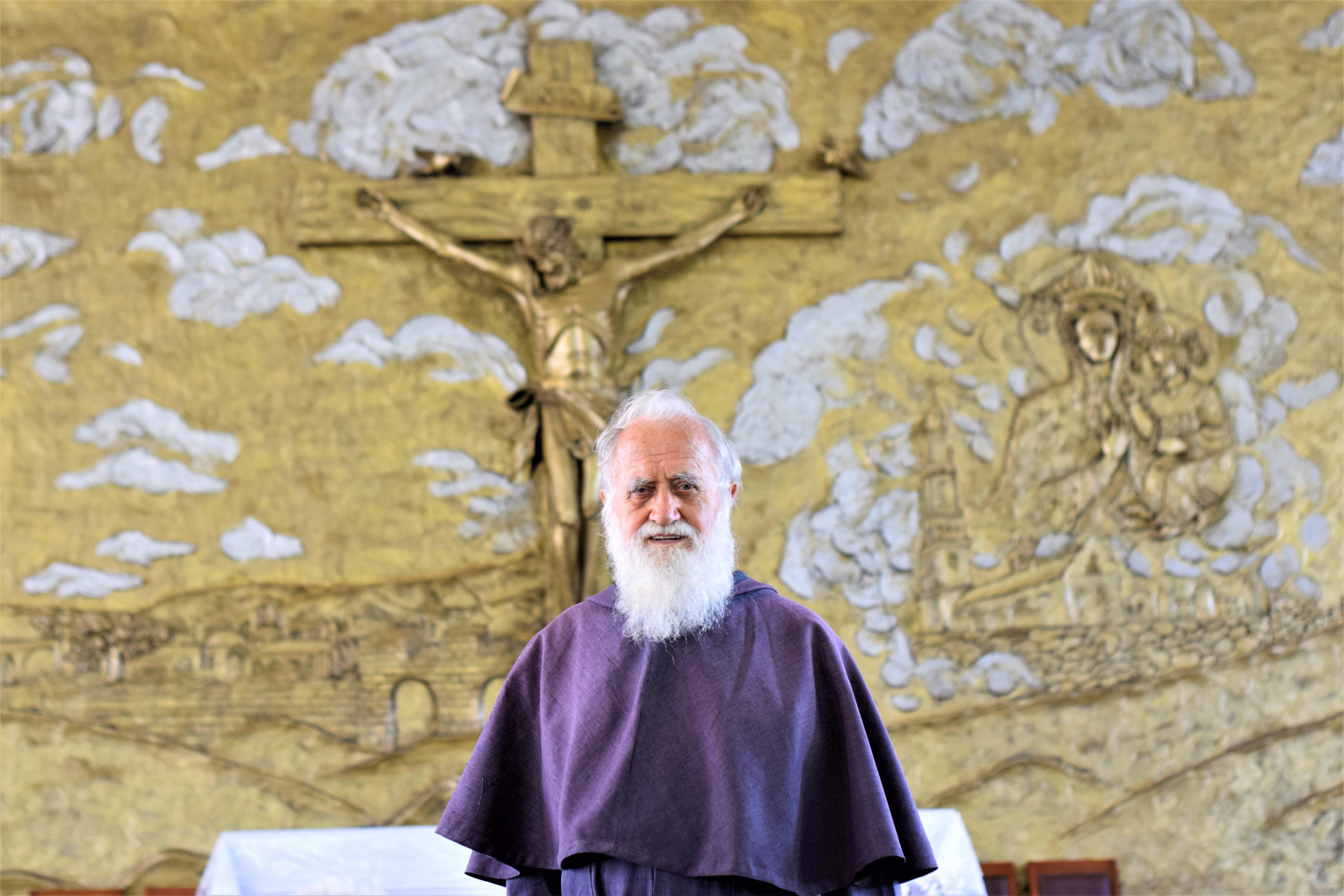 Após falar sobre as estações da Via Sacra, explicar como funciona o Confessionário e contar cada uma das referências cravadas no painel do presbitério, o Frei Eusébio nos leva à sala do Santíssimo. Lá, uma senhora que rezava interrompe a sua oração quando vê o frade. Com a mesma atenção dedicada as outras pessoas, ele conversa com ela. Seu olhar demonstra compaixão, seu sorriso o mais puro Amor de Cristo e os ouvidos convidam a quem necessitar. Desta mesma maneira ele tem sido por 65 anos de serviços à Igreja, à Província e, principalmente, ao Povo de Deus.