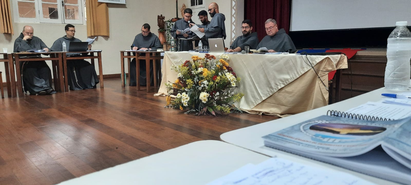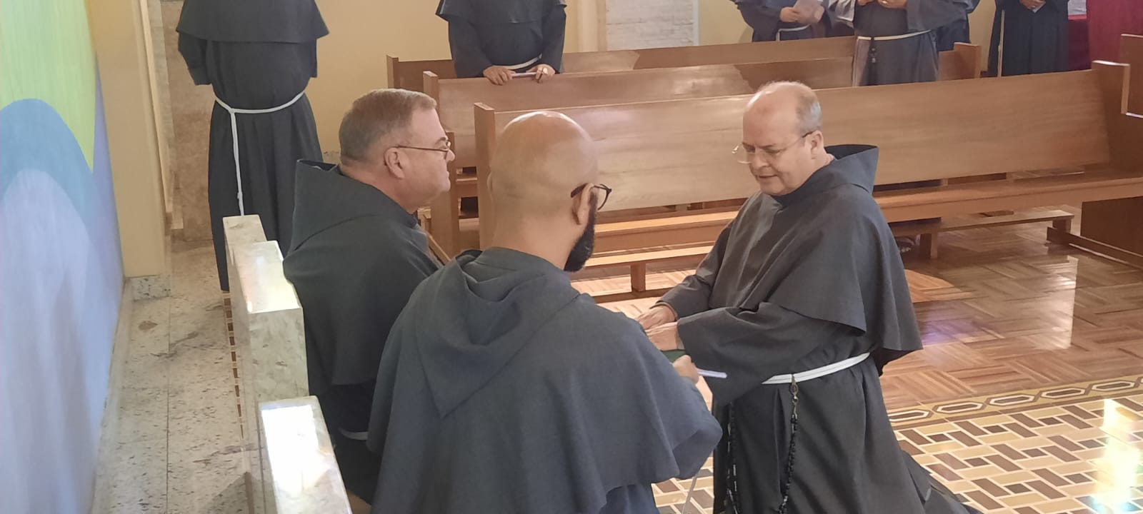 Entre os dias 12 e 16 de setembro, aconteceu o Capítulo da Custódia Imaculada Conceição, dos Frades Franciscanos Conventuais do Rio de Janeiro. O Capítulo ocorreu na Cidade de Santos Dumont, próxima a Juíz de Fora (MG), no Seminário Seráfico dos Frades Menores (OFM). Estavam presentes o Assistente Geral da América Latina, Fr. Rogério Xavier (OFM.Conv.), os Ministro Provinciais Fr. Michael Heine (OFM.Conv.), dos Estados Unidos; Fr.Gilberto de Jesus (OFM.Conv.), da Província São Maximiliano Kolbe de Brasília e o Fr. Jose Hugo (OFMConv.), da Província São Francisco de Assis de São Paulo. A Custódia Imaculada Conceição do Rio de Janeiro tem sua presença como a mais antiga do Brasil, iniciada em 1946, somando 76 anos de presença jurisdicional. No dia 15 de setembro, quinta-feira, elegeu o novo Custódio, o Fr. Carlos Charles. Rezemos a Deus para que o novo Ministro Custodial possa levar à frente essa importante missão dada por Deus na eleição dos irmãos!