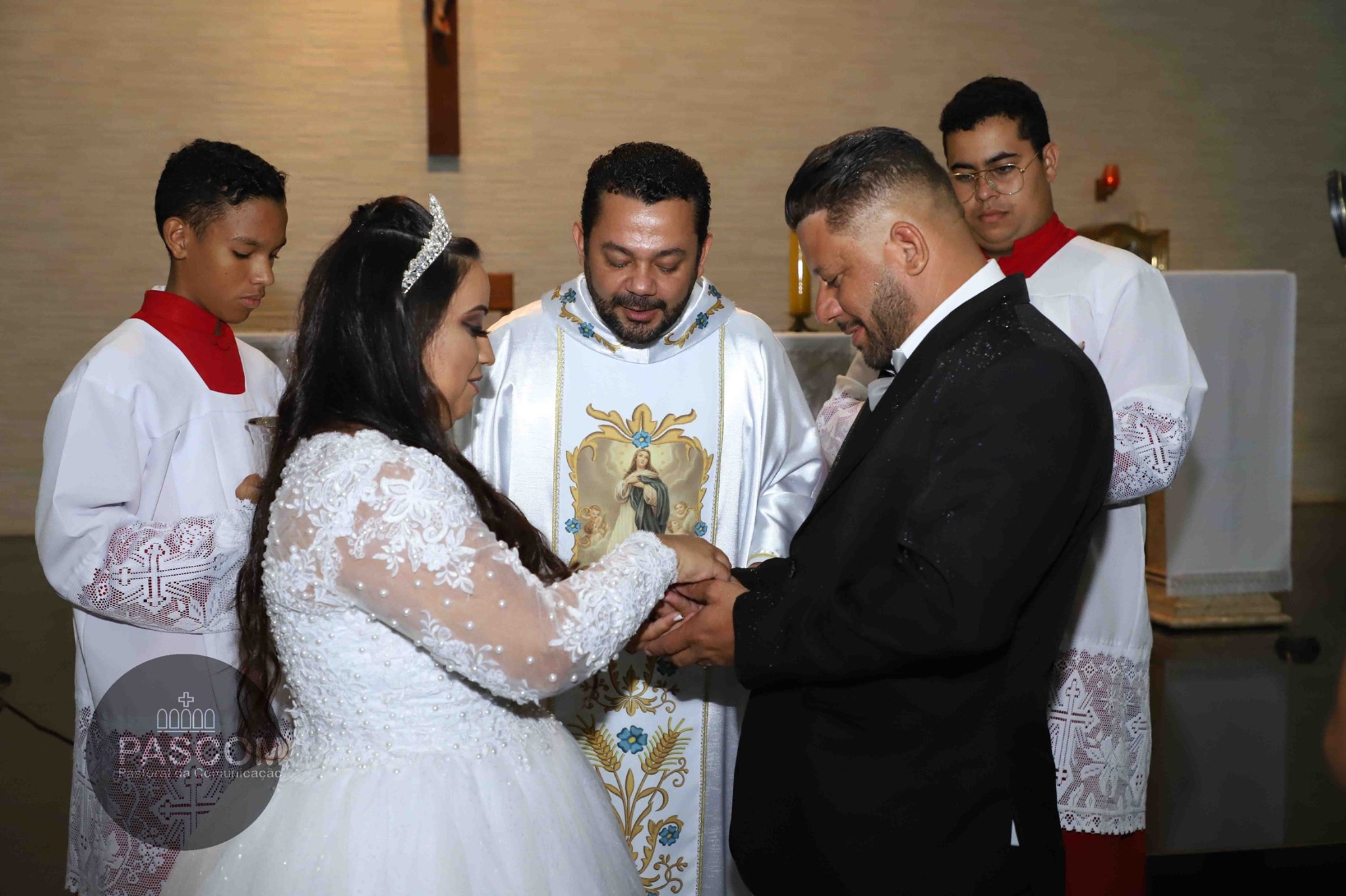 A cerimônia foi celebrada pelo Frei Regildo Piedade (OFMConv.) que, junto da pastoral responsável, organizou os preparativos para tornar aquela uma noite especial para todos e todas que ali partilhavam da mesma felicidade. Foram momentos de muita alegria e emoção. Os olhares apaixonados e esperançosos daqueles e daquelas que escolheram aceitar o pedido de Deus e formar a base de nossa sociedade: a família.