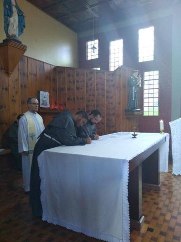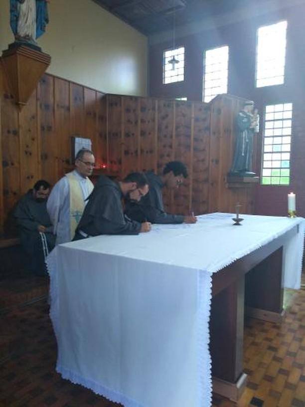 A cerimônia começou com a leitura da Legenda Maior de São Boaventura. Dentre os noviços da Capital Federal, estão os freis André Moreira Lima, André Salomão Mendes Alves, Diogo Kennedy Araújo e Gederson Aparecido Marques Nunes. O Estado do Maranhão ficou representado pelo frei Herivaldo Pereira. Do Rio de Janeiro foram os freis Arthur Nunes Almeida e Fernando Pereira de Andrade Júnior. De terras venezuelanas, o frei Jason Dazav representa a Custódia Nossa Senhora do Coromoto.