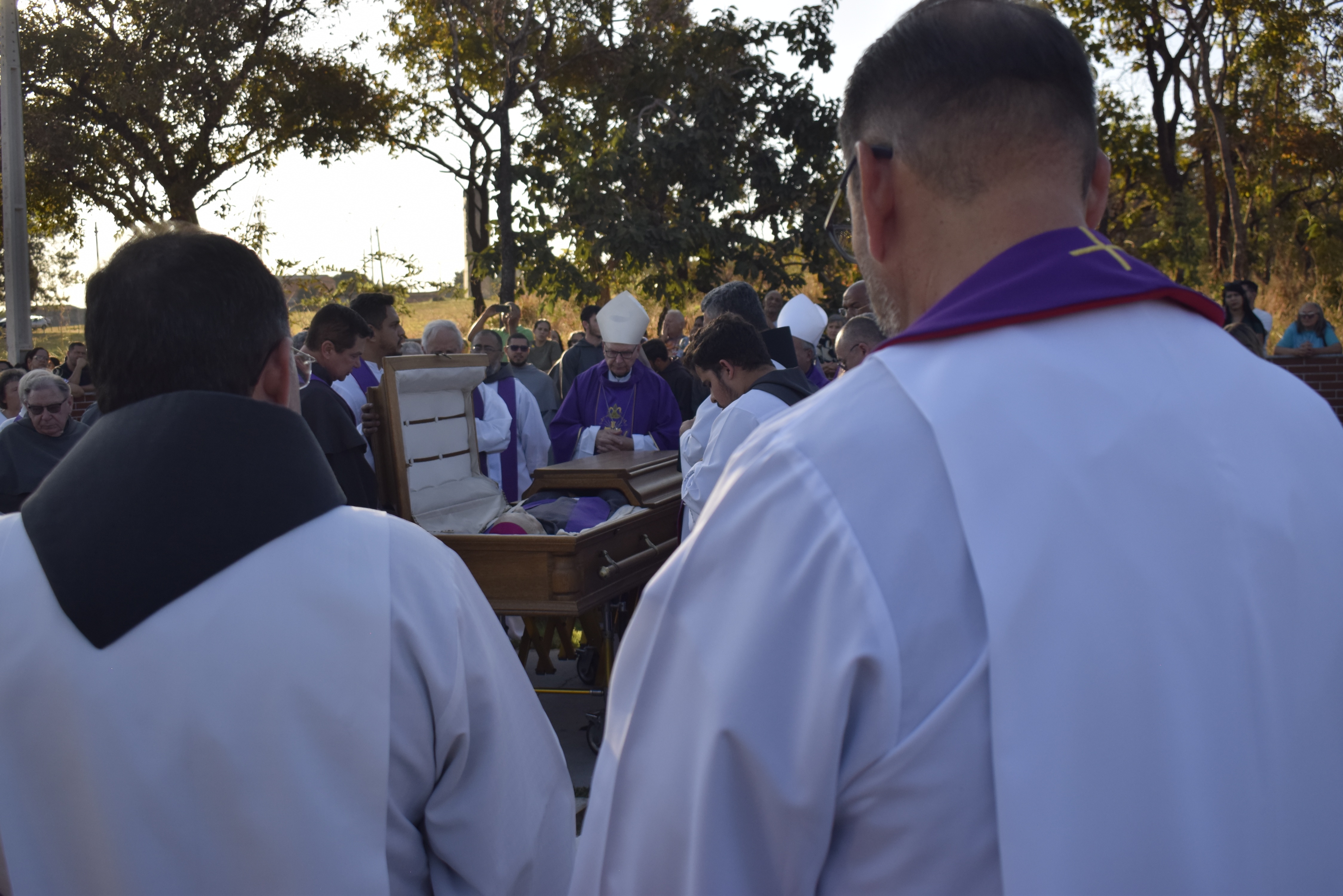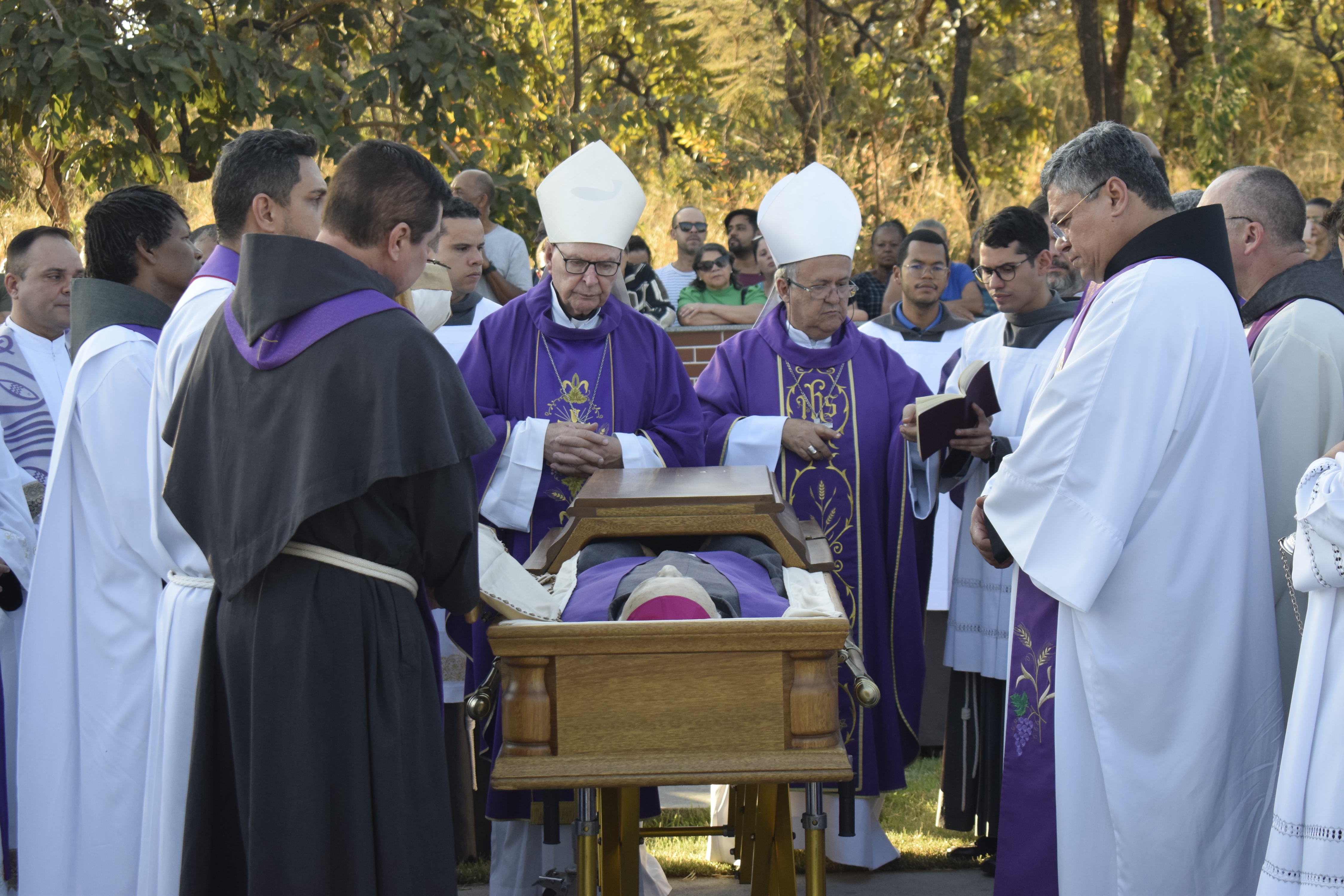 Durante a madrugada aconteceu o velório com muitos presentes na Capela do Santuário e durante o domingo aconteceu, às 15h, a Celebração de Exéquia e Sepultamento. Estiveram presentes no sepultamento os bispos: Dom Dimas Lara Barbosa, arcebispo da Arquidiocese de Campo Grande (MS); Dom Vitório Pavanello, bispo Emérito da Arquidiocese de Campo Grande (MS); Dom Waldemar Passini, bispo Ordinário da Diocese de Luziânia (GO); Frei Gilberto de Jesus (OFMConv.), Ministro Provincial da Provincial de São Maximiliano M. Kolbe, os frades sacerdotes e irmãos religiosos, padres diocesanos, irmãs religiosas de diversas congregações, OFS, MI, membros do Santuário Jardim da Imaculada e demais comunidade paroquiais.