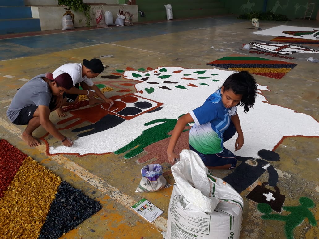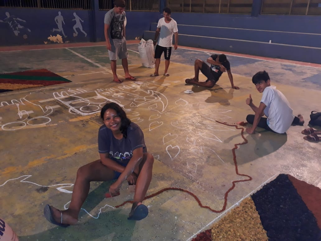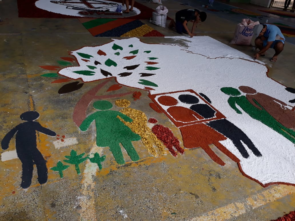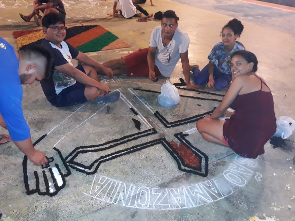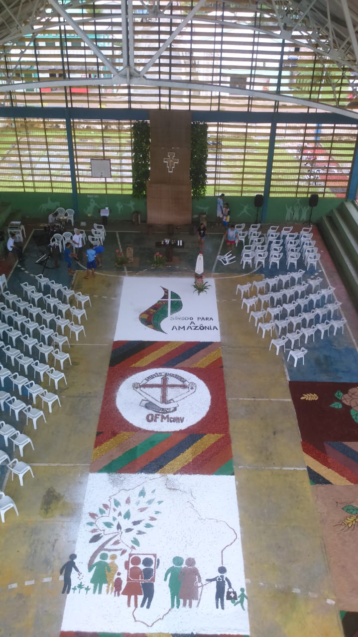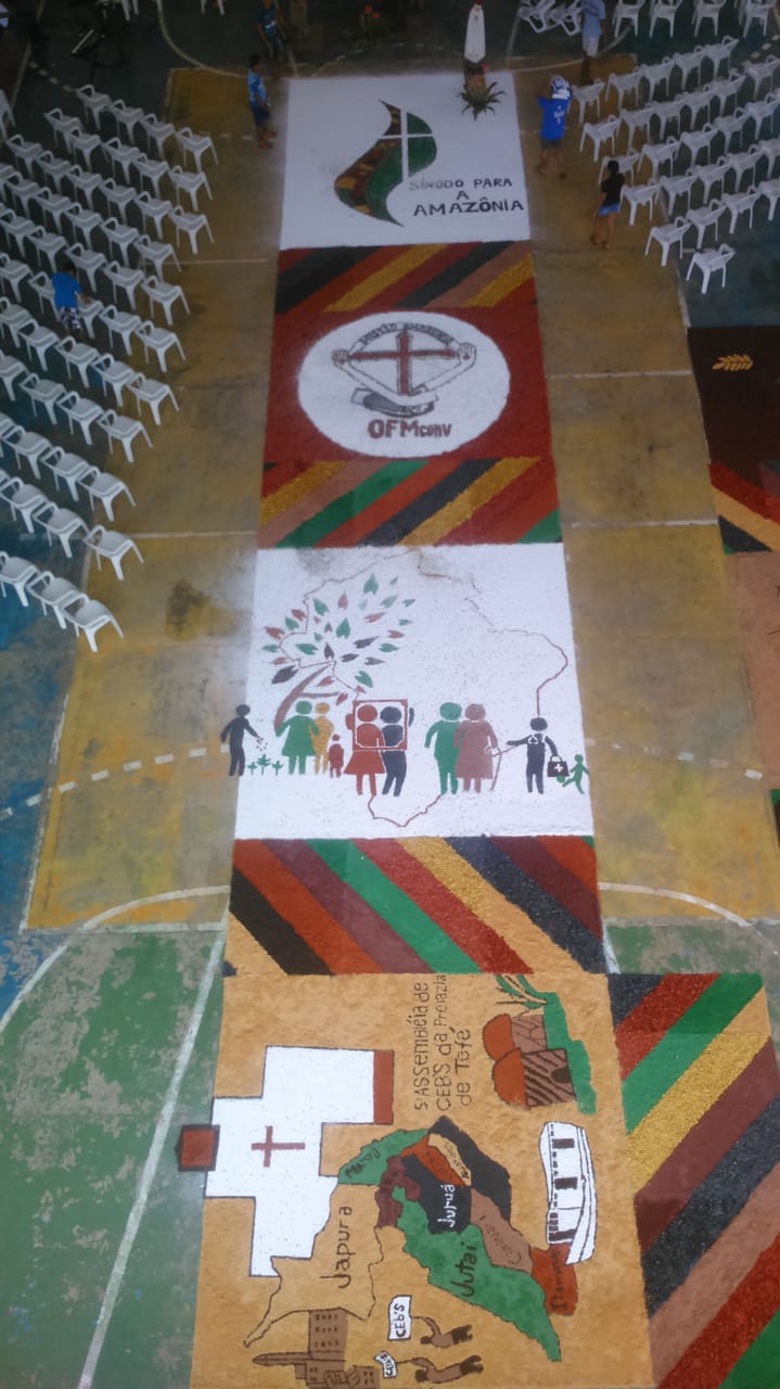 “O que foi bonito (e é o que eu sempre admiro em Juruá) é justamente a grande participação dos jovens e de todos os movimentos e pastorais de nossa comunidade”, comentou Frei Flávio sobre a celebração de ontem. Os tapetes foram confeccionados com as seguintes temáticas: Sínodo da Amazônia, da Assembleia de CEBs, os 30 anos da Pastoral da Criança na Prelazia de Tefé, a Campanha da Fraternidade e todos os motivos eucarísticos.