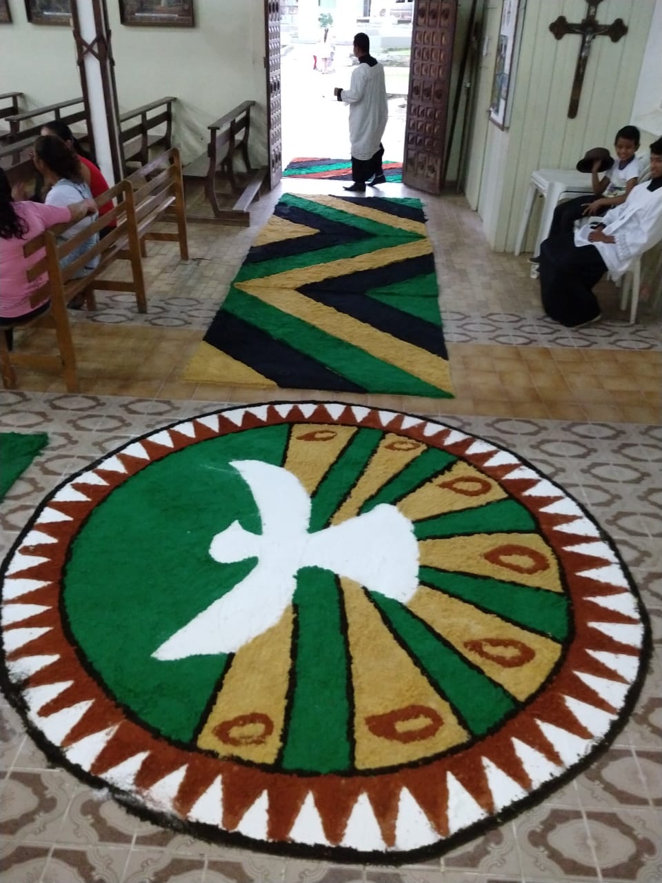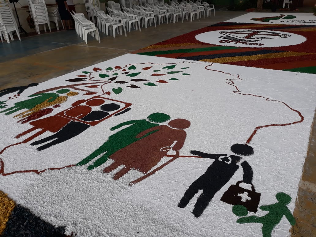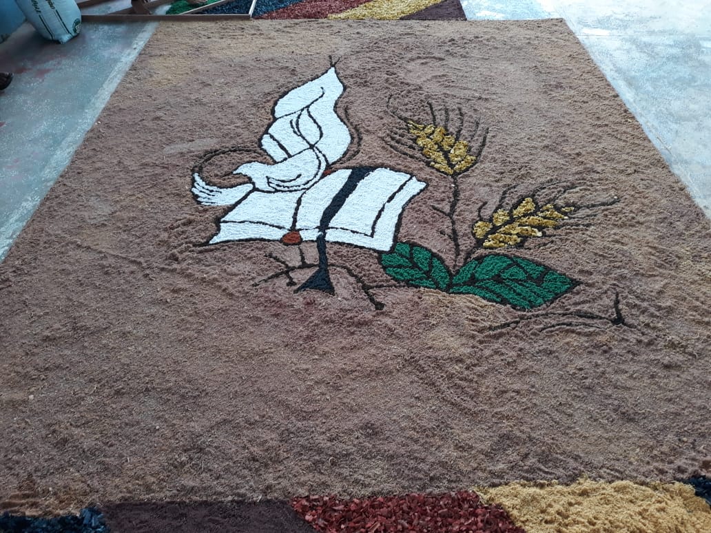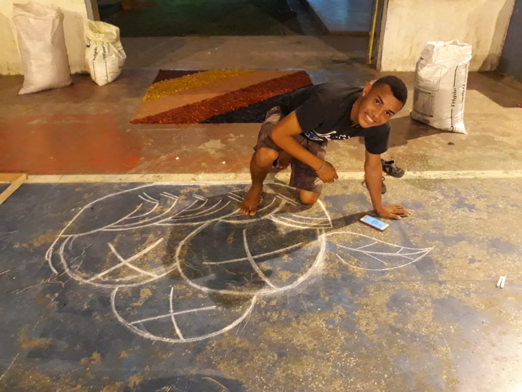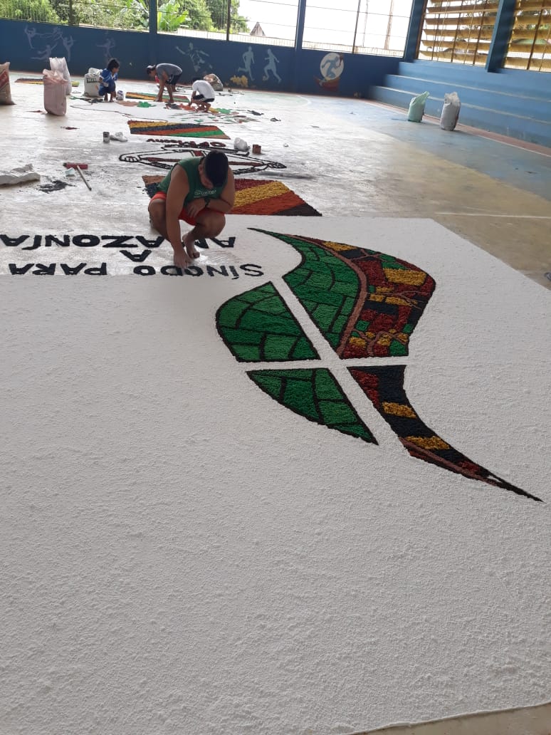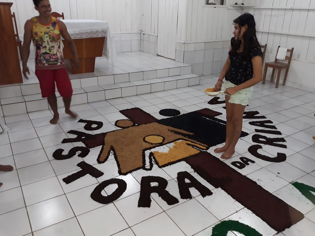 “O que foi bonito (e é o que eu sempre admiro em Juruá) é justamente a grande participação dos jovens e de todos os movimentos e pastorais de nossa comunidade”, comentou Frei Flávio sobre a celebração de ontem. Os tapetes foram confeccionados com as seguintes temáticas: Sínodo da Amazônia, da Assembleia de CEBs, os 30 anos da Pastoral da Criança na Prelazia de Tefé, a Campanha da Fraternidade e todos os motivos eucarísticos.