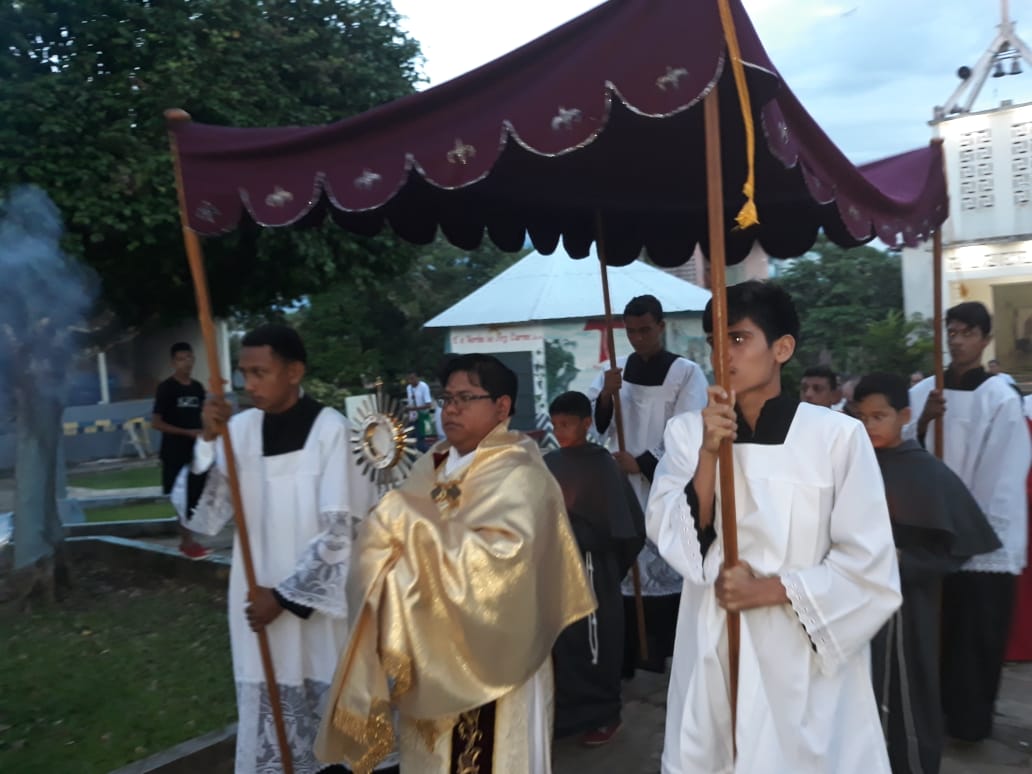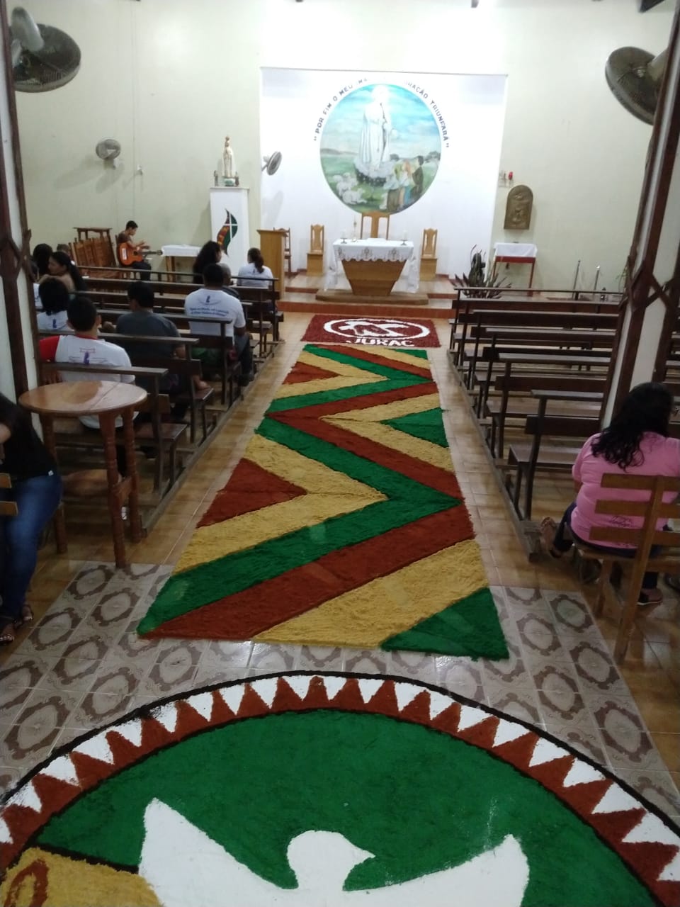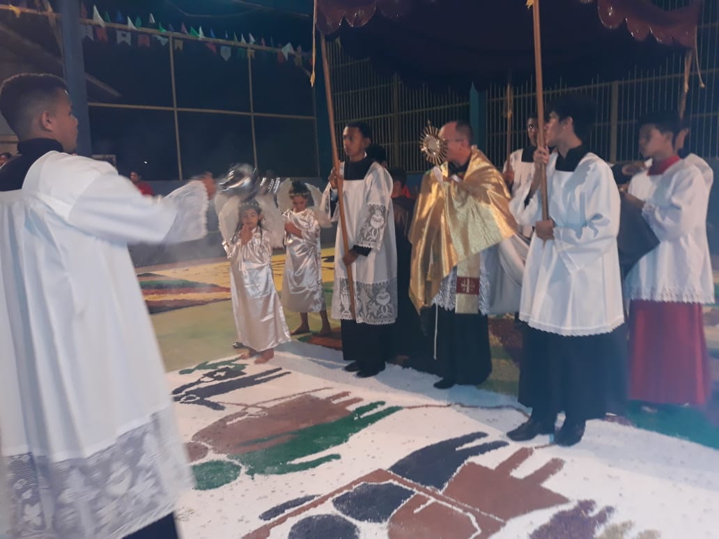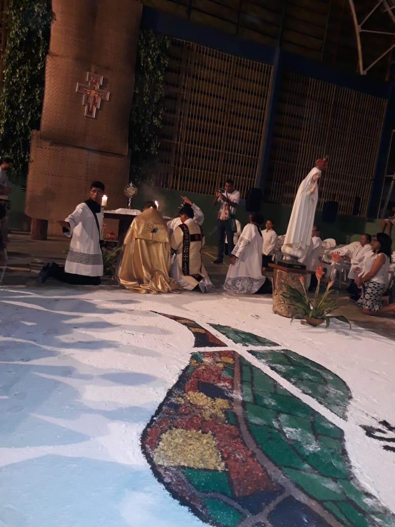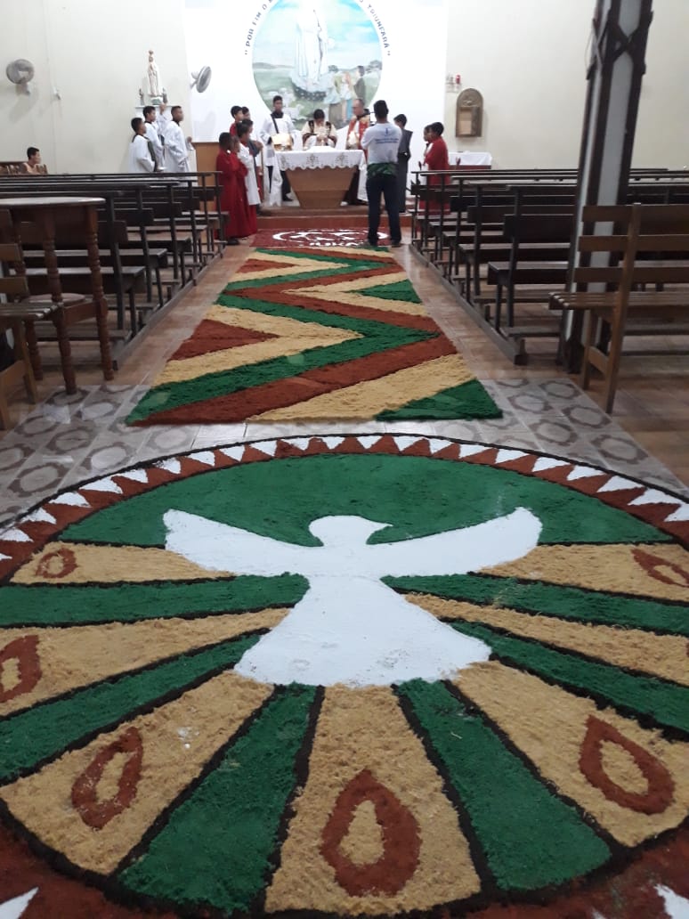 A comunidade da Paróquia Nossa Senhora de Fátima, em Juruá (AM), celebrou ontem (21) a Solenidade de Corpus Christi. Para esta data, foram realizados diferentes tapetes ornamentados com várias temáticas. A cidade de Juruá é uma das frentes de atuação da Missão Amazônia da Província São Maximiliano Kolbe que busca a propagação do Evangelho segundo o carisma franciscano (saiba mais clicando aqui).