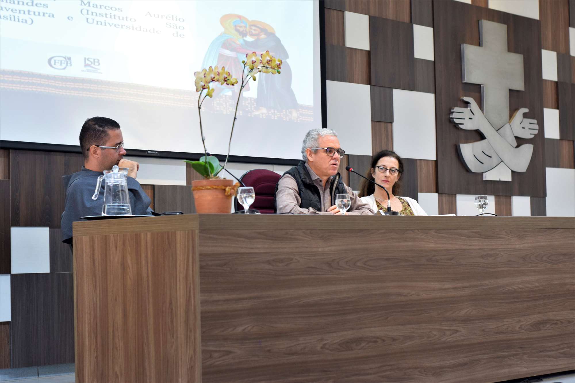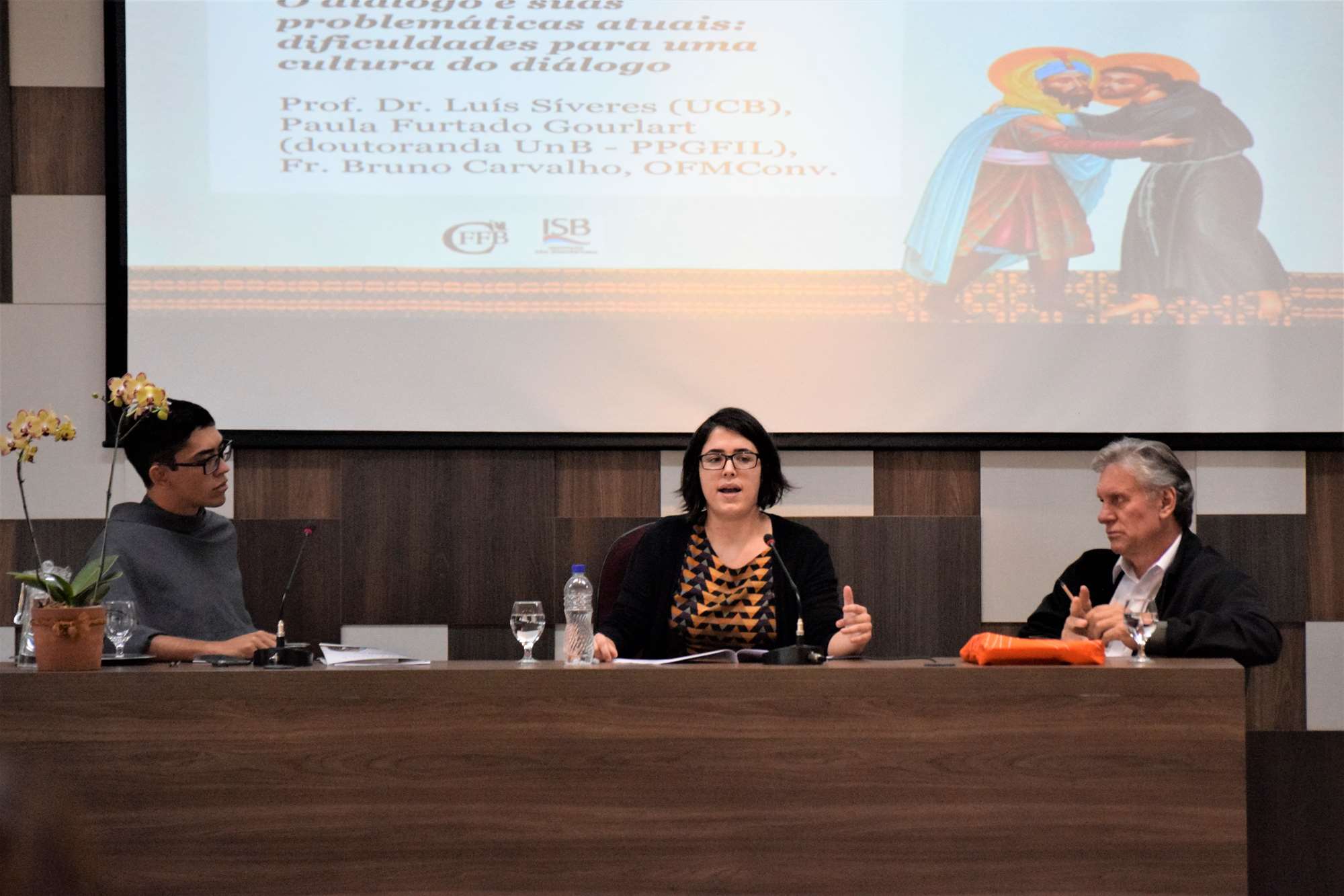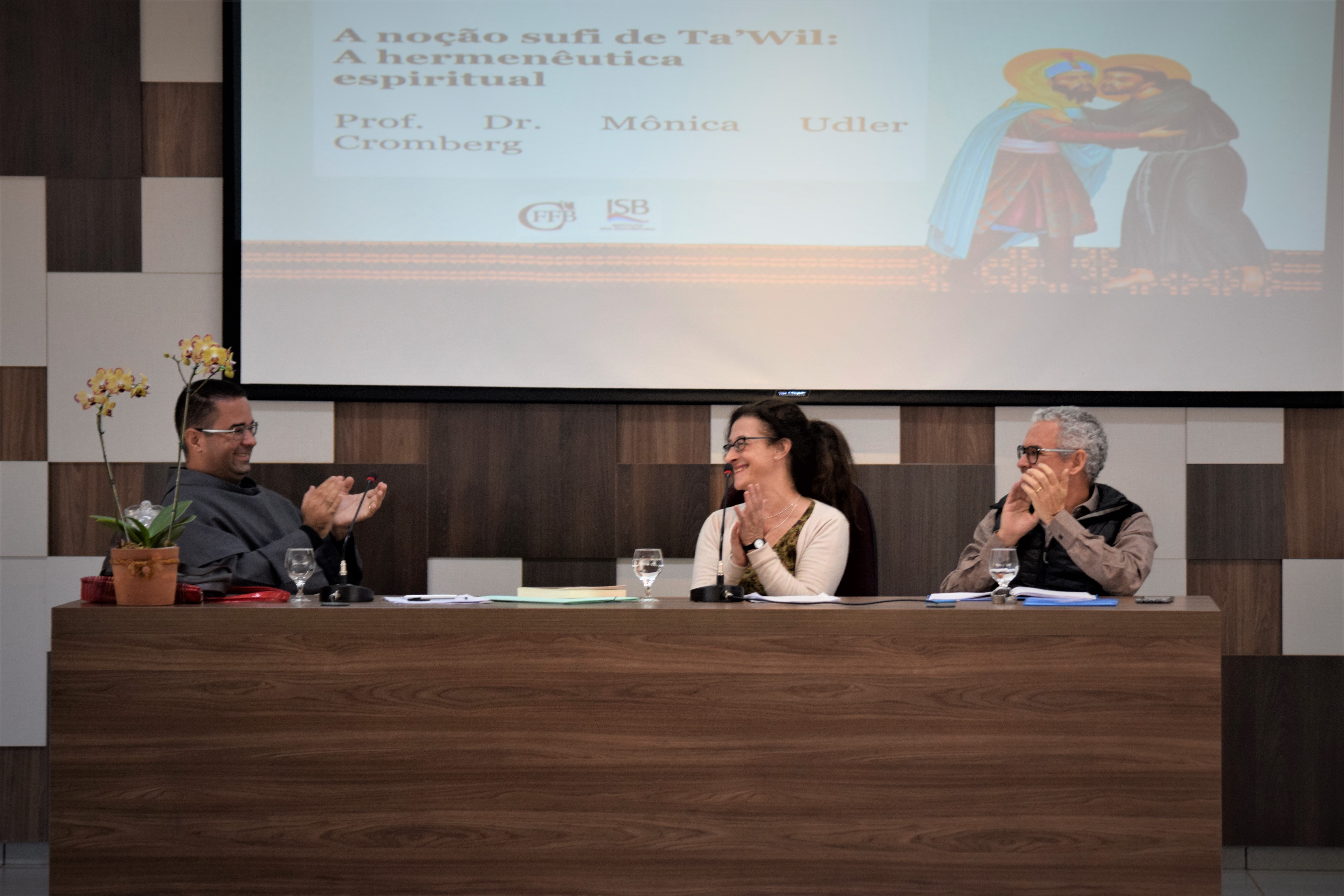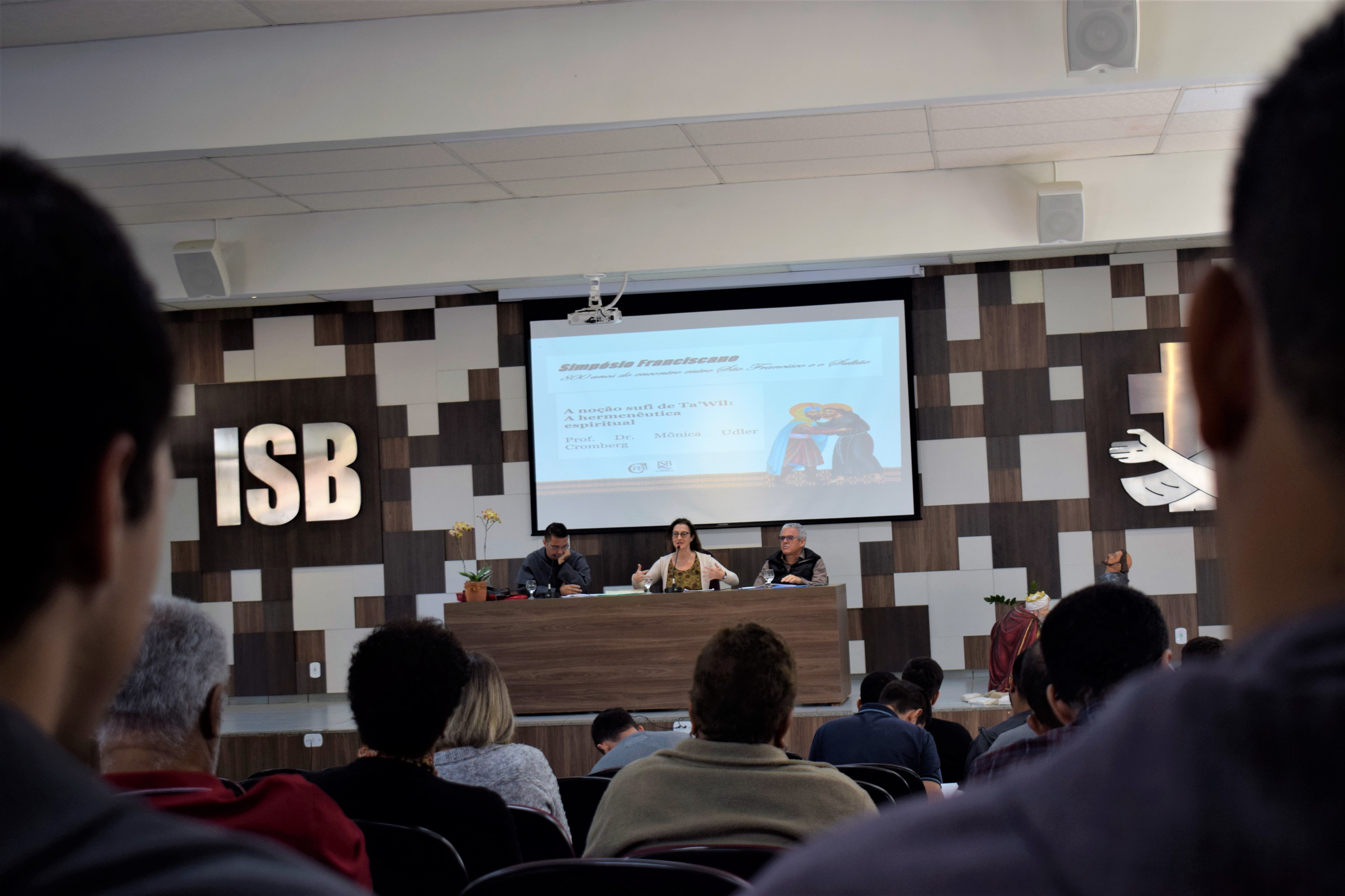 Logo no início desta terça-feira (09) no auditório do Instituto São Boaventura (ISB), em Brasília, foi realizado um painel composto pelo Frei Luís Felipe Marques (OFMConv.), pela Dr.ª Mônica Udler e o Dr. Marcos Aurélio Fernandes. Na ocasião, a Dr.ª Mônica elaborou um panorama sobre “O Islamismo e a busca pelo conhecimento: O contributo da filosofia árabe para o pensamento e a mística”.