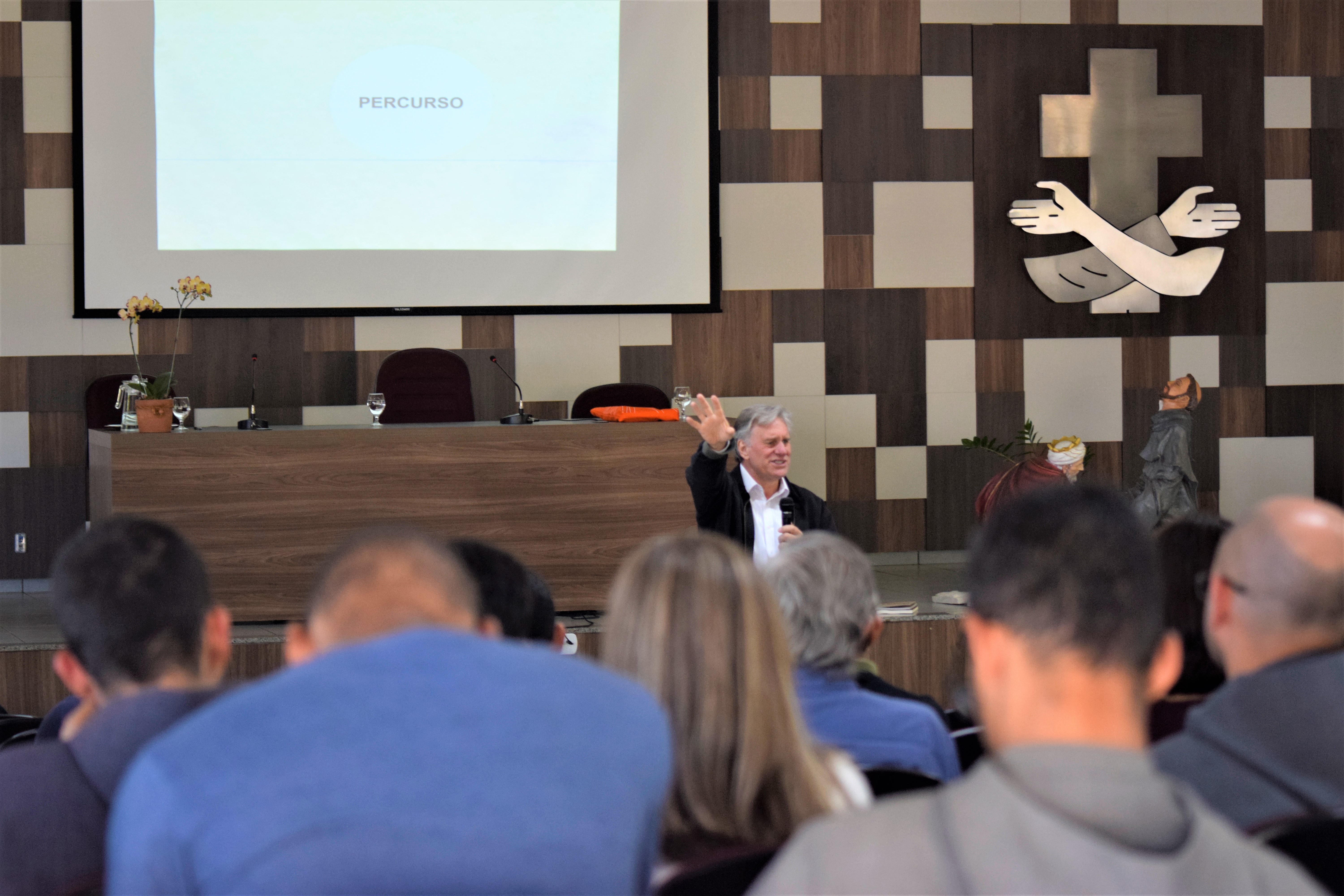 Finalizando o segundo dia do Simpósio Franciscano, o Dr. Luís explicou as dificuldades em se implementar o diálogo de acordo com as características sociais (em seus mais diversos âmbitos) do mundo moderno. O doutor atribuiu alguns exemplos para explicar sua análise, como a polarização política vivida atualmente em nosso país.