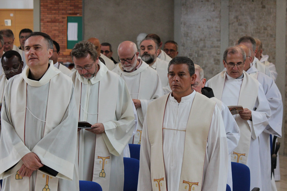 No começo, nos perguntávamos o que tínhamos feito durante estas cinco longas semanas aqui em Nemi. Depois, pouco a pouco, foi nascendo a consciência de que formamos parte de um capítulo "histórico" que, nas Constituições ainda por revisar, tocávamos com as mãos um instrumento precioso que narra nossa identidade franciscana e que pode contribuir para a renovação de nossa vida. Esta clara percepção mereceu todo nosso esforço de escuta-diálogo-discernimento feito até agora, da mesma forma como nosso irmão Bispo Frei Roberto Carboni, durante o dia de retiro, nos exortou que vivêssemos, especialmente, a partir da oração comunitária que marcou o ritmo desses dias e foram abundantes e multilíngues, incluindo a proposta da recitação diária do terço e da adoração eucarística às 21h.