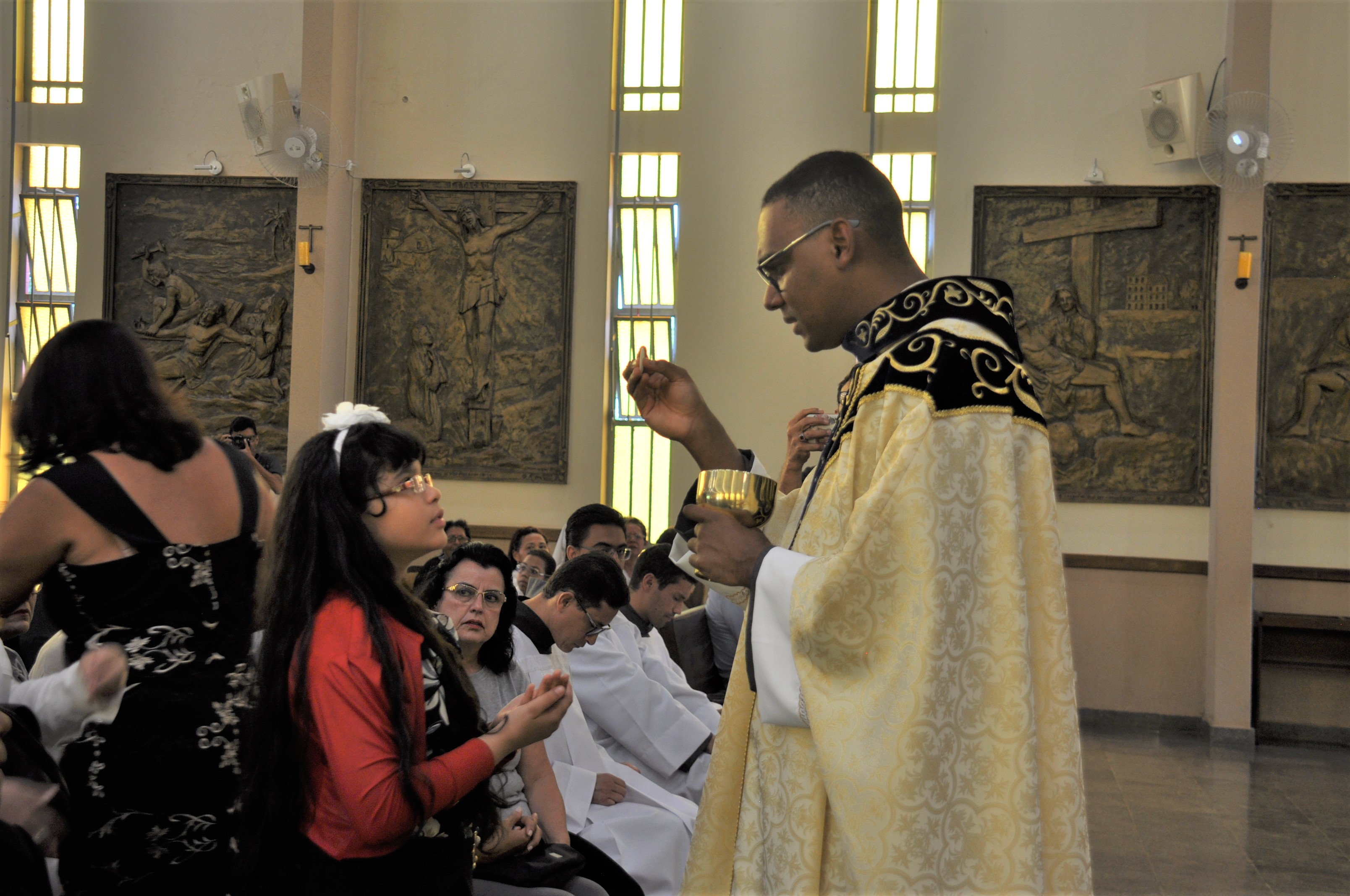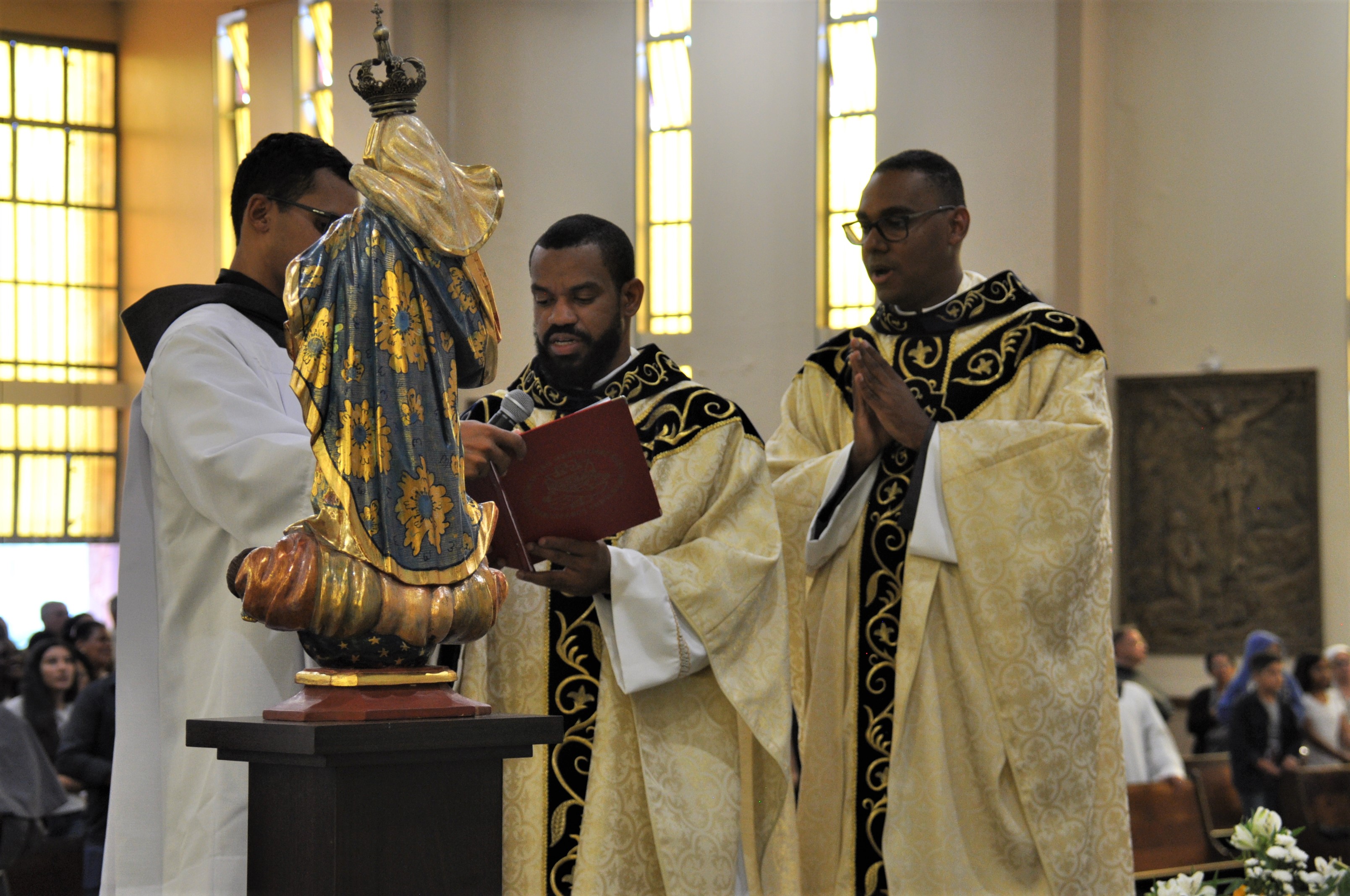 Então, os neo-presbíteros assinaram o Livro das Ordenações e, após a Santa Missa, todos e todas se encontraram na recepção do Santuário para partilharem de um almoço em fraternidade. O Frei Décio celebrou a primeira Missa ontem (09) na Paróquia Santa Clara de Assis, em Anápolis (GO) e celebrará também a Missa no próximo domingo (16) na Paróquia Nossa Senhora Auxiliadora, em Salvador (BA), seguindo o lema "Por onde andardes, anunciai que o Reino dos céus está próximo" (Mt 10,7). O Frei Adailton, também celebrou a primeira Missa ontem (09), na Paróquia São Maximiliano, em Águas Lindas (GO). E celebrará a Missa no dia 23 deste mês na Capela Santo Antônio, em Candeias (BA), seguindo o lema “Seduziste-me Senhor e eu me deixei seduzir” (Jr 20,7).
