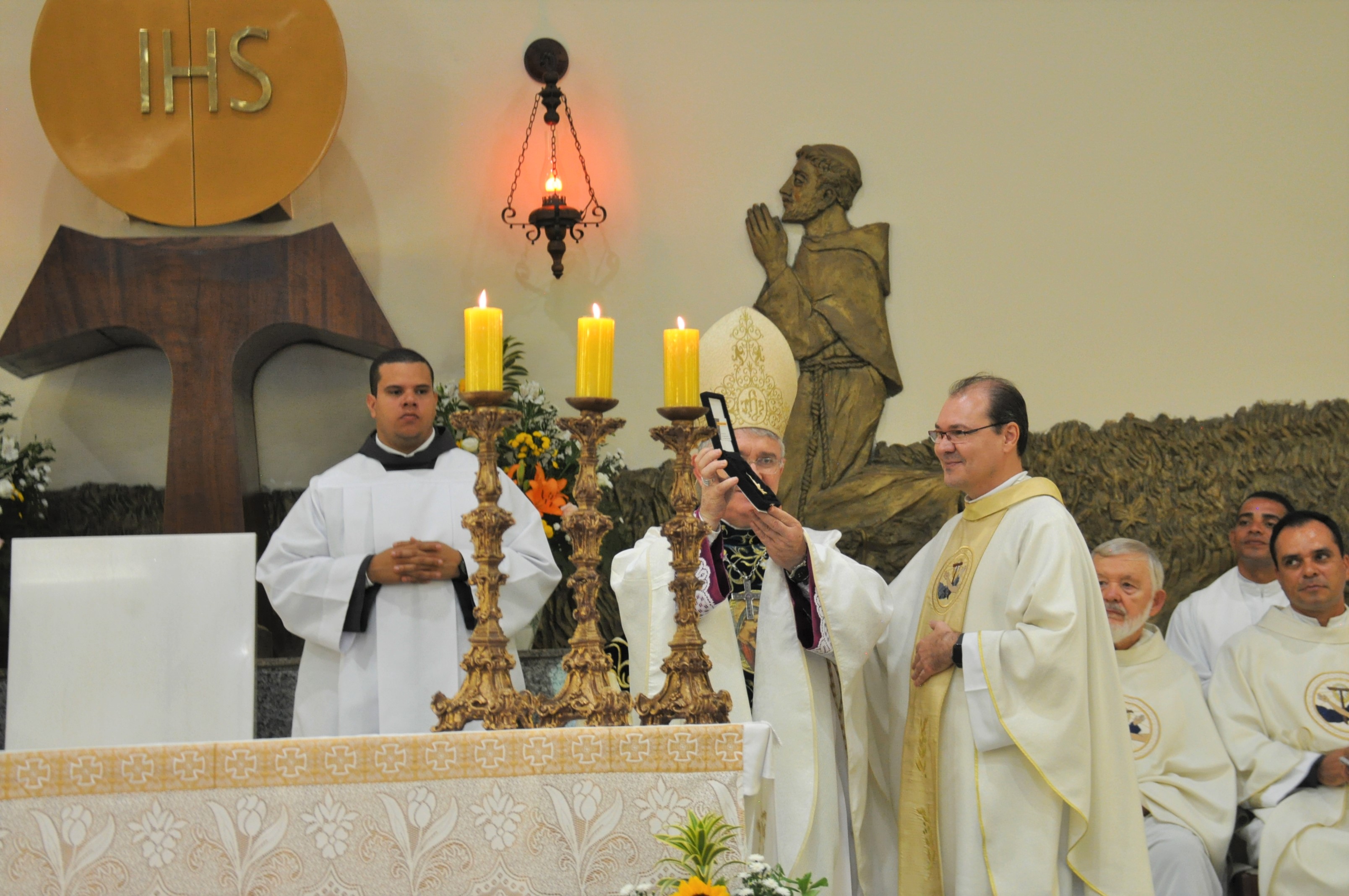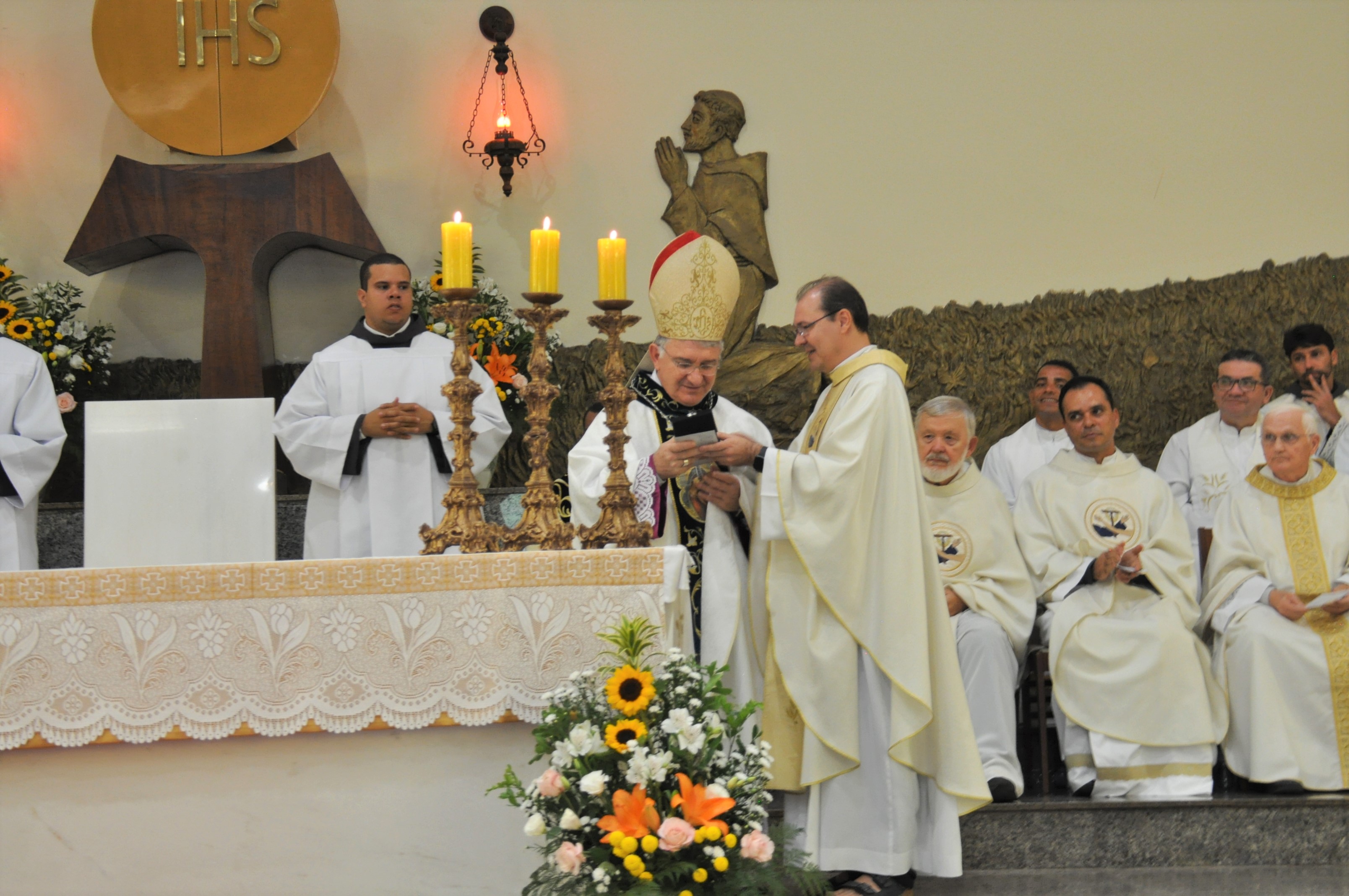Ao final da celebração, o provincial, Frei Marcelo Veronez (OFMConv.), presenteou Dom Levi com uma medalhinha da Imaculada Conceição e saudou o Bispo e toda a arquidiocese de Goiânia, bem como o arcebispo Dom Washington Cruz (CP). Dirigindo-se aos ministros recém ordenados, disse "O ministério presbiteral é muito mais um serviço do que um privilégio. É muito mais um ministério em doação ao próximo do que um mandato autoritário. Aquele que pediu a Ordenação, deve sempre ter isso em mente. Pois, quem concedeu pode sempre tirar", afirmou Frei Marcelo.