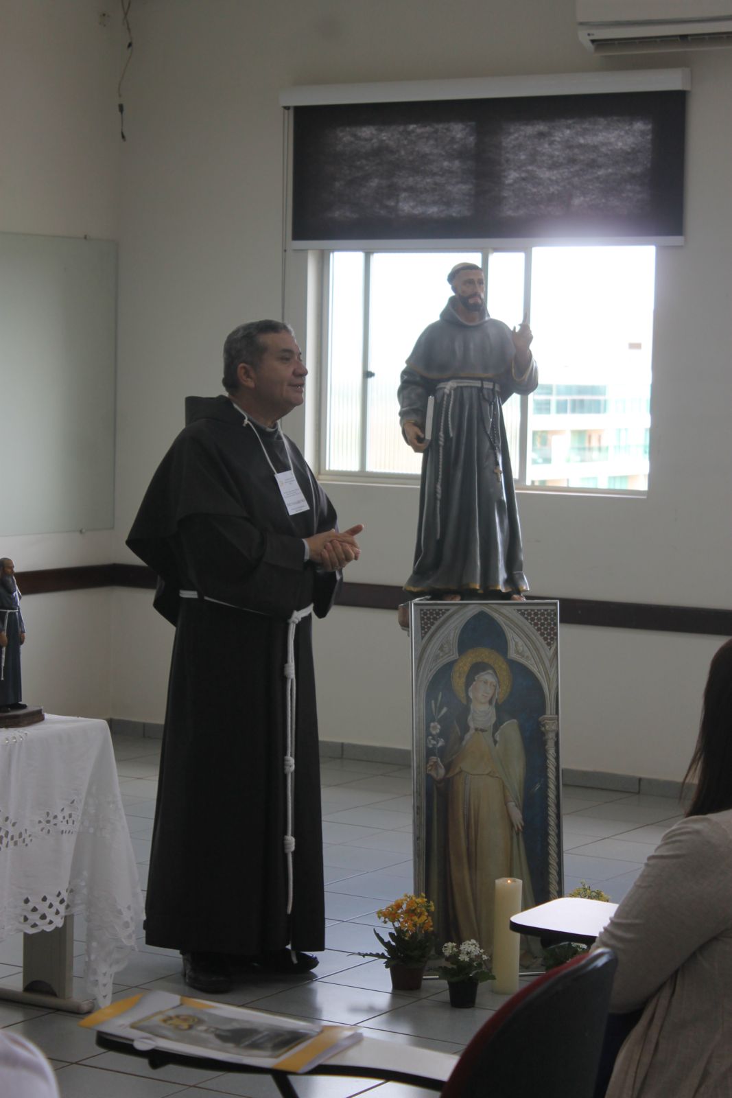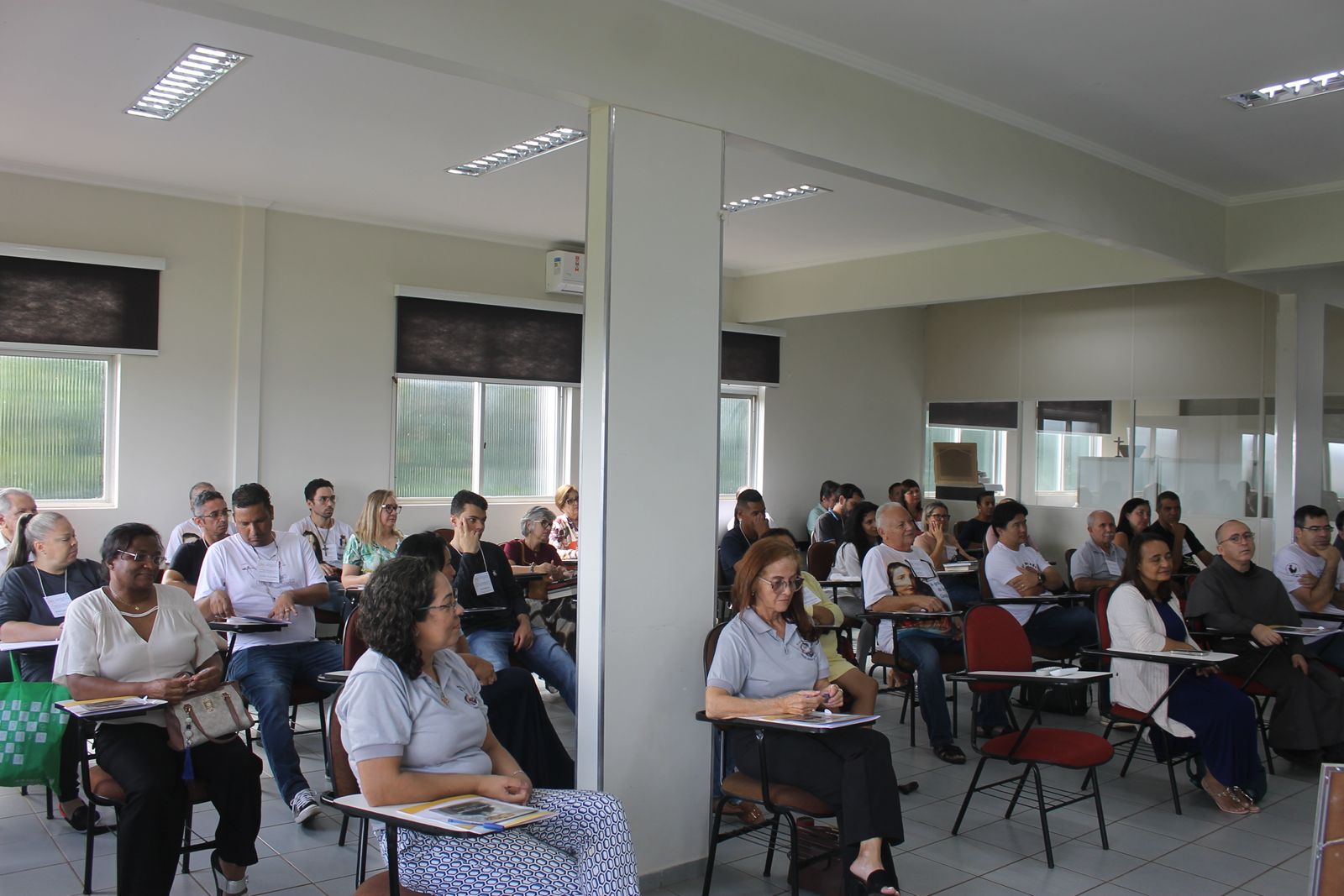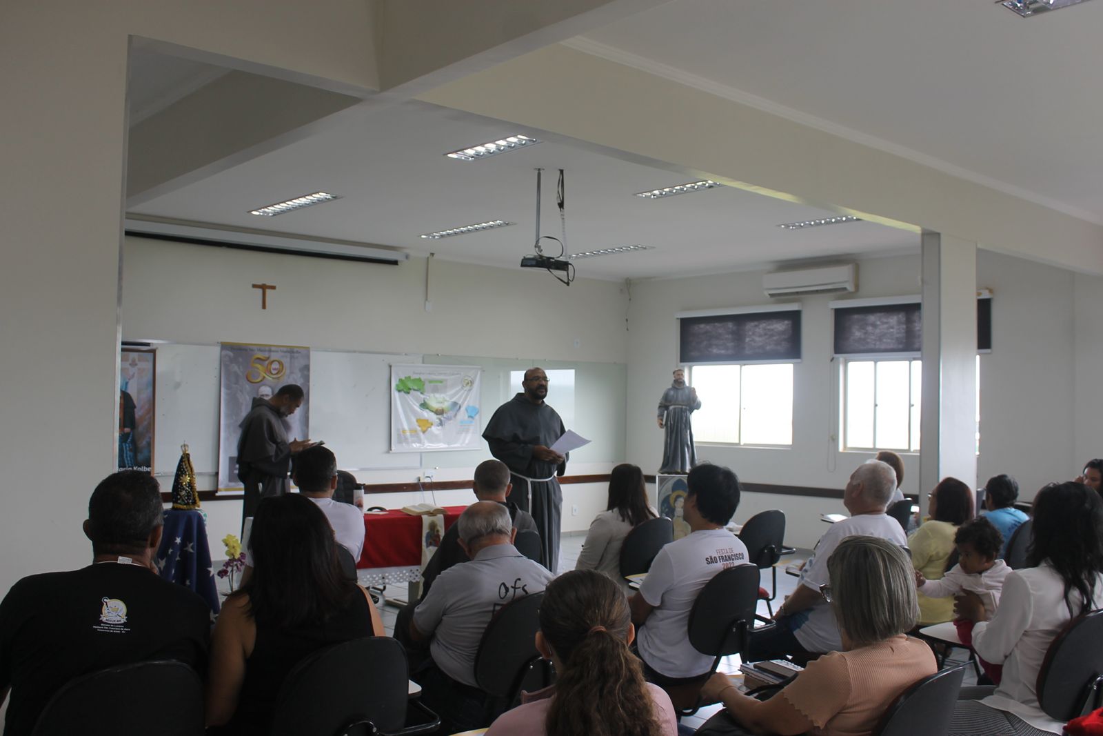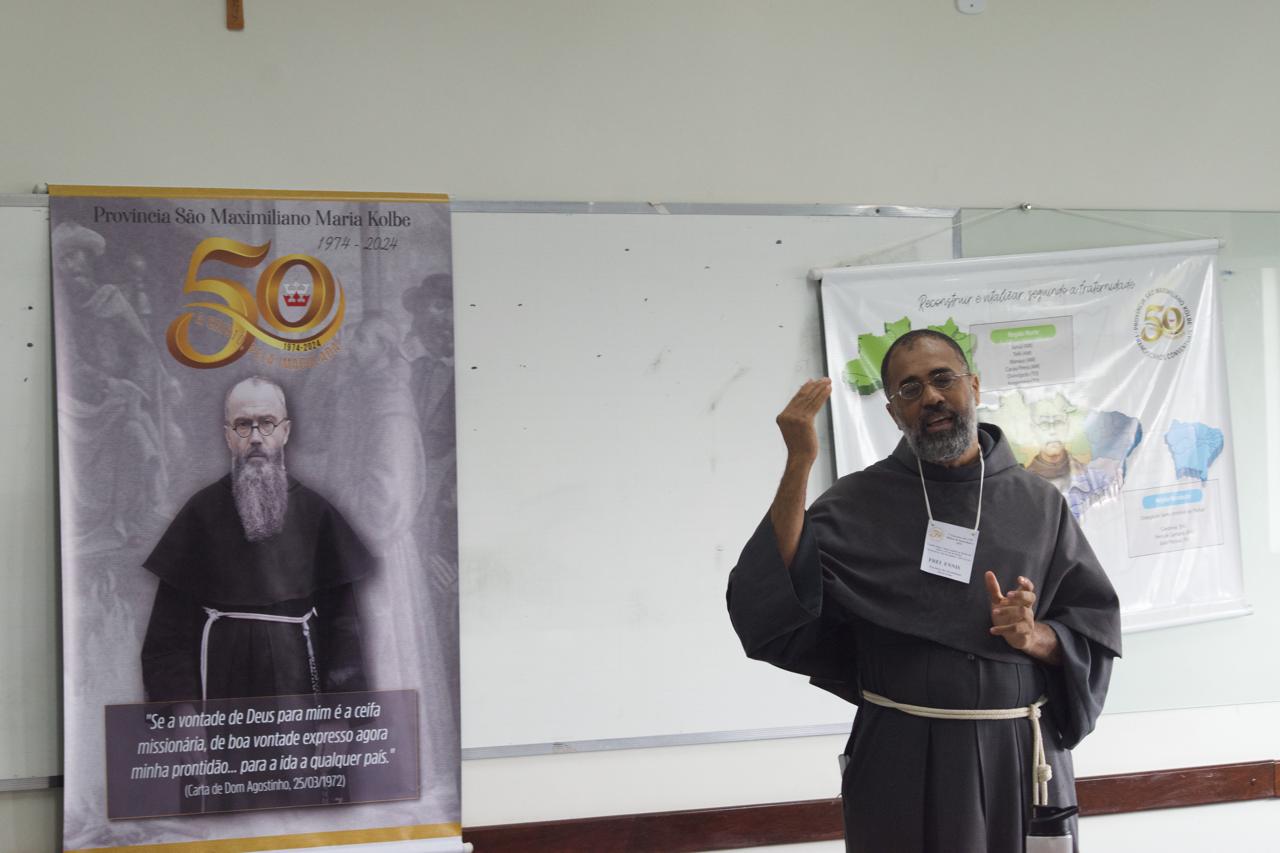 Após o almoço, os participantes participaram de uma reflexão sobre a amizade social e a vivência sacramental, orientados por Frei José Nasareno. A tarde prosseguiu com uma profunda exploração da história da Missão Kolbe no Brasil desde a sua origem até a fundação da Província São Maximiliano Kolbe. Esta partilha foi dividida em duas partes, as quais foram conduzidas pelos Freis Mieczyslaw Tlaga e Flávio Freitas, respectivamente. O dia foi encerrado com um momento de descontração, com a exibição de um filme que retratava a jornada da Província.