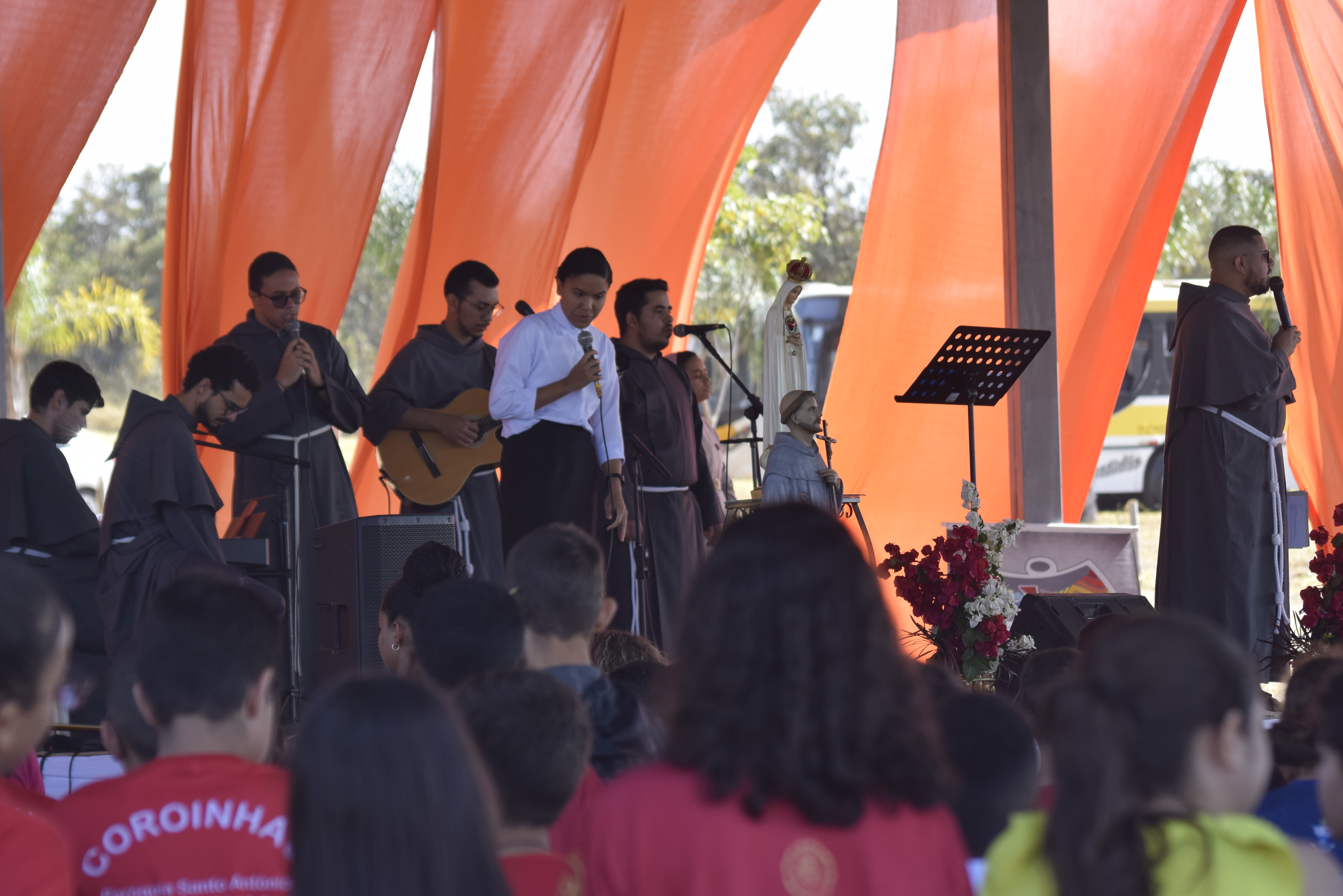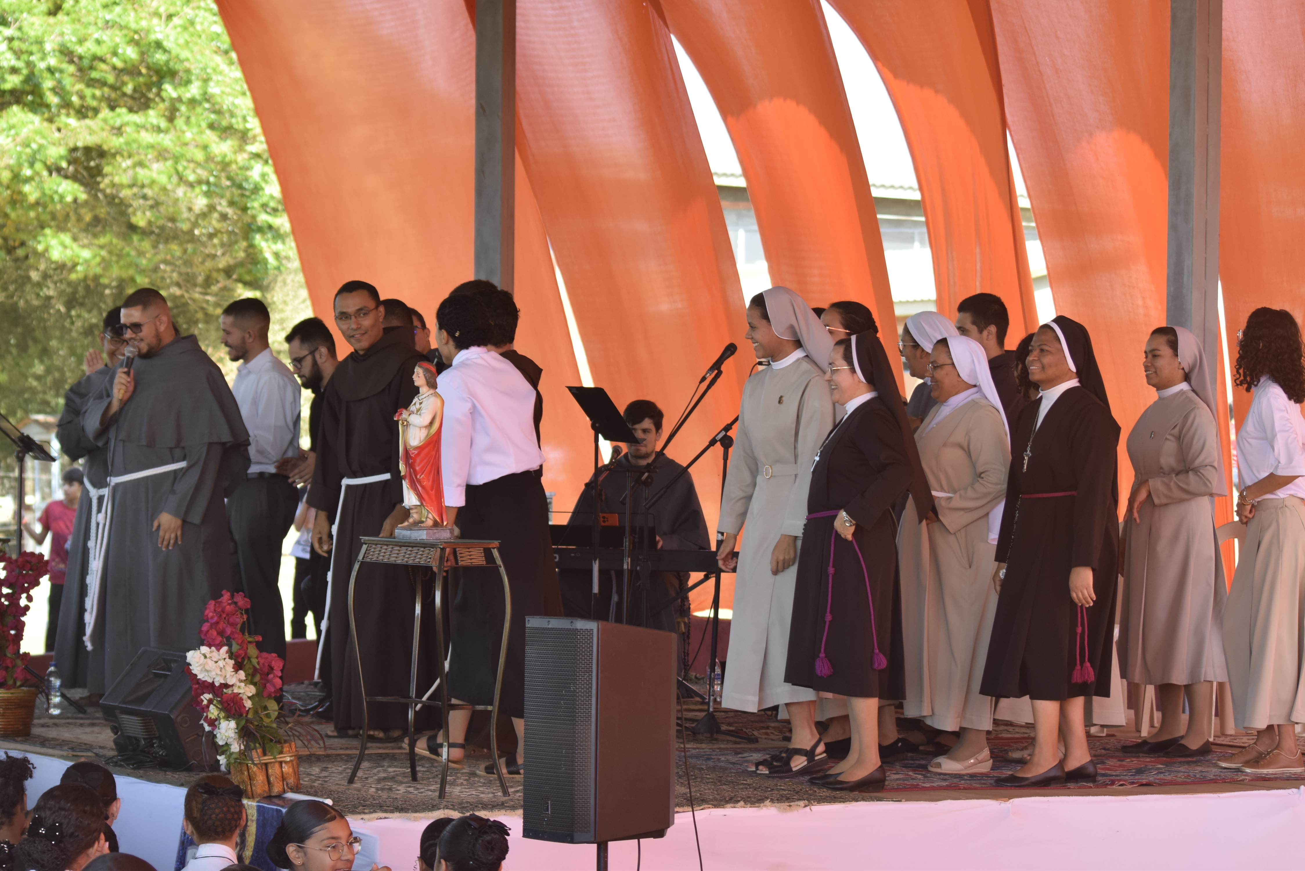 Após o almoço, ao meio-dia, os participantes retomaram as atividades com mais gincanas às 13h30, que promoveram a união e o trabalho em equipe. Às 15h30, o foco do encontro se voltou para a oração, com a Adoração ao Santíssimo Sacramento e a procissão, sob a condução do Frei Antonio Maria (OFMConv.). A Santa Missa foi presidida pelo Ministro Provincial, Frei Gilberto de Jesus (OFMConv.).