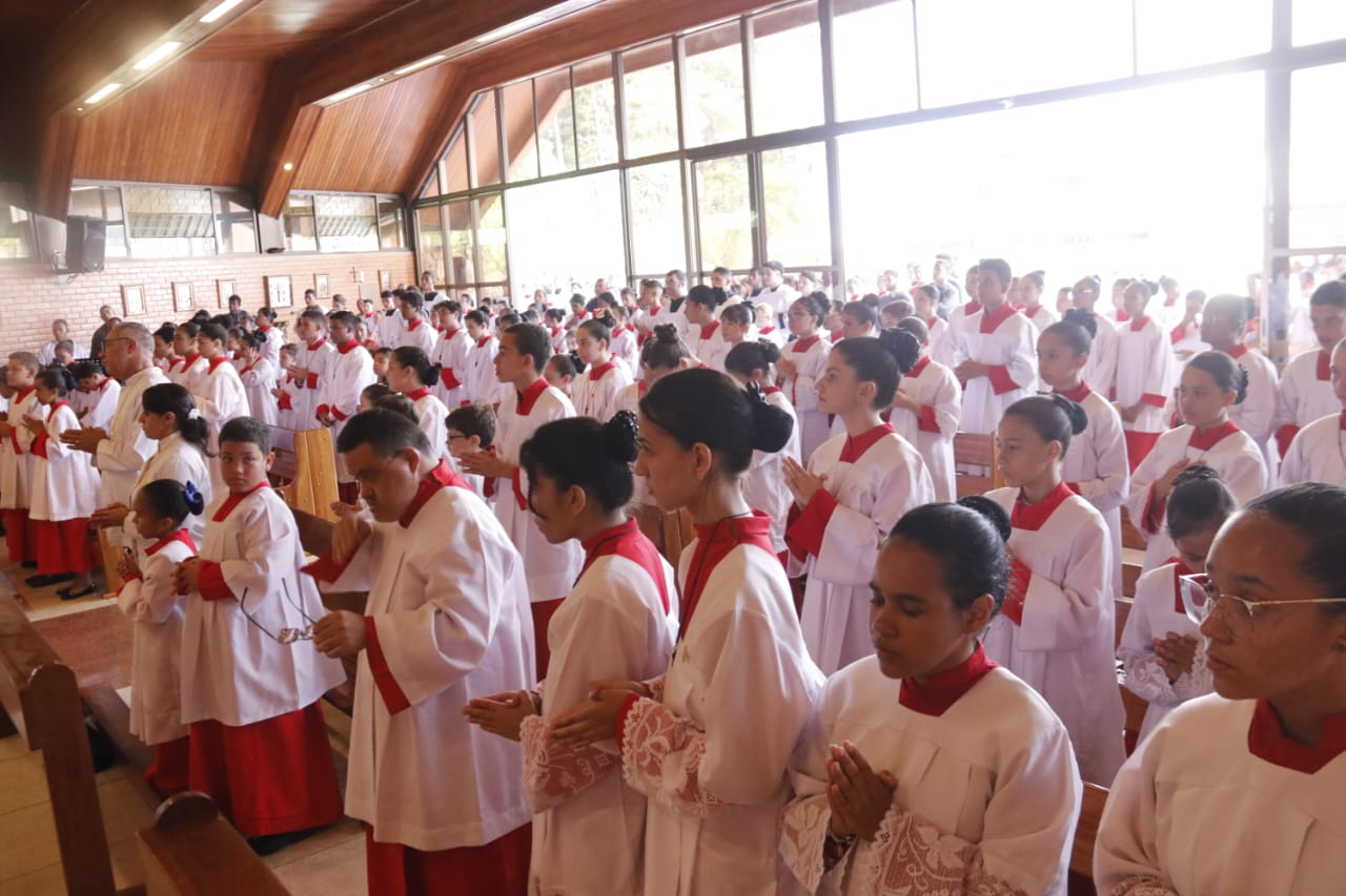 Parabenizo a todos que organizaram e participaram deste belíssimo Encontro que ressaltou o amor a Deus e Virgem Maria no coração de cada criança coroinhas e cerimoniarias.