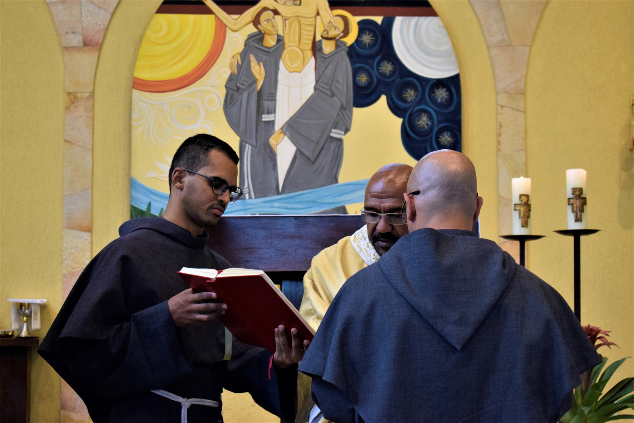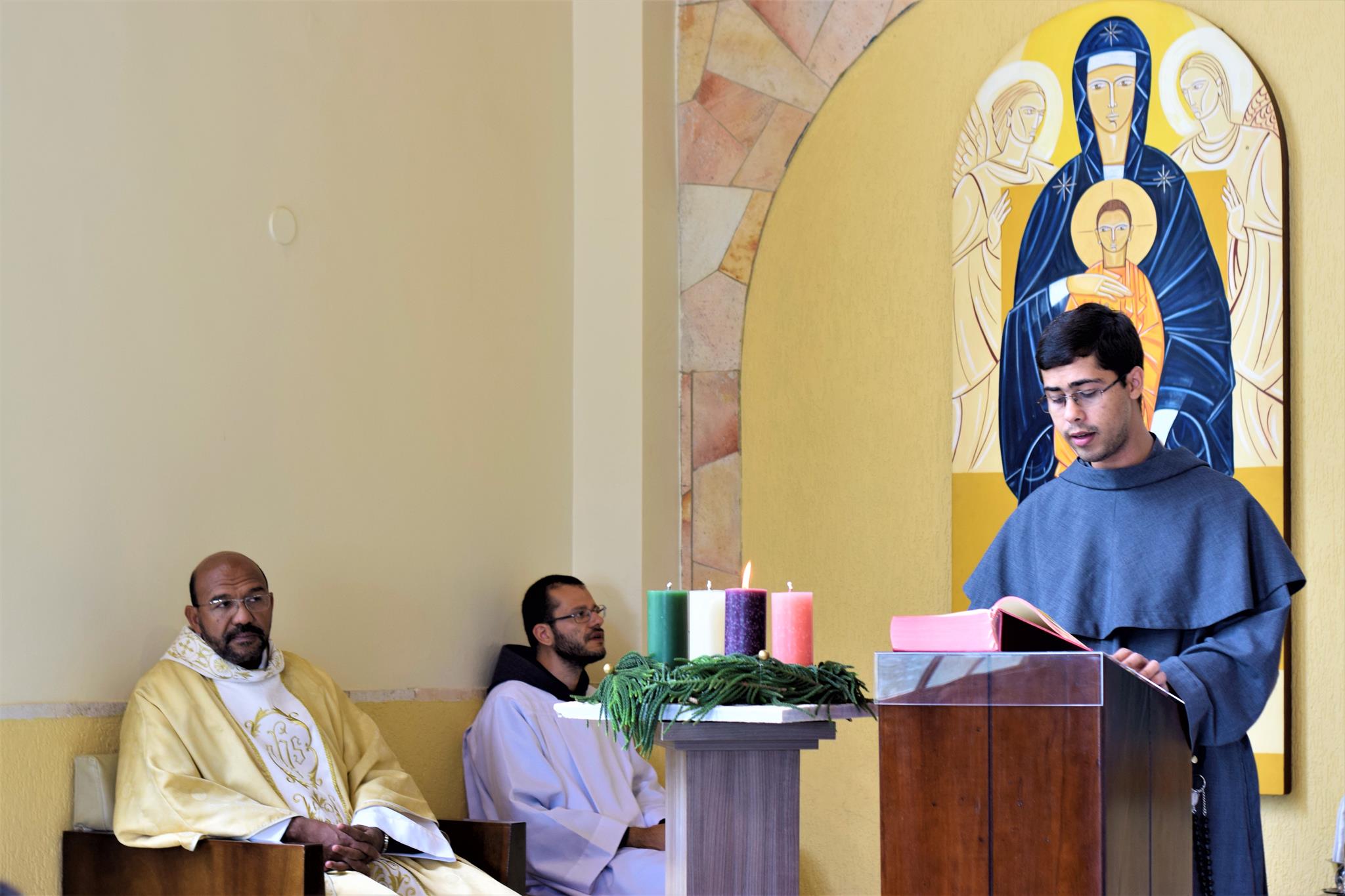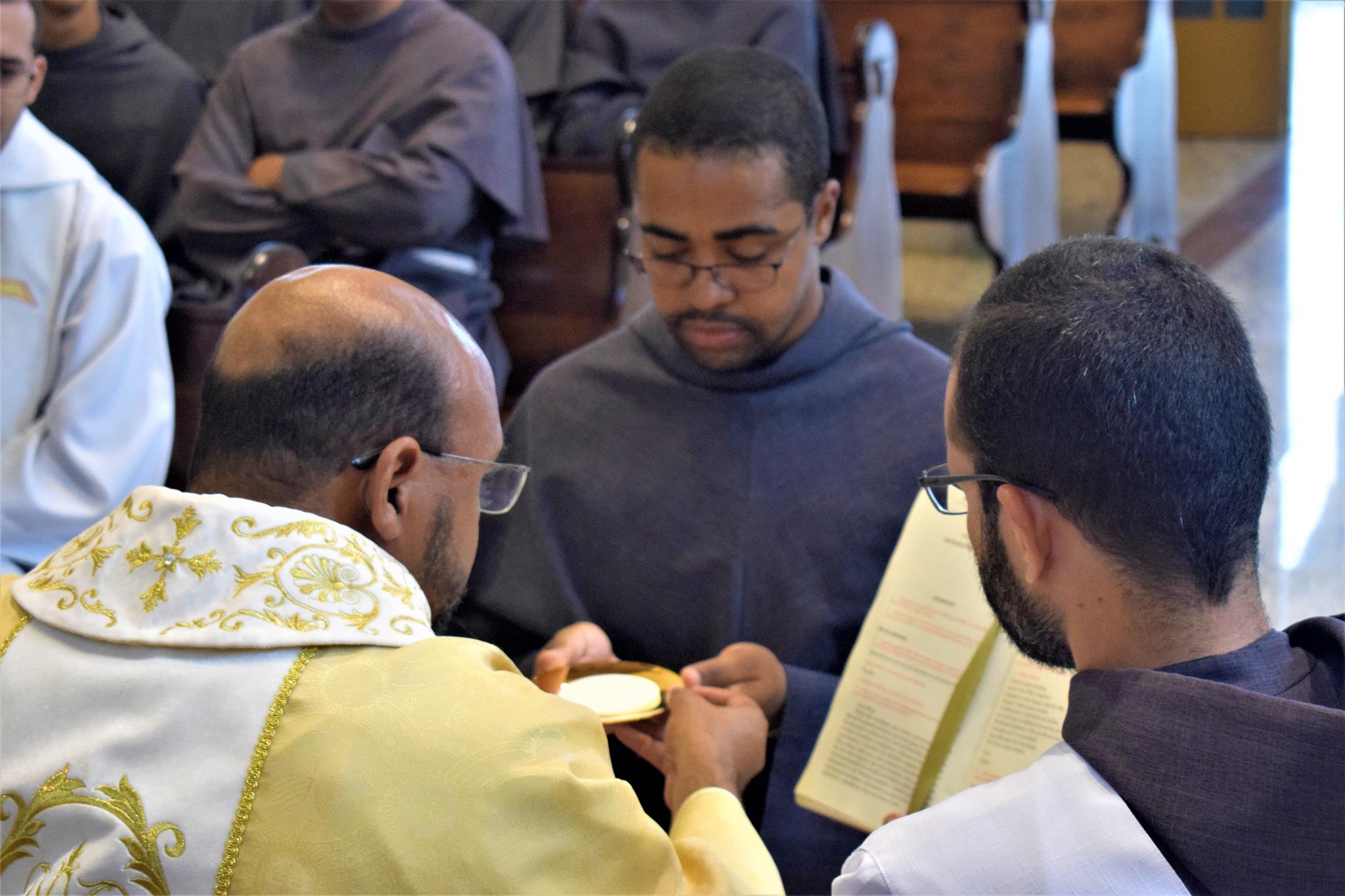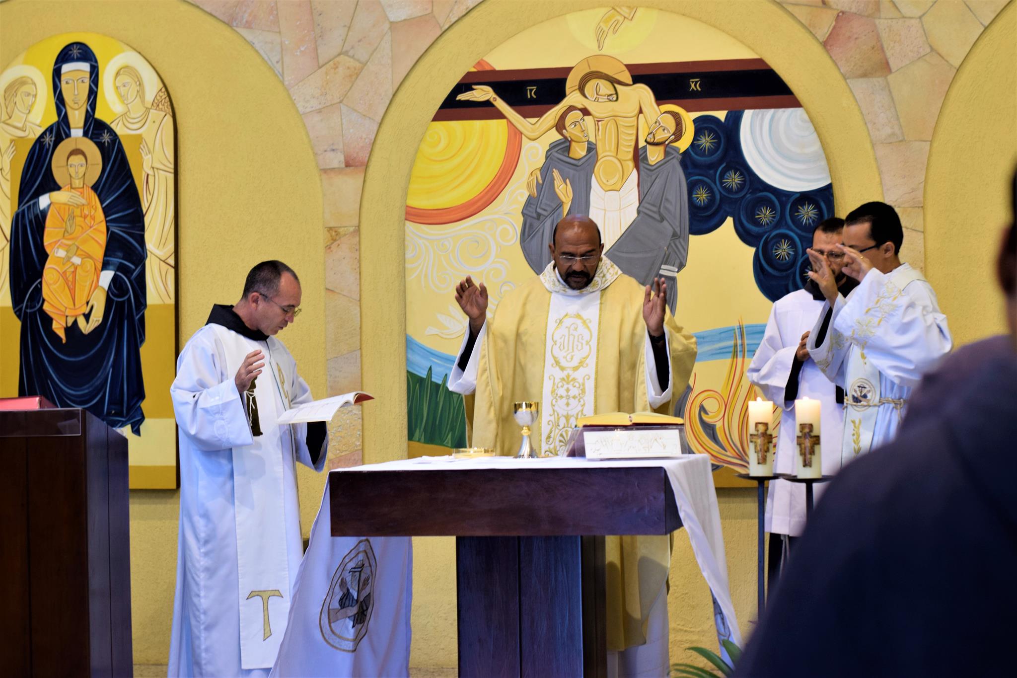 Co-presidindo a Santa Missa, estiveram os Freis Flávio Amorim (OFMConv.) e o, até então formador da casa, Frei Mayko Ataliba (OFMConv.). Durante a homilia, o Frei Gilberto relembrou aos frades estudantes que esta é mais uma etapa do “sim” que eles disseram ao chamado de Deus, devendo manter viva a chama de suas vocações.