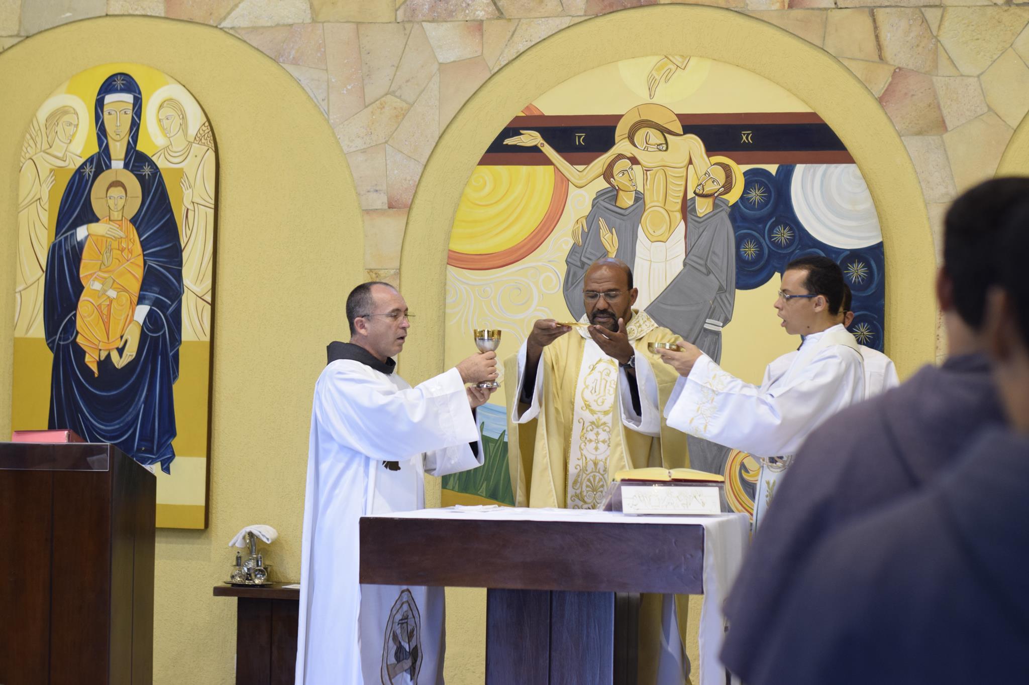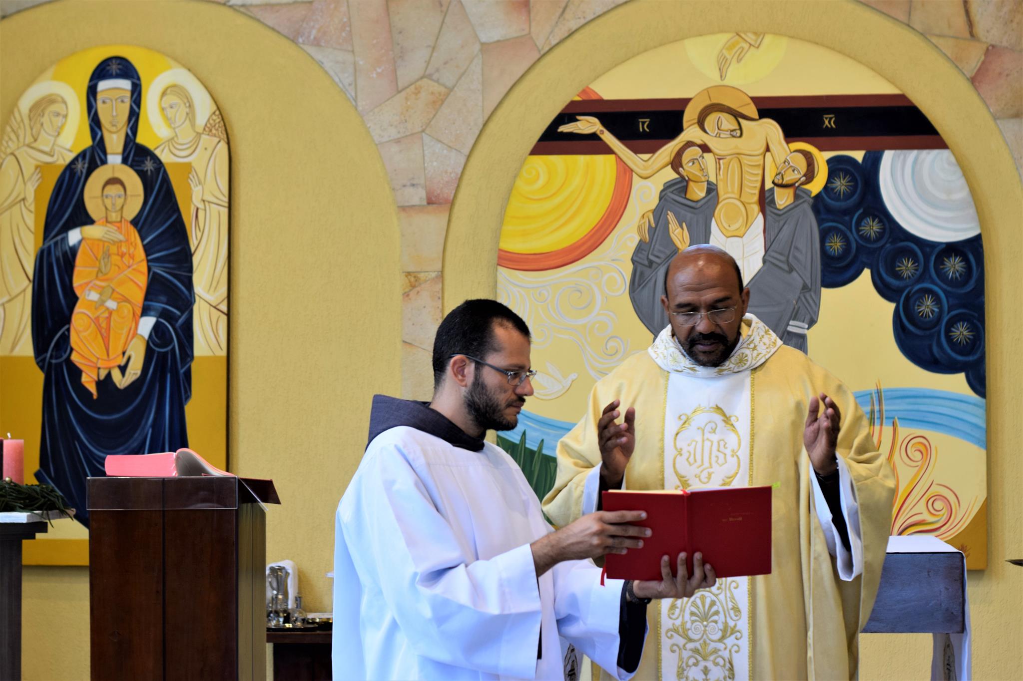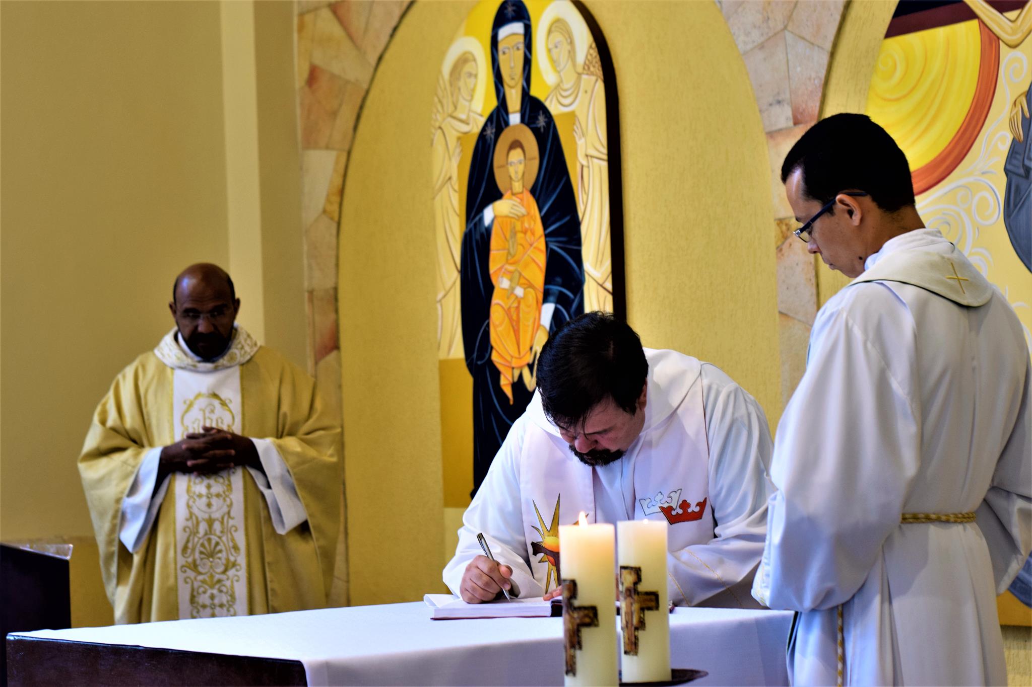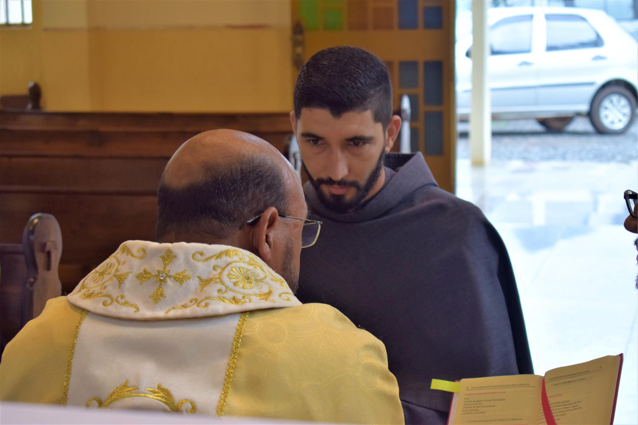 Co-presidindo a Santa Missa, estiveram os Freis Flávio Amorim (OFMConv.) e o, até então formador da casa, Frei Mayko Ataliba (OFMConv.). Durante a homilia, o Frei Gilberto relembrou aos frades estudantes que esta é mais uma etapa do “sim” que eles disseram ao chamado de Deus, devendo manter viva a chama de suas vocações.