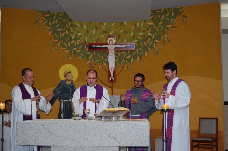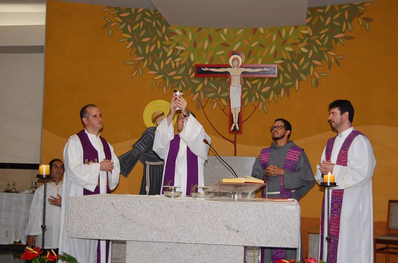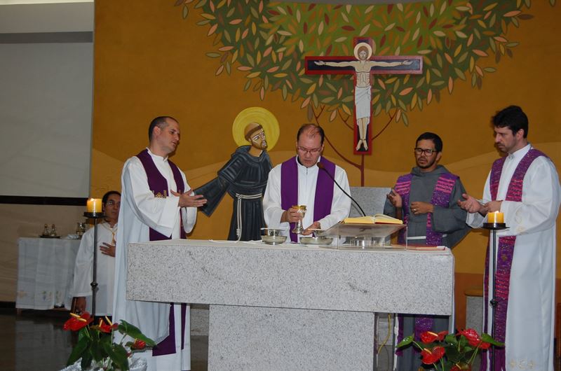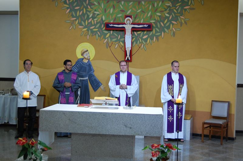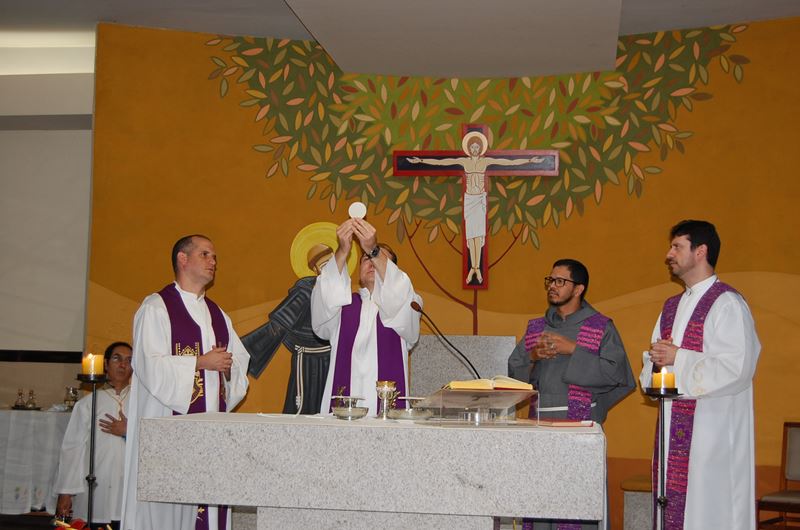 Por esta ocasião, os membros da Cúria Provincial (Provincial, secretário, ecônomo, etc.), na Cripta do Santuário São Francisco, às 12h15, celebraram a Santa Missa nestas intenções, de modo especial, recordamos o nosso primeiro missionário Dom Frei Agostinho, falecido em 2011,  os benfeitores de nossa Província que faleceram e contavam com nossas orações.