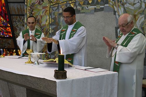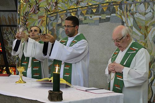 O Frei Luís Felipe Marques, reitor do nosso Seminário São Francisco, Brasília - DF e Frei Emanuel Afonso da Silva, diretor do Colégio Santo Antônio da Cidade Ocidental - GO participaram do Curso. No terceiro dia de reflexões (13/10) Frei Luís presidiu a Santa Missa. Na homilia o frei destacou a importância da dimensão que identifica o amor de Deus Pai para com a realidade criada, sobretudo o gênero humano, e advertiu a postura conservadora adotada pelo farisaísmo, posicionamento este que não concretiza a vivência do amor doação pregado pelo Cristo e que afasta, das boas obras do Reino, aqueles que manifestam o desejo honesto de percorrer a estrada apontada pelo Senhor Jesus.