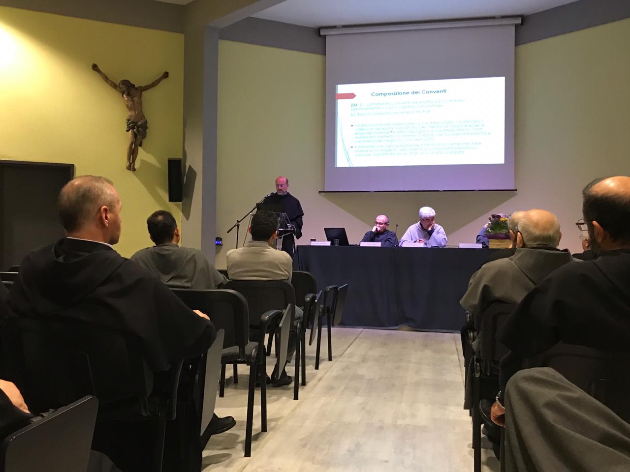 Outras conferências tocaram nas questões legais vigentes: a origem e a natureza do poder do governo na Ordem, ou quem e o que governa a comunidade, tema desenvolvido por Dom Filippo IANNONE (Carmelitas) Presidente do Pontifício Conselho. para os textos legislativos; o abandono da vida religiosa e sacerdotal com o arcebispo José Rodríguez Carballo (OFM) Secretário da Congregação para os Institutos de Vida Consagrada e Sociedades de Vida Apostólica .; as novas normas da Santa Sé sobre a administração em institutos religiosos, brilhantemente ilustradas por P. Sebastiano PCIOLLA (Cistercienses),  igualmente estimulante e envolvente, foi a reflexão sobre os critérios de autonomia das províncias, ministrados por P. Antonio Belpiede (OFM) Procurador-Geral, e a comunicação sobre a formação inicial, realizada por Frei Robert LEŻOHUPSKI (OFMConv).