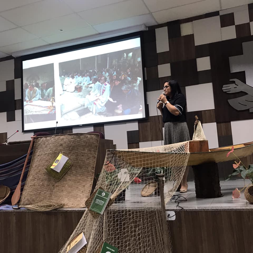 A primeira palestra foi realizada pela Ir. Maria Irene Lopes que, desde 2009, coordena a Assessoria da Comissão Episcopal para a Amazônia. Convidada pelo próprio Papa Francisco, a irmã carmelita fez parte do Conselho Pré-Sinodal e, em seguida, foi chamada a ser auditora do Sínodo. “Syn quer dizer juntos e Hodus quer dizer caminhar. Ou seja, o Papa nos propõe a caminhar juntos”, disse ela acerca da origem da palavra.