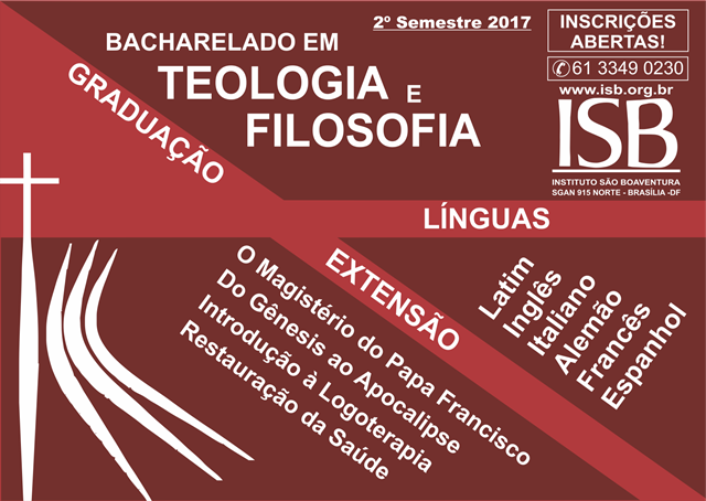 O Instituto São Boaventura (ISB) está com inscrições abertas para diversos cursos para o segundo semestre de 2017. Localizado na 915 Norte (anexo ao Santuário São Francisco) o ISB é afiliado a Faculdade Seraphicum de Roma pertencente a Ordem dos Frades Menores Conventuais.