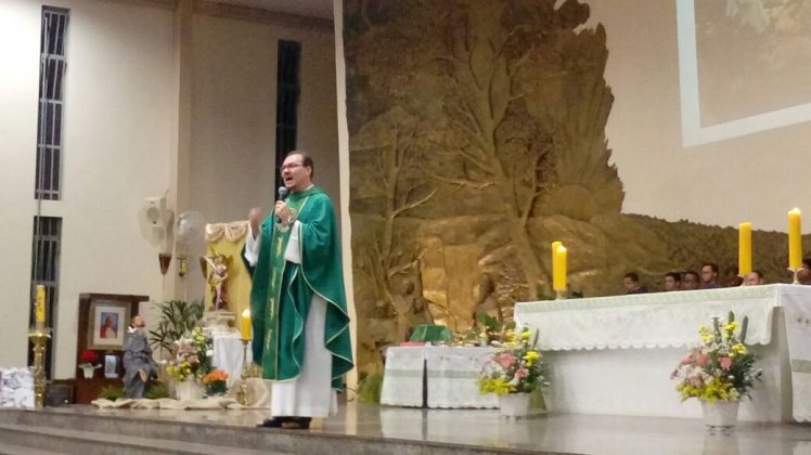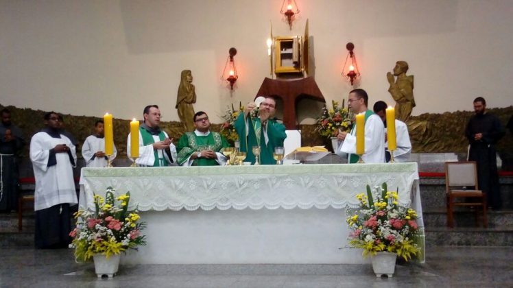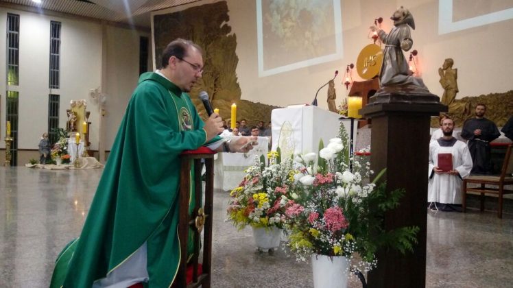 Ao inicio da Santa Missa, Frei Bernardo saudou os confrades presentes e todo o povo de Deus em nome do Guardiâo Frei Fabrício que nesta mesma hora encerrava o ECC paroquial.