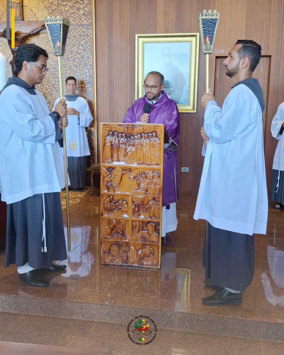 A Santa Missa, realizada na Capela do Jardim da Imaculada, foi presidida pelo Ministro Provincial, Frei Gilberto de Jesus, OFM Conv., e concelebrada por confrades sacerdotes e formandos das Casas de Formação.