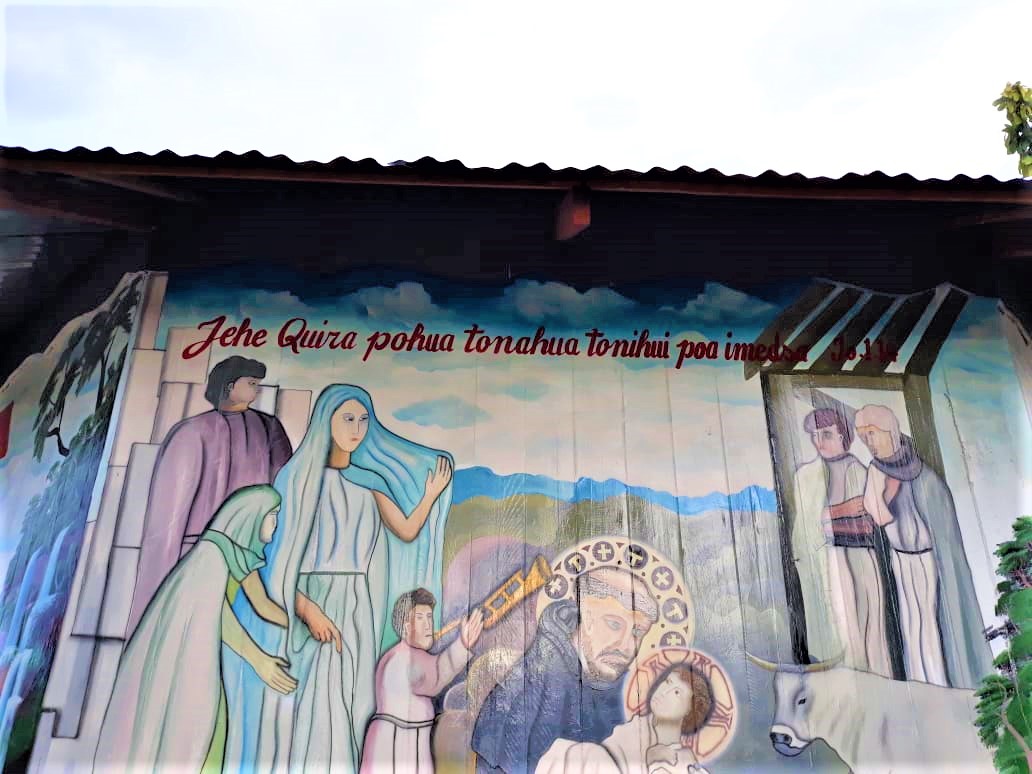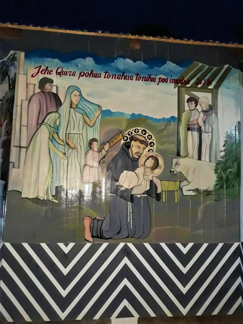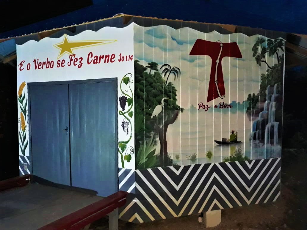 A estrutura foi elaborada pensando em uma maloca indígena e o interior da casa se assemelha às moradias das comunidades ribeirinhas. Também na pintura, além dos símbolos eucarísticos (como o trigo e a parreira), estão representadas paisagens comuns da região amazônica. Para representar o Amor de São Francisco pelo menino Jesus, logo na entrada está escrito “E o verbo se fez carne” (Jo 1, 14) e, na parte de trás, tem-se a mesma inscrição, porém, na língua Madiha Kulina, pertencente aos índios Culinas, tribo indígena acompanhada pelos frades franciscanos Conventuais, “Jehe Quira pohua tonahua tonihui poa imedsa” (Jo 1, 14).