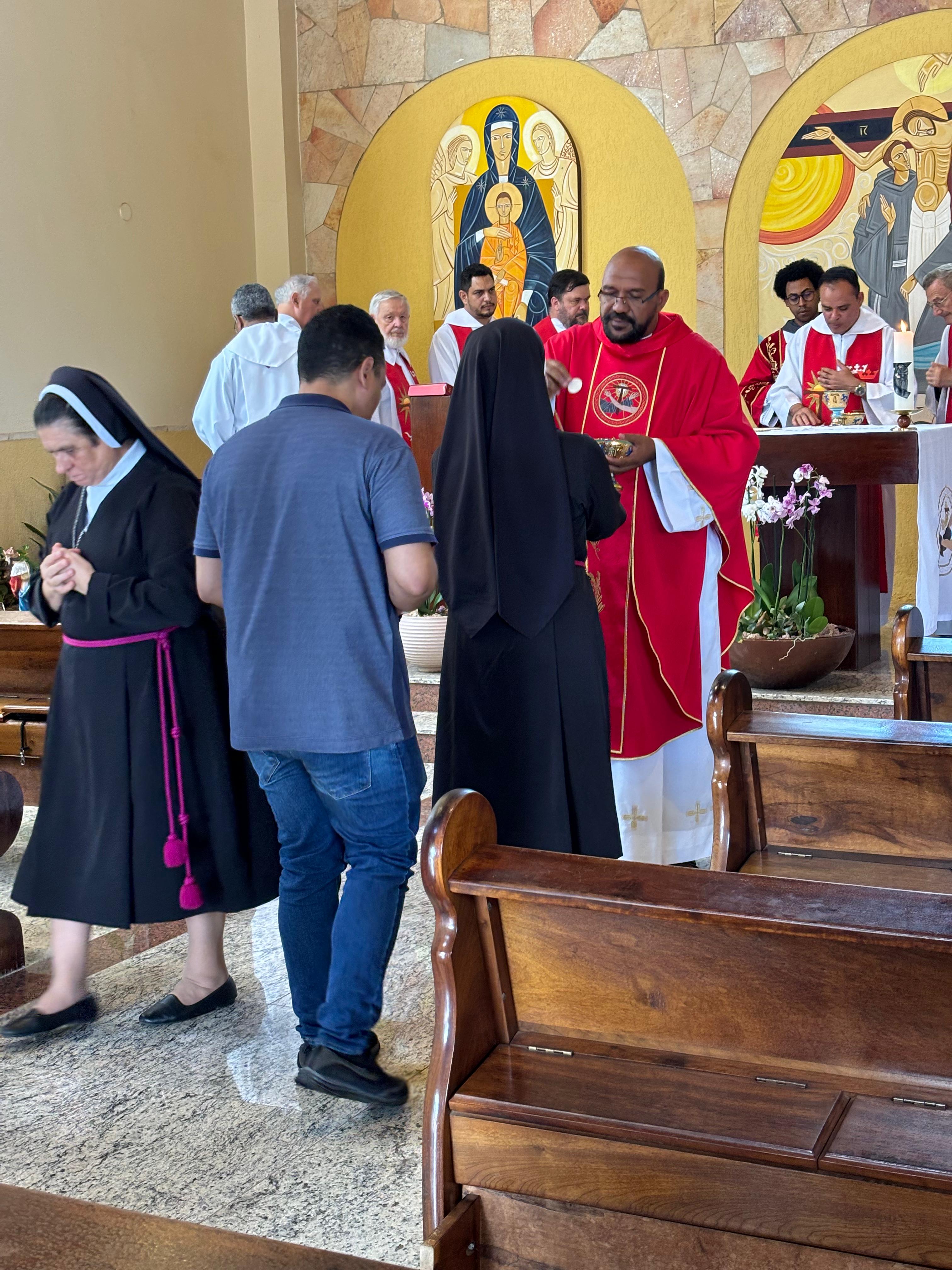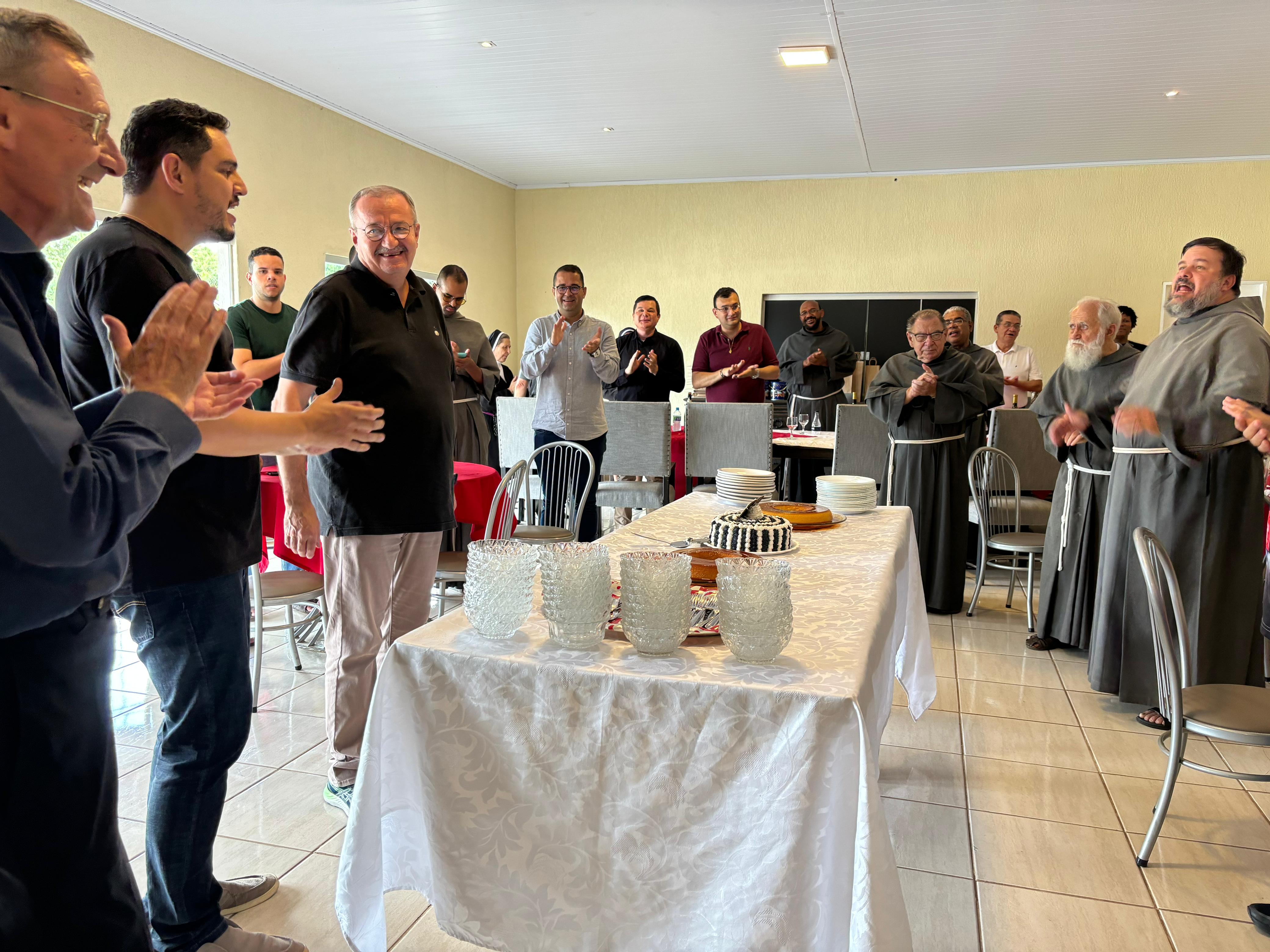 Às 11h aconteceu a Santa Missa, presidida pelo Ministro Provincial, Frei Gilberto de Jesus (OFMConv) e concelebrada por vários outros frades sacerdotes presentes. Estiveram na confraternização frades de diversos conventos da nossa Província, bem como as Irmãs da Sagrada Família e alguns amigos próximos. Após a Santa Missa, aconteceu um almoço fraterno, no refeitório do Seminário. Na ocasião, aproveitou-se para saldar o Frei Victor Mora (OFMConv) por seu aniversário natalício.