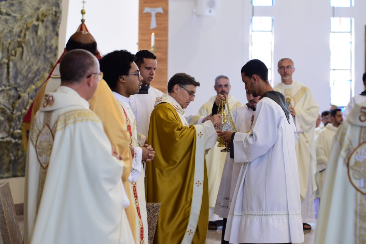 Deste modo, apontamos os valores de nossa jurisdição nestas celebrações dos festejos dos 50 anos da Província. Externalizamos nossas intenções na realização de uma Santa Missa central, em ação de graças por todos os benefícios recebidos, que será presidida pelo Ministro Geral, Frei Carlos Trovarelli, OFMConv., no sábado, dia 26 de outubro de 2024, às 10h; sendo esta uma grande oportunidade de unir os confrades da Província, de outras jurisdições, e de toda a Ordem. A celebração terá uma expressão de doação, oblação e consagração a Deus, e como ato concreto ocorrerá a Profissão Solene de nossos confrades: Frei Joao Vitor Gomes da Fonseca da Silva, OFMConv., Frei Christian César Silva Santos, OFMConv. e Frei Thiago da Silva de Oliveira, OFMConv.