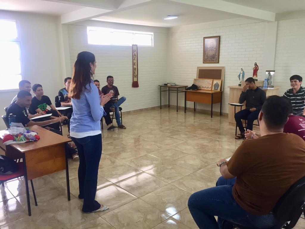 Dentre as muitas atividades e formações, os vocacionados puderam conversar com a psicóloga Juliana sobre "Autoconhecimento e Relacionamento Saudável".