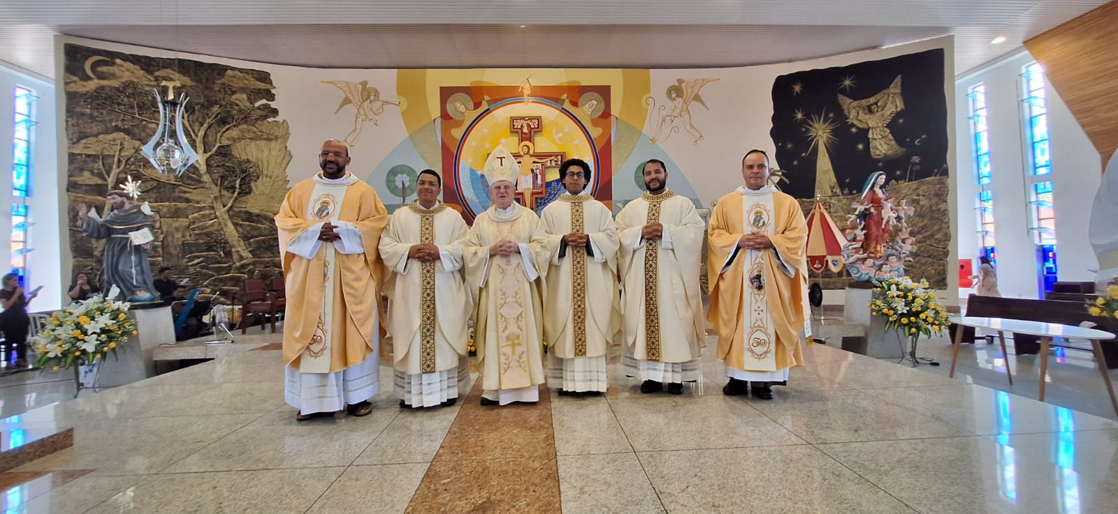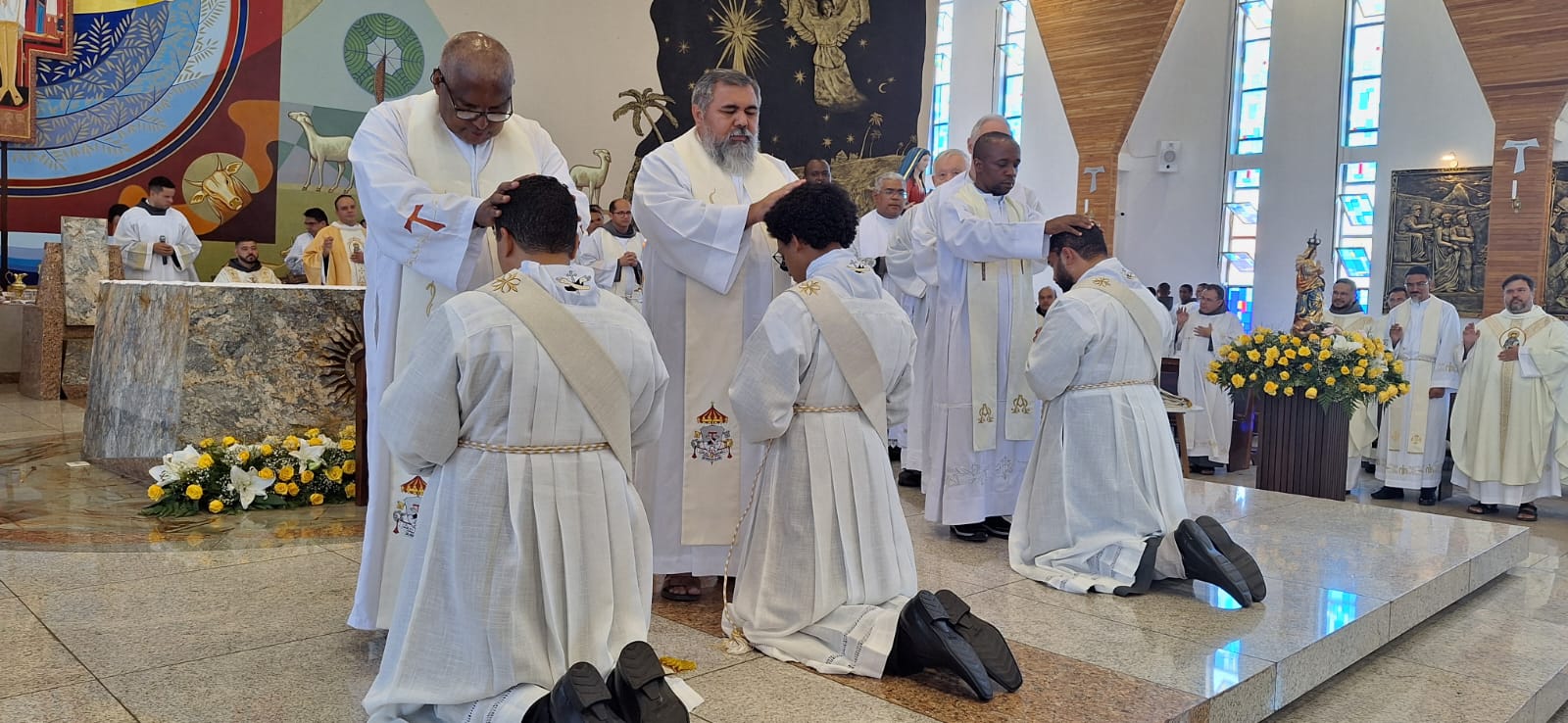 No último dia 7, sábado, aconteceu a ordenação presbiteral dos frades Diogo Kennedy Lima de Araújo (OFMConv.), Frei Carlos Eduardo Gonçalves (OFMConv.) e Frei Gederson Aparecido Marques Nunes (OFMConv.). A ordenação aconteceu na Basílica Menor de São Francisco de Assis, na Asa Norte pela imposição das mãos de Dom João Wilk (OFMConv.), atual bispo da Diocese de Anápolis. A Província teve a alegria de celebrar a ordenação sacerdotal de nossos frades no ano em que completamos 50 anos de presença no Brasil.