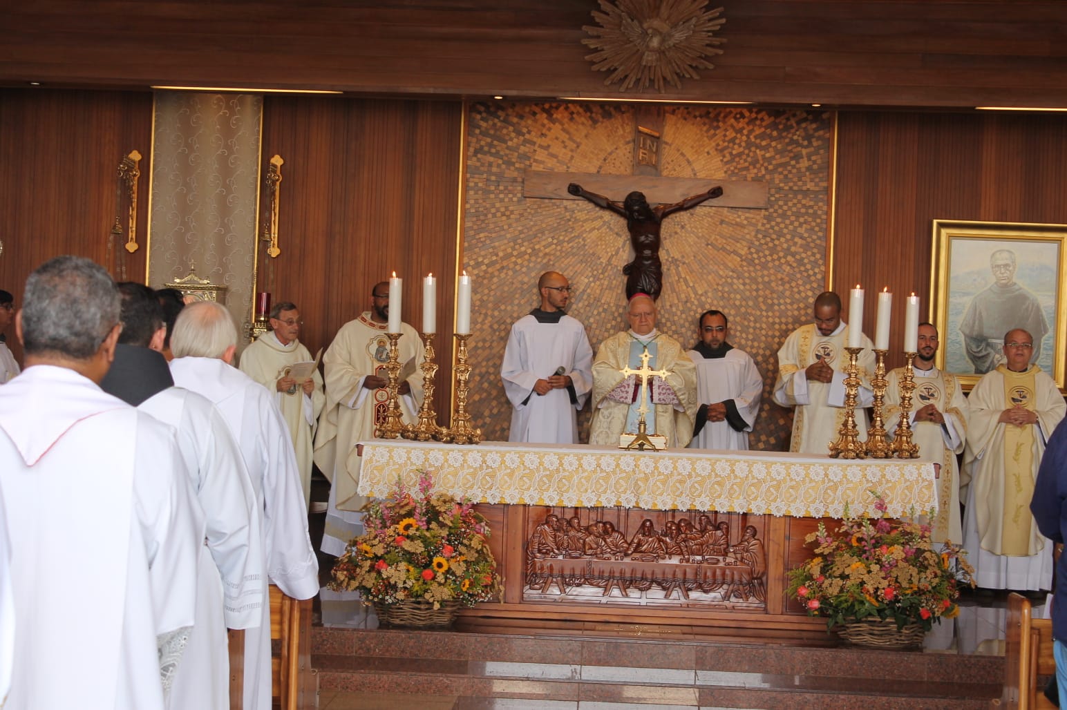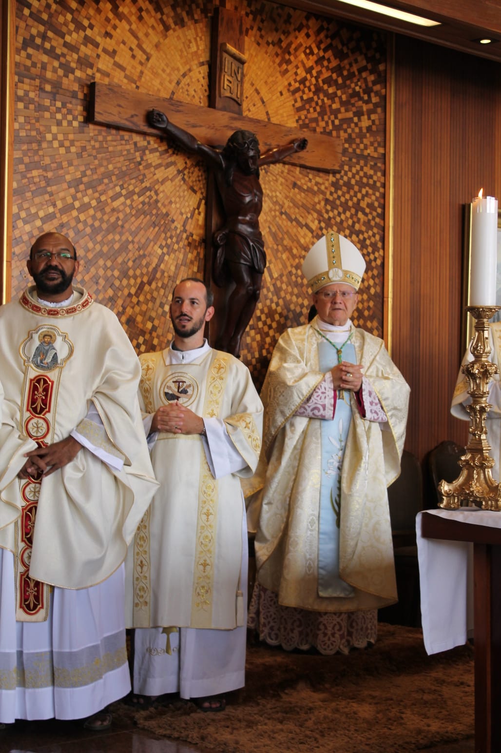 No último sábado, dia 22 de outubro, aconteceu a ordenação presbiteral do Frei Jesus Rodrigues do Amaral pela imposição das mãos de Dom Fernando, bispo emérido do Ordinariado Militar. A celebração aconteceu no Santuário Jardim da imaculada, na Cidade Ocidental (GO) e estiveram presentes o Ministro Provincial, Frei Gilberto de Jesus (OFMConv), representando a Província São Maximiliano Maria Kolbe e o Custódio Provincial, Frei Carlos Charles (OFMConv), representando a Custódia Imaculada Conceição do Rio de Janeiro (RJ). Também estiveram presentes outros frades da jurisdição do Rio de Janeiro e de Brasília, bem como familiares, parentes e amigos. Que Deus abençoe a vida e o sacerdócio do Frei Jesus Rodrigues e que ele possa sempre crescer em conhecimento e graça na vida de consagrado religioso.