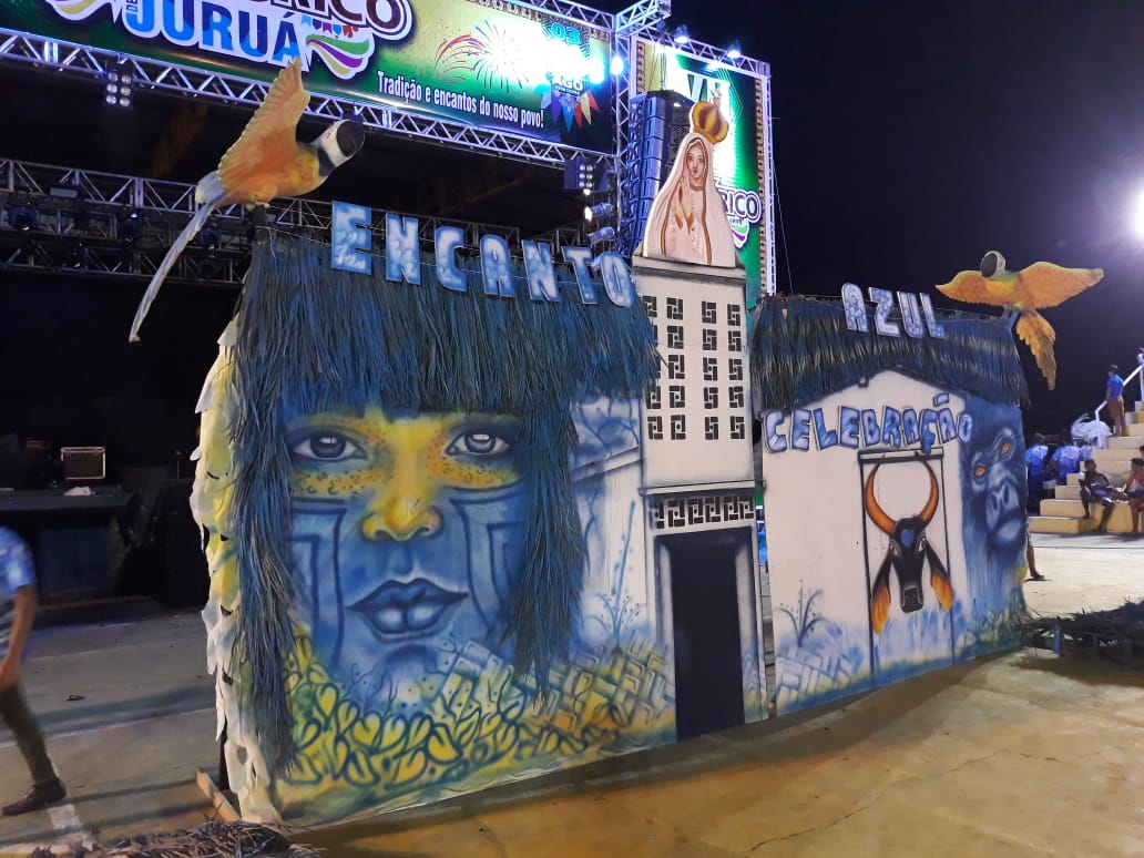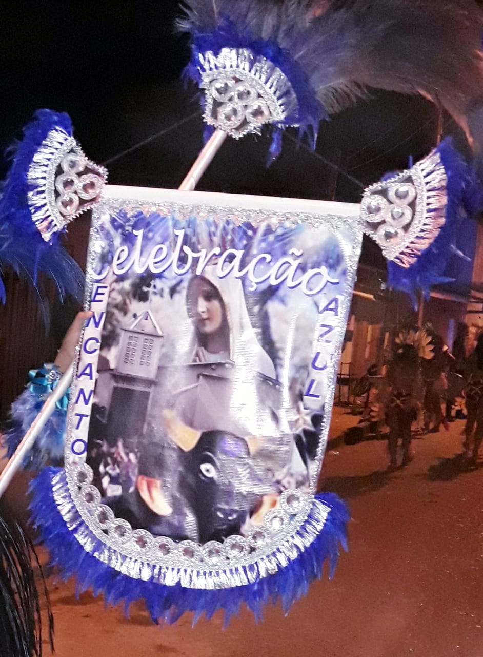 Em um verdadeiro espetáculo, o assunto escolhido pelo grupo Encanto Azul foi “Celebração”, tema esse que foi posto em prática numa grande solenidade que tratou da memória da Paróquia desde a sua fundação, ainda em 1971. Iniciando a sua apresentação com uma pequena procissão guiada pela imagem de Nossa Senhora de Fátima e ao som do brado “Viva Nossa Senhora de Fátima”, eles ainda fizeram uma demonstração da luta por território entre os macacos Guariba e Prego, finalizando com o Ritual Indígena.