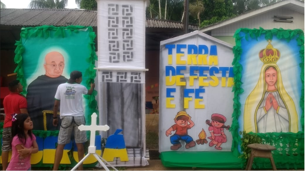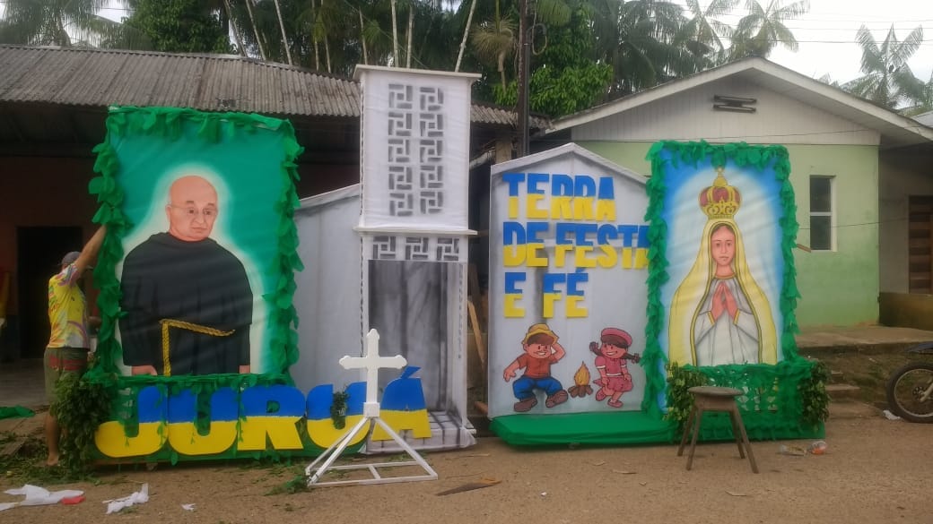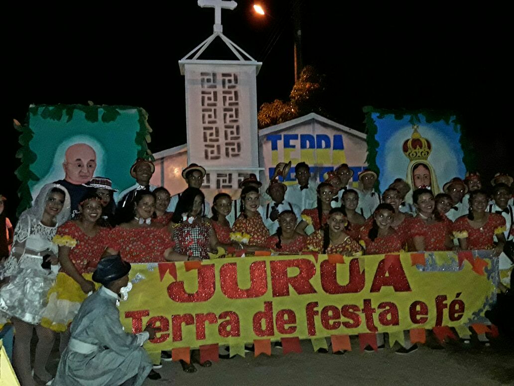 Em sua apresentação, a quadrilha da PJ fez a trouxa a montagem “Juruá: terra de festa e fé”, em que fez uma abordagem sobre a história da Paróquia com enfoque à chegada do missionário da amazônia. Para compor esta narrativa, assim como o grupo anterior, os jovens e as jovens utilizaram como cenário a quadros do frade de Nossa Senhora de Fátima, tendo ao fundo a própria igreja. O pessoal da pastoral preparou também poema sobre a temática, que segue: