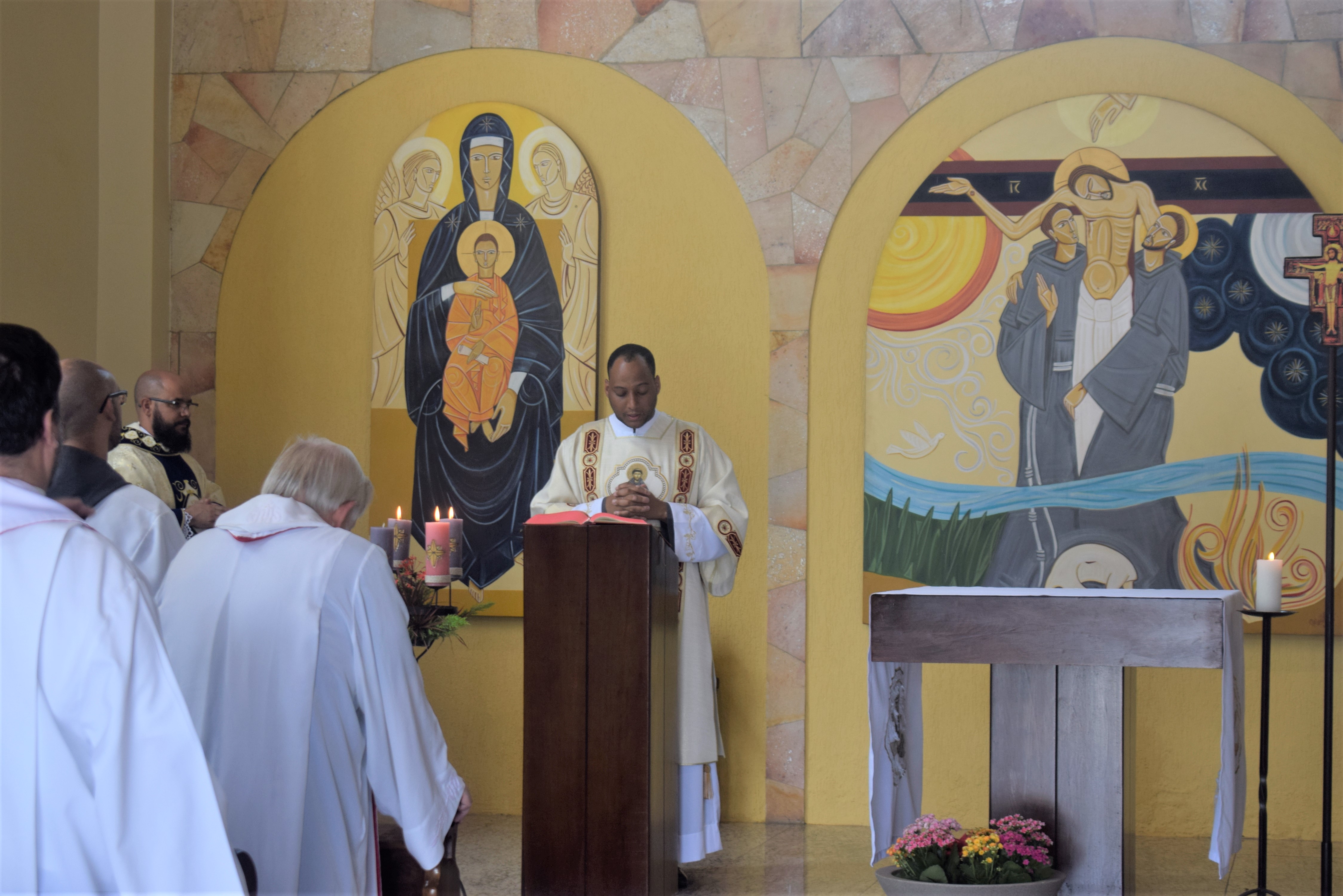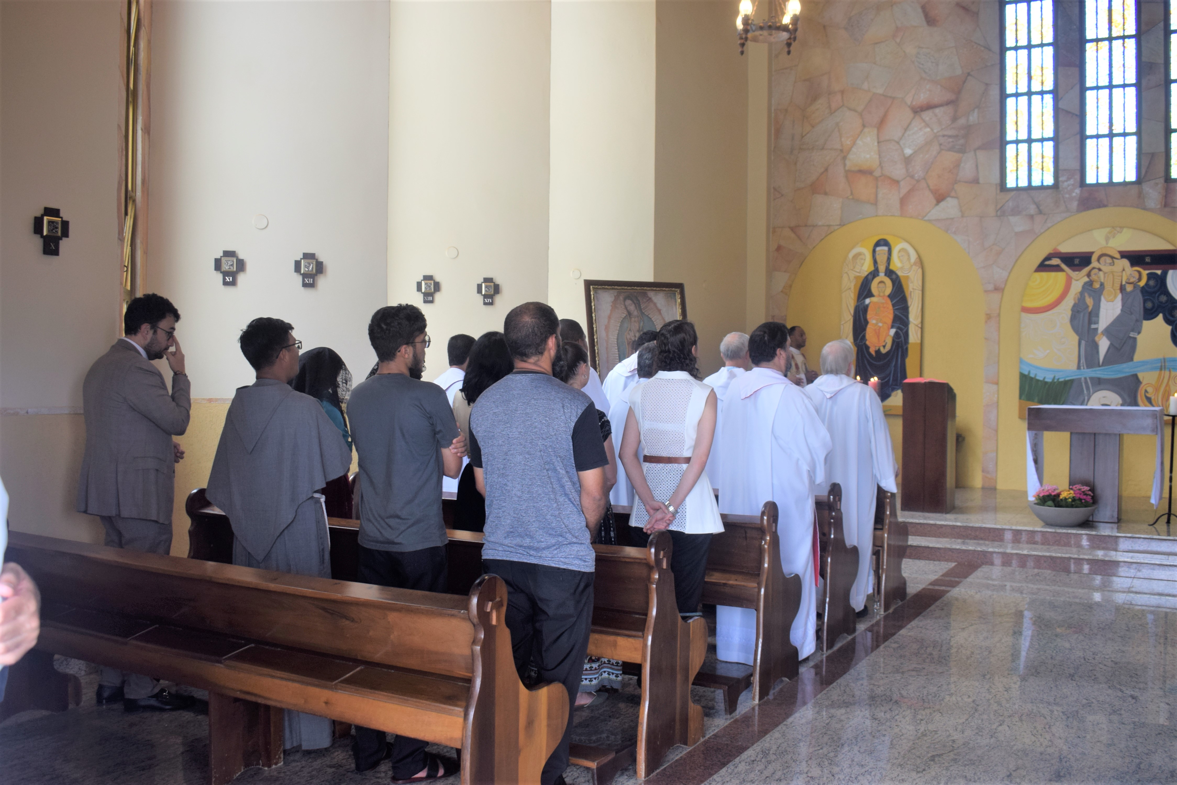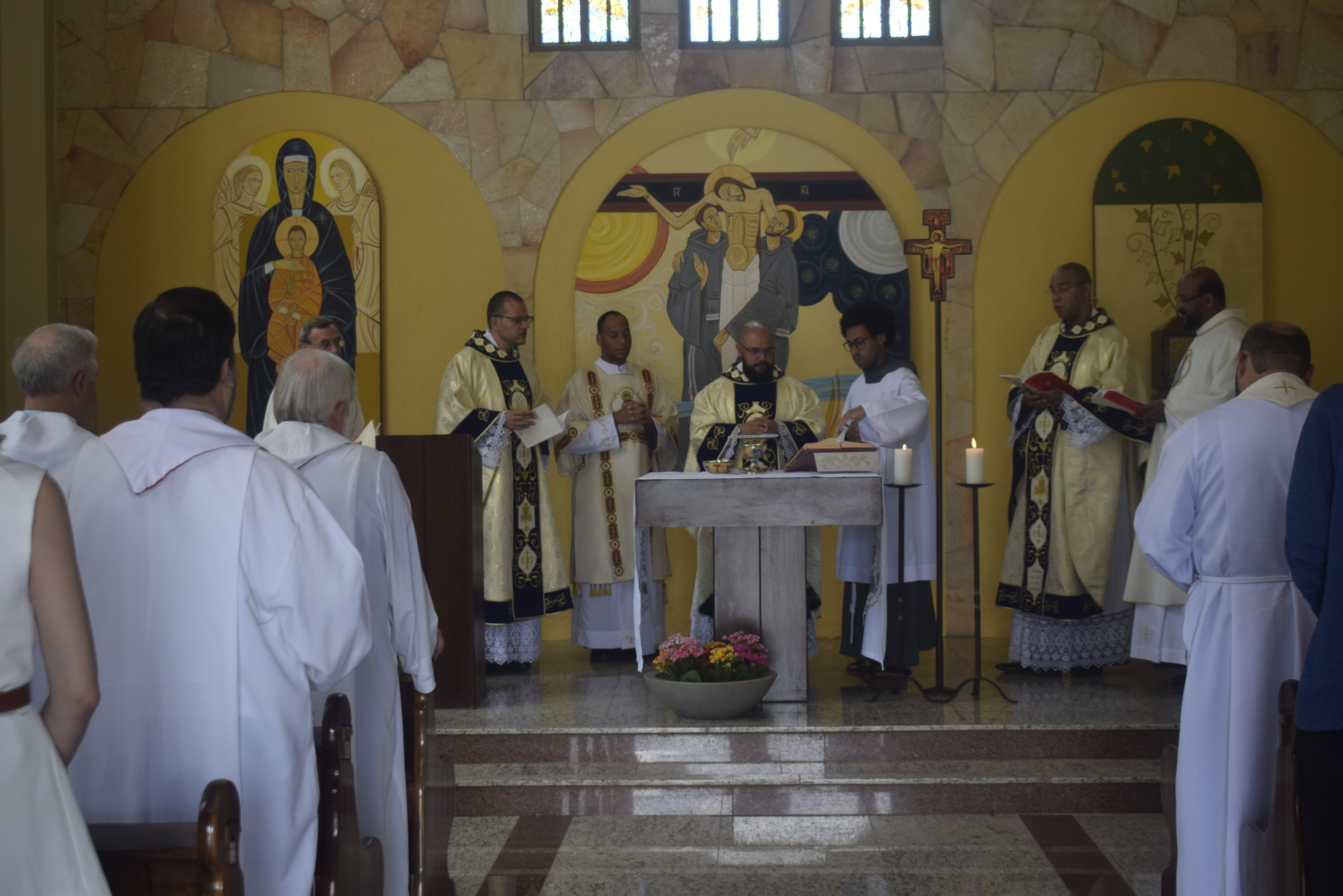 Aconteceu hoje, 12 de dezembro, na Capela da Casa de Formação São Francisco de Assis, na Asa Norte (DF) a primeira missa conjunta dos nossos três neo-sacertotes. A Santa Missa foi celebrada pelo neo-presbítero, Frei Alex Maria Rosa Rios (OFMConv), concelebrada pelos outros dois neo-presbíteros: Frei Rafael Maria Dias Lima (OFMConv) e Frei Altair Santos de Jesus Gomes (OFMConv), bem como pelos demais frades que estiveram presentes. Também participaram da Santa Celebração as irmãs da Sagrada Família do Menino Deus, os estudantes de Teologia e Filosofia das Casas de Formação da Província São Maximiliano Maria Kolbe e o povo de Deus.