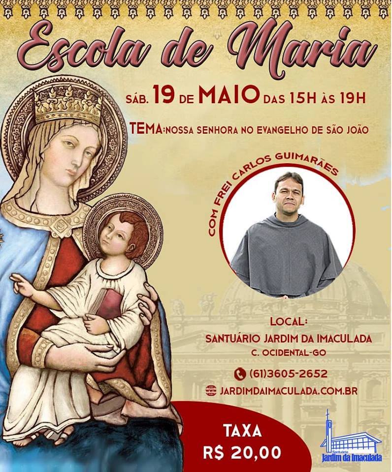 No sábado, 19, será realizado no Convento-Santuário "Jardim da Imaculada", na Cidade Ocidental (GO), a 1º Escola de Maria do ano de 2018. O evento tem como objetivo fornecer reflexões acerca da Formação Mariológica e todos os mistérios e saberes que podem ser compreendidos ao observarmos o exemplo de Maria.