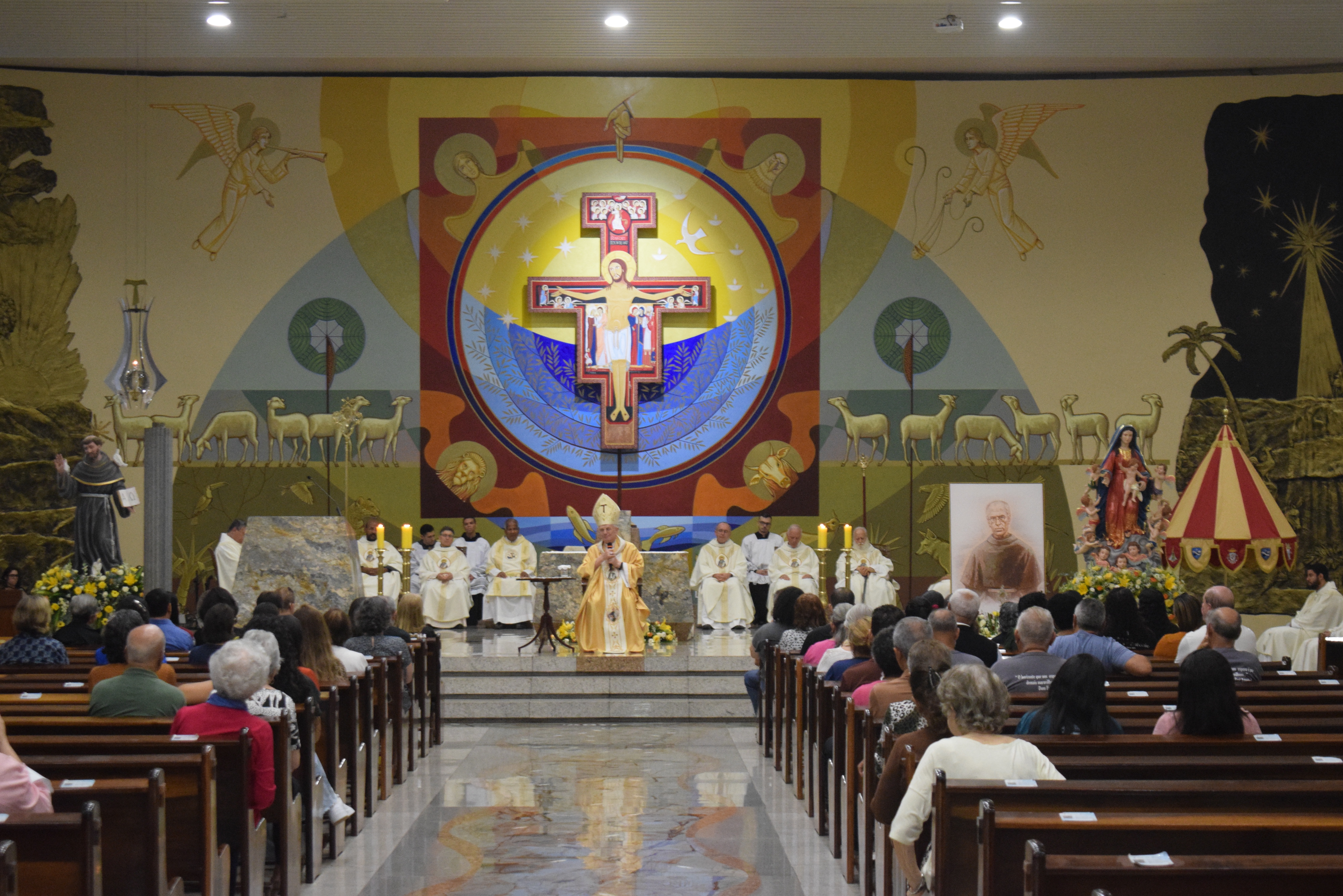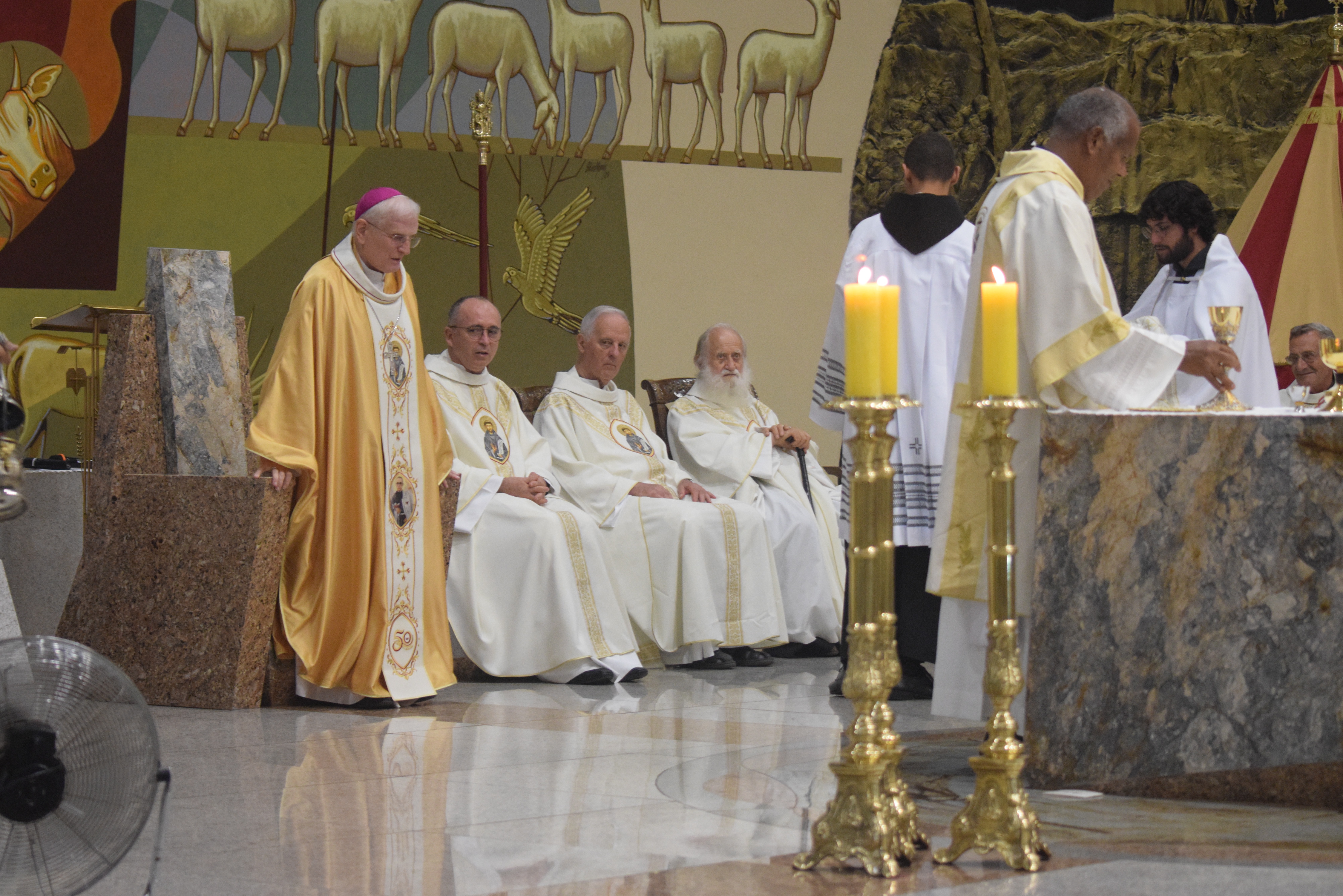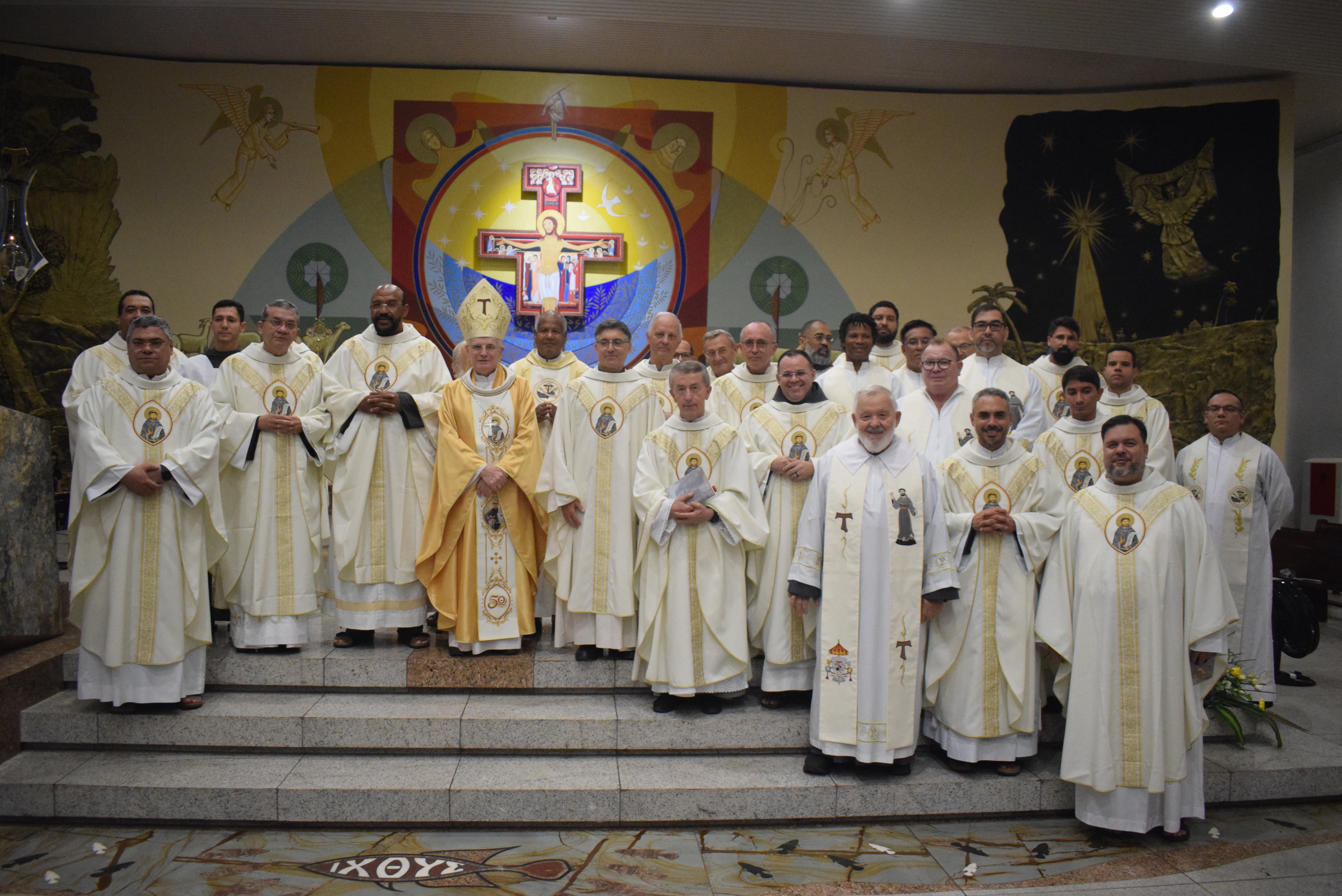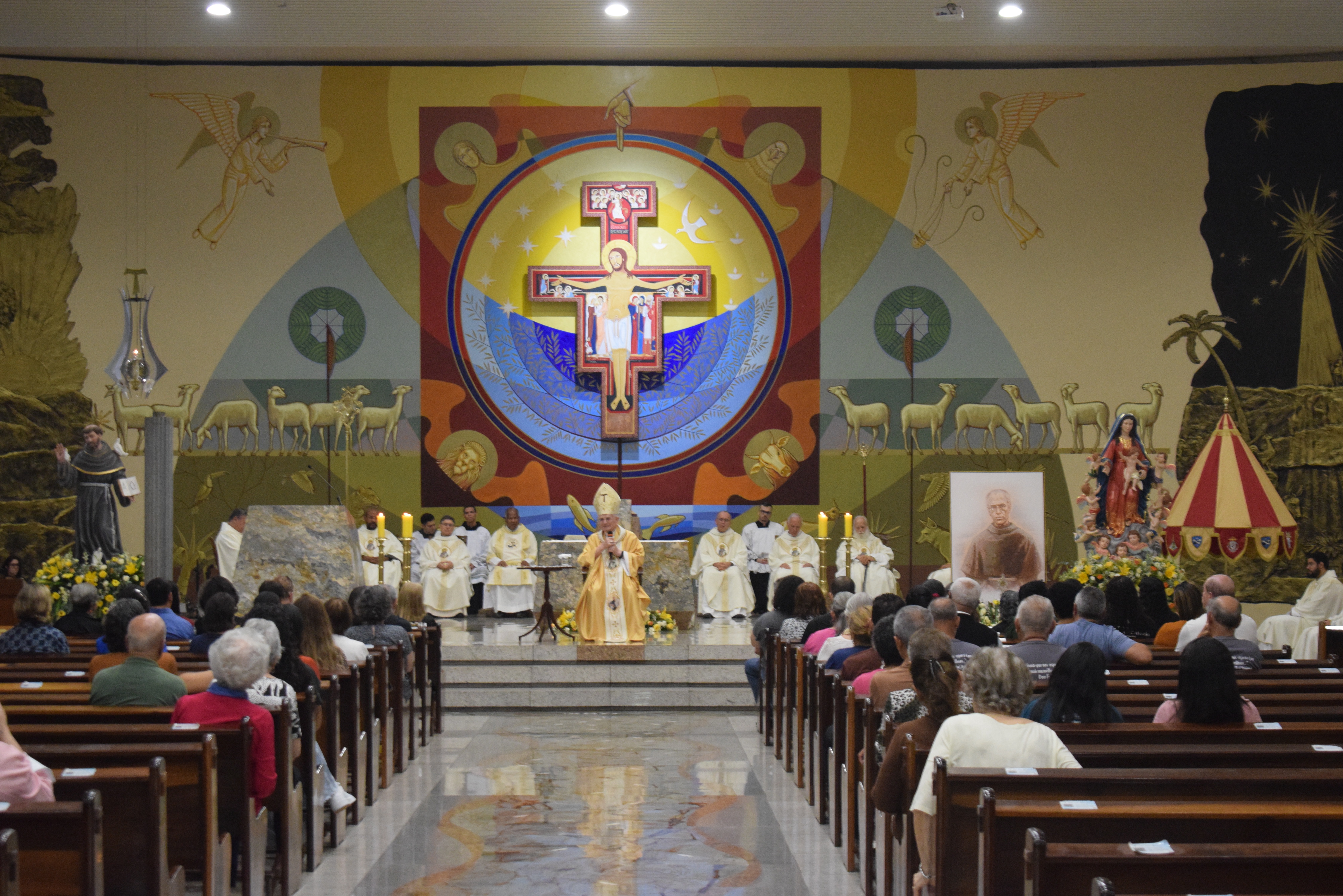 A Santa Missa foi celebrada por Dom João Wilk, que, em sua homilia, relembrou a contribuição dos frades no trabalho paroquial em diversas comunidades, como a Paróquia Santo Antônio, na Cidade Ocidental, a Paróquia São Pedro Apóstolo, no Pedregal, e a Paróquia São Marcos e São Lucas, em Ceilândia. Dom João também destacou a atuação do custódio provincial, eleito pelo Capítulo Provincial na Polônia, cuja liderança tem sido essencial em iniciativas como a redação da revista *Cavaleiro da Imaculada*, a direção do Seminário São Francisco e a coordenação das Edições Kolbe e da Milícia da Imaculada.