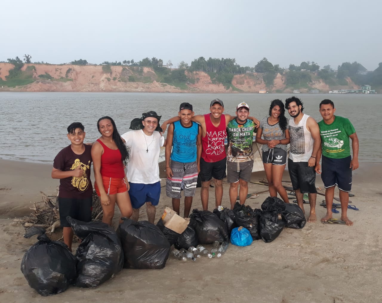 No sexto dia da novena (10), os jovens e as jovens milicianas fizeram um mutirão de limpeza na praia da cidade com o intuito de conscientizar a população sobre a nossa responsabilidade para com a criação.
