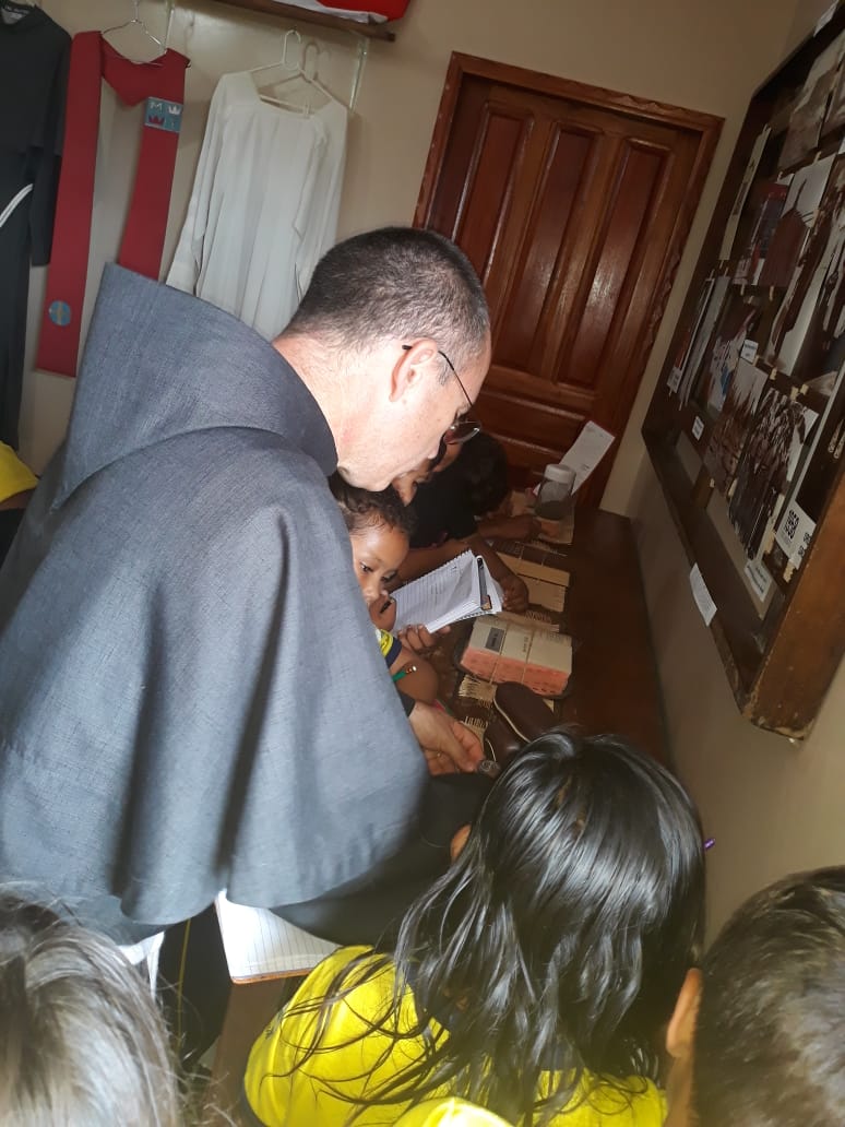 Hoje, 15, os alunos e as alunas da Escola Municipal Dalila Litaiff conheceram o Museu Dom Frei Agostinho e visitaram o seu túmulo. O passeio faz parte de uma programação direcionada às escolas para que seus estudantes possam aprender sobre a vida e obra desse cidadão que escolheu Juruá por amor, um apóstolo incansável da Imaculada. O Frei Flávio acompanhou a visita e relatou a ocasião, “foi um momento de muita emoção. As crianças fizeram diversas perguntas e ficaram encantadas com a missão de Dom Frei Agostinho e o seu desejo em permanecer na cidade”, disse ele.