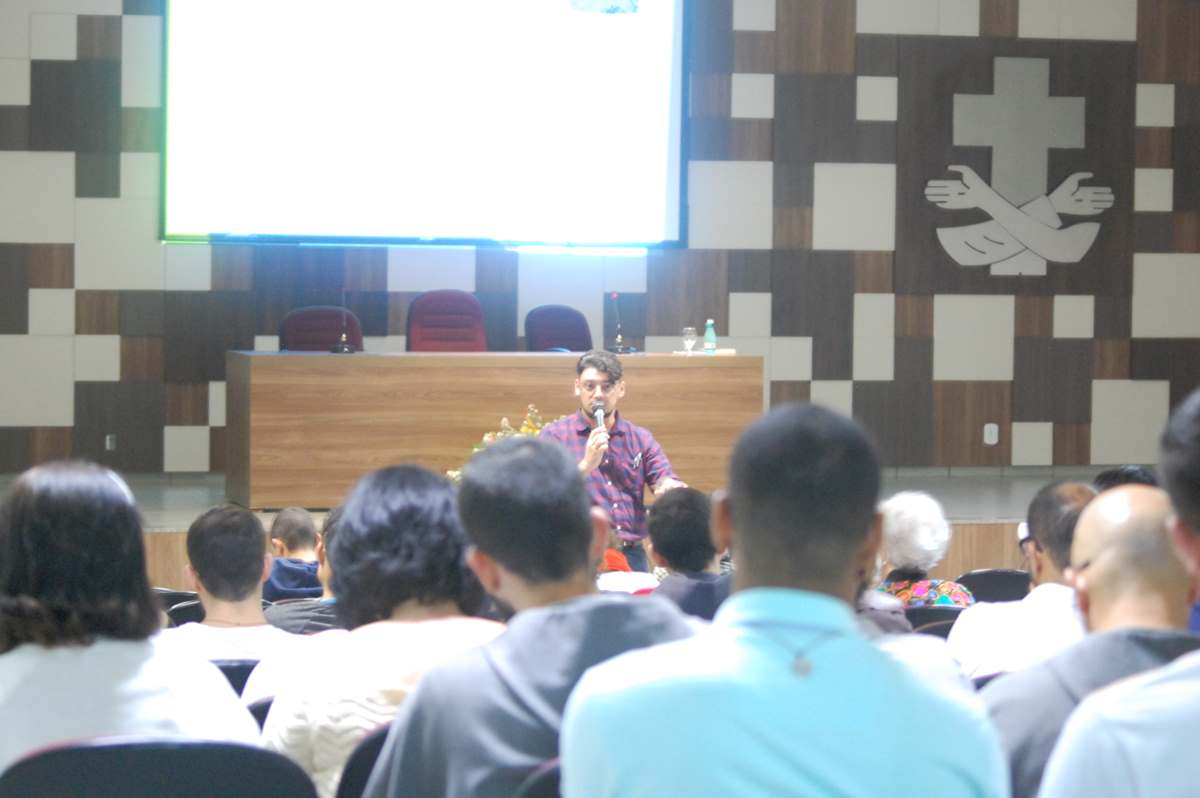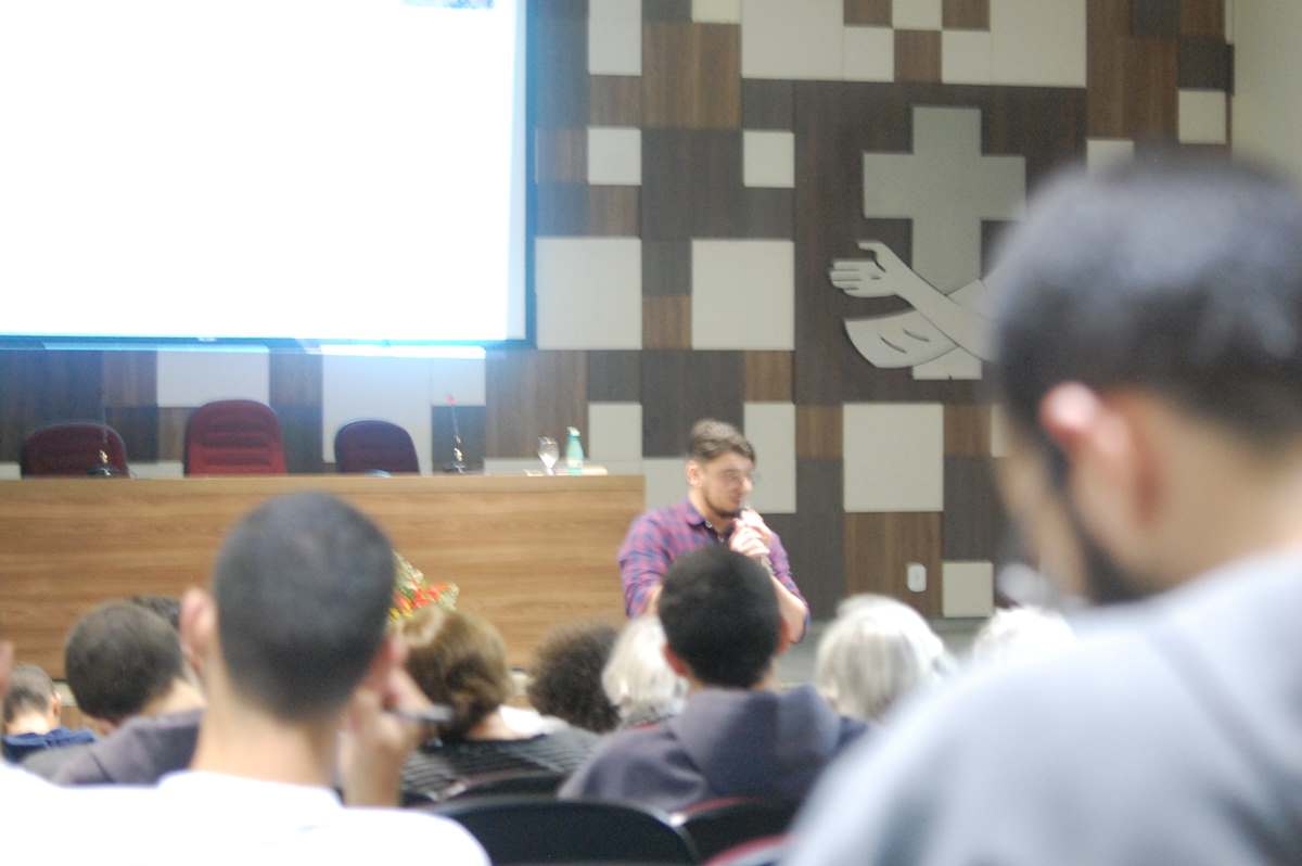 Foi realizado ontem, 22 de maio, no auditório do Instituto São Boaventura (ISB), o segundo dia da Semana Teológica e Filosófica. O Padre Alex Pin (SJ), doutorando em Bioética e Mestre em Metafísica pela Universidade de Brasília, apresentou uma palestra sobre o tema "Da Eudaimonia Grega à Gaudium Cristã". Durante sua exposição, falou muito do amor para falar do elementos temáticos. Para isso, relembrou a passagem do Filho Pródigo, em que comentou que o Amor do pai pelo filho é o mesmo que Deus tem por nós, "o pai superabundou o seu amor que é muito maior. A gente sabe que pode voltar", explicou ele.
