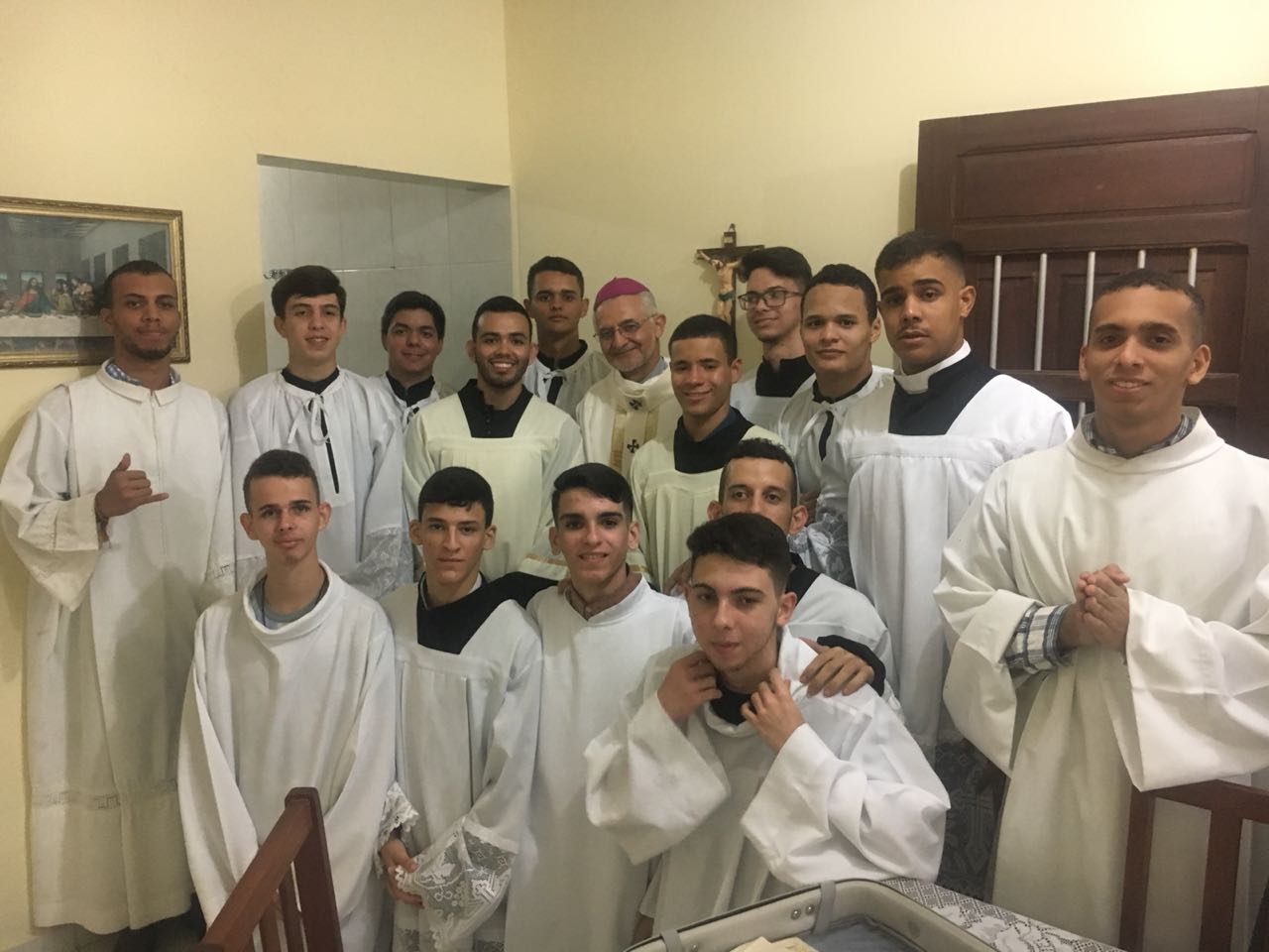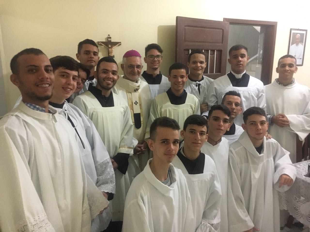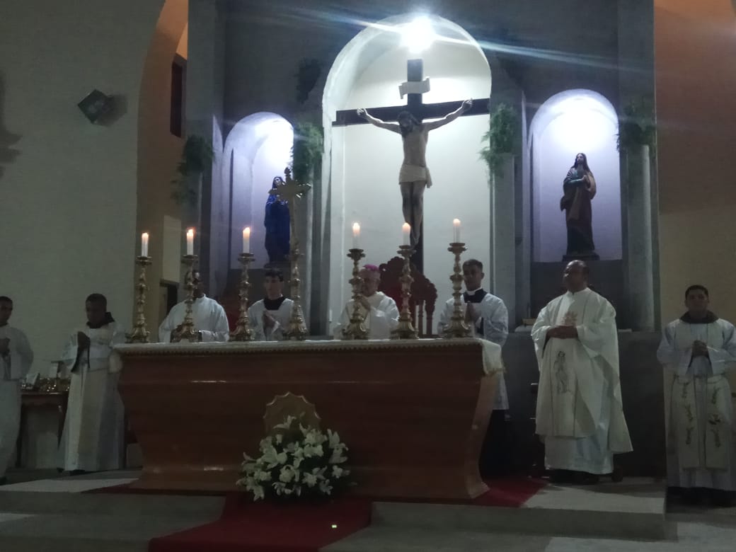 Dom Frei da Cruz (OFMCap), ao centro, acompanhado do Pároco Frei Givaldo Batista e os Vigários Paroquiais Freis Evilásio Andrade e José de Arimatéia e o Frei Thiago Noronha.
